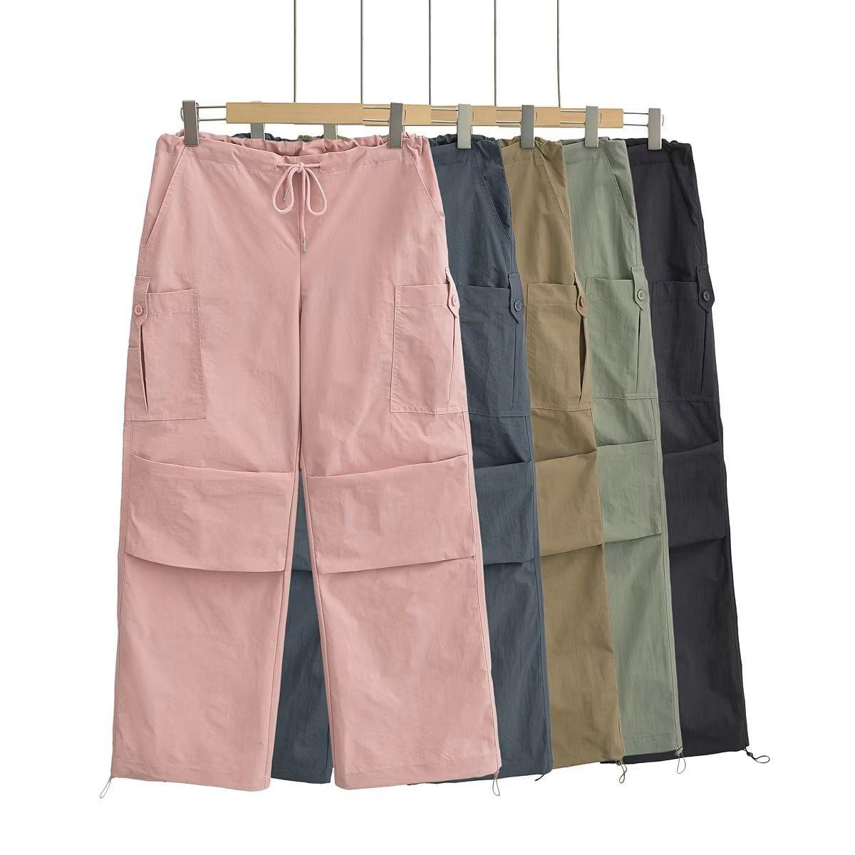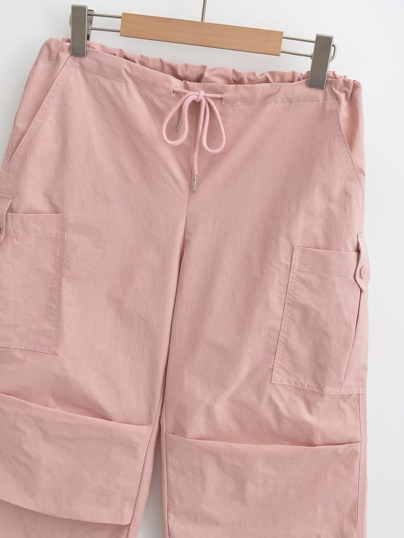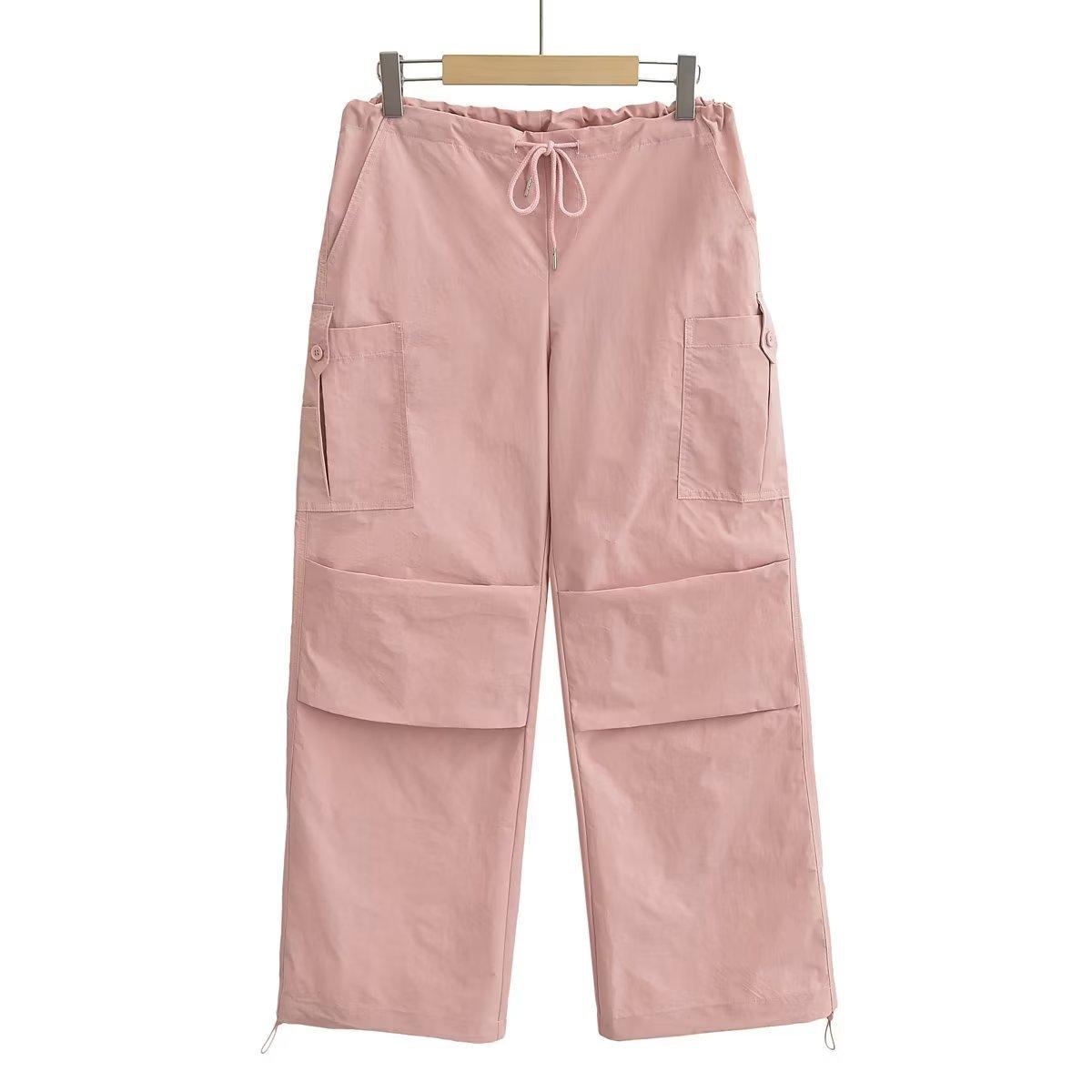 Pantalones casuales finos de verano con cordón, estilo europeo y americano, holgados, adelgazantes, de pierna recta y pierna ancha.
