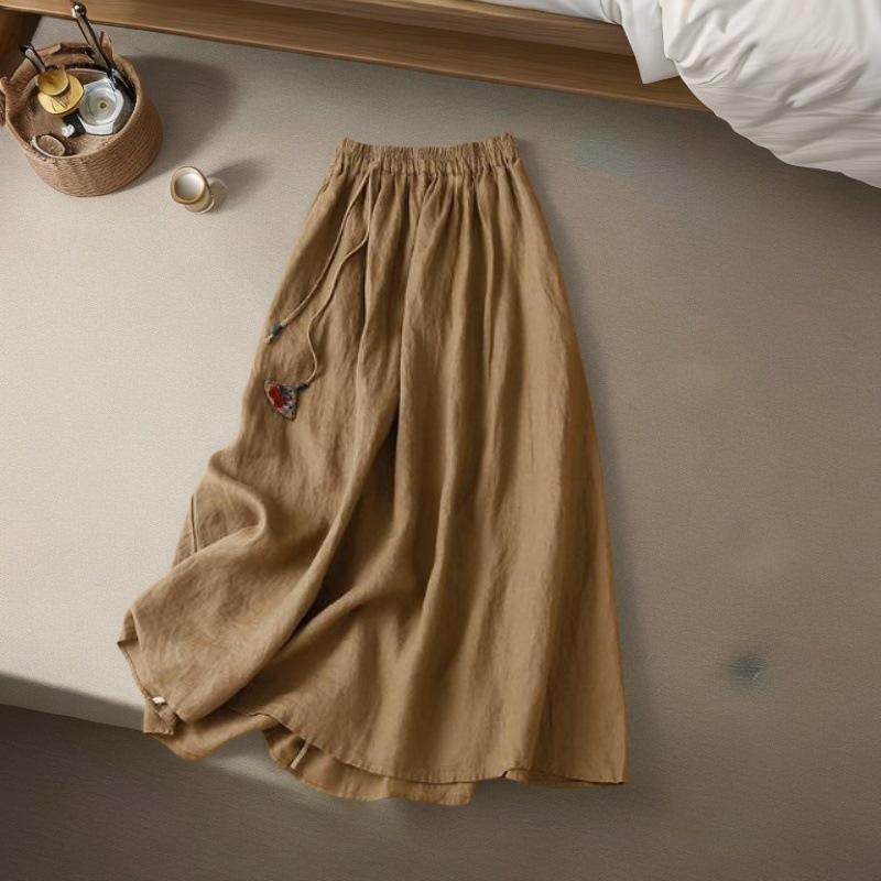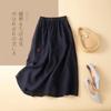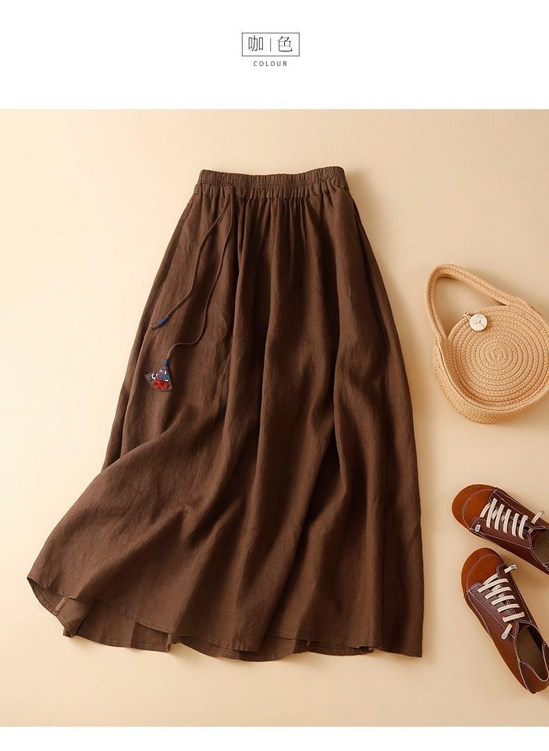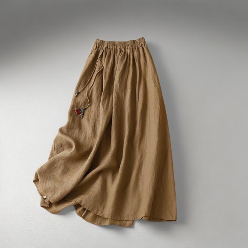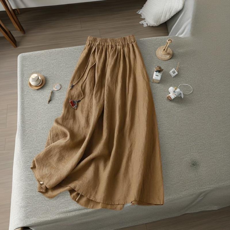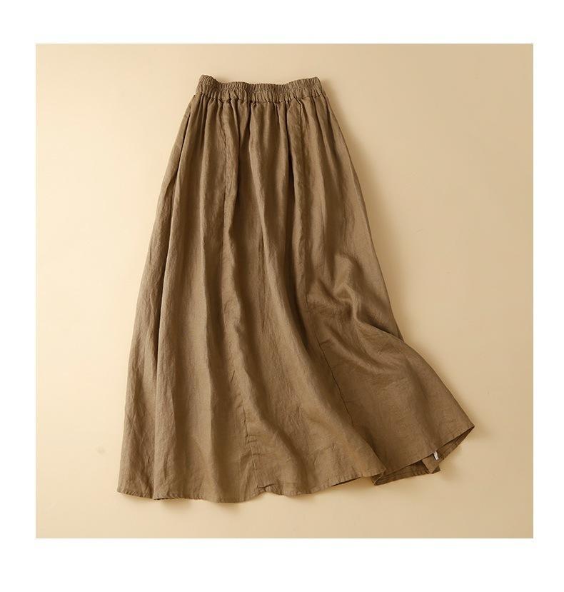 Falda de algodón y lino con diseño literario y relajado, falda acampanada, falda de longitud media, falda larga de lino, falda media para mujer