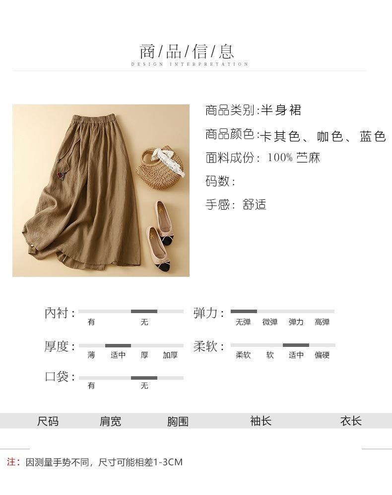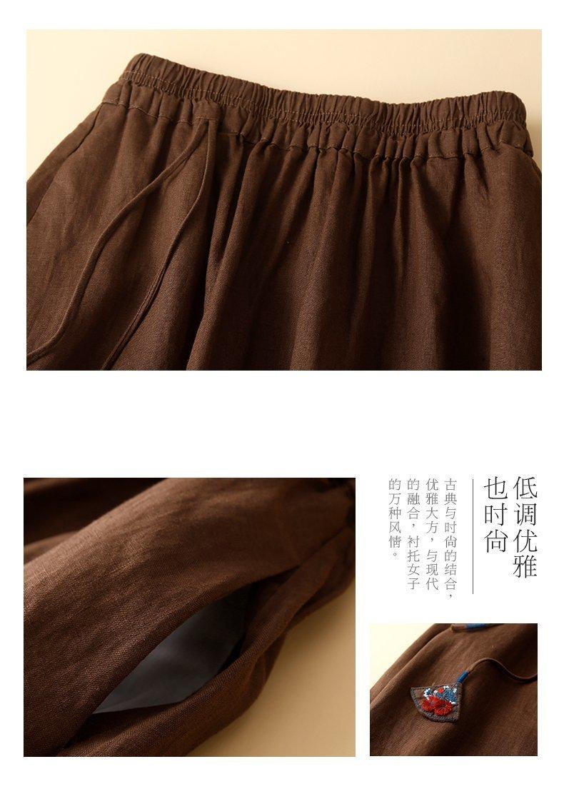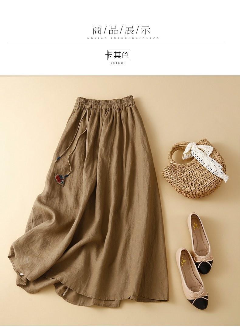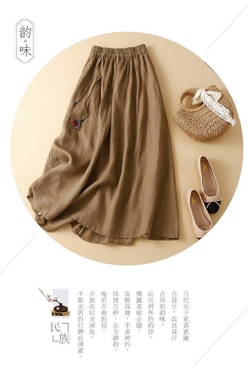 Falda de algodón y lino con diseño literario y relajado, falda acampanada, falda de longitud media, falda larga de lino, falda media para mujer