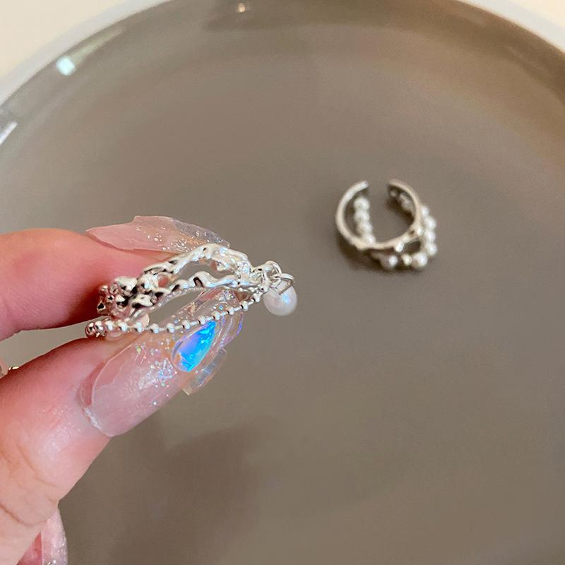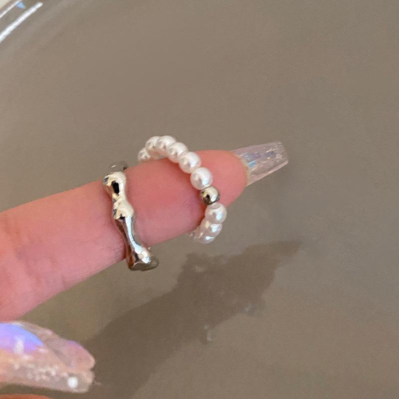 Anillo Irregular de Perlas de Doble Capa para Mujer Diseño de Moda Nicho de Alta Gama Anillo para Articulación Anillo de Dedo Distintivo y a la Moda