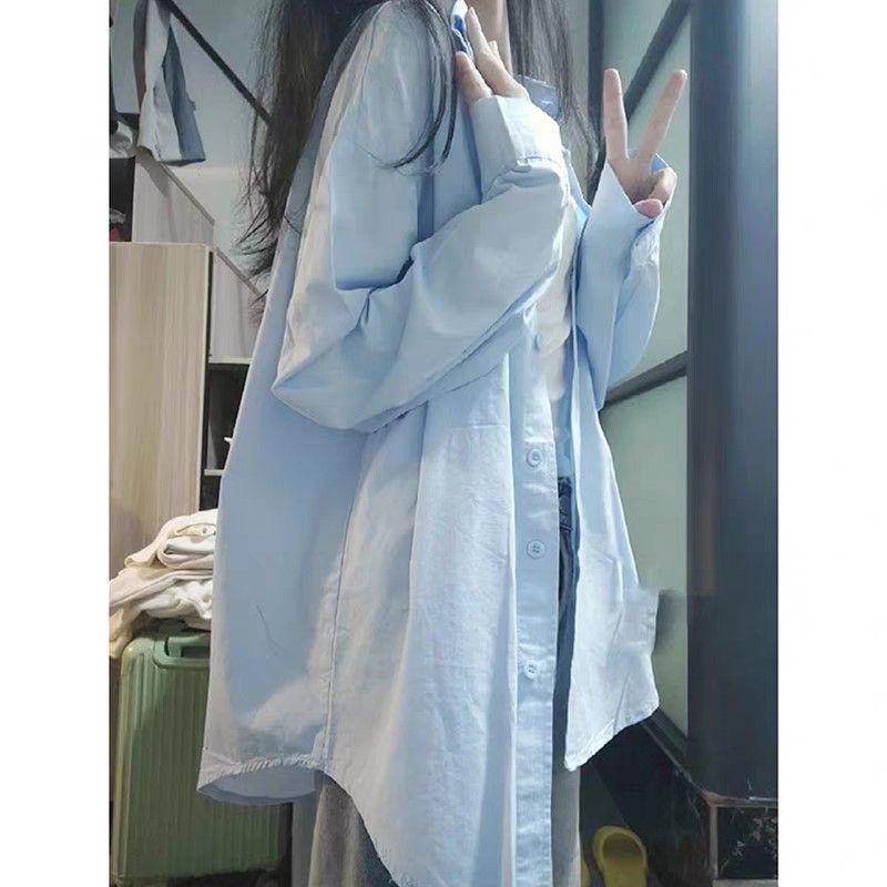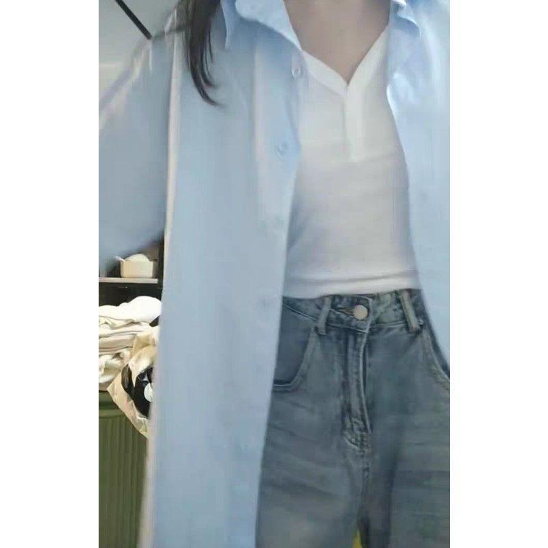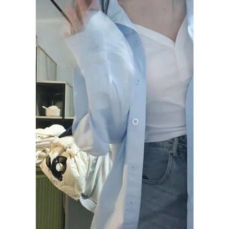 Diseño Francés Sentido Nicho Camisa Delgada con Protección Solar Camisa Apilada Verano Largo Medio Suelto Ropa Exterior Top Chaqueta