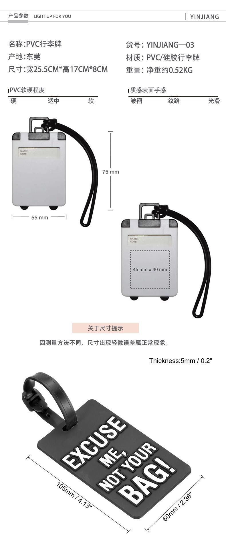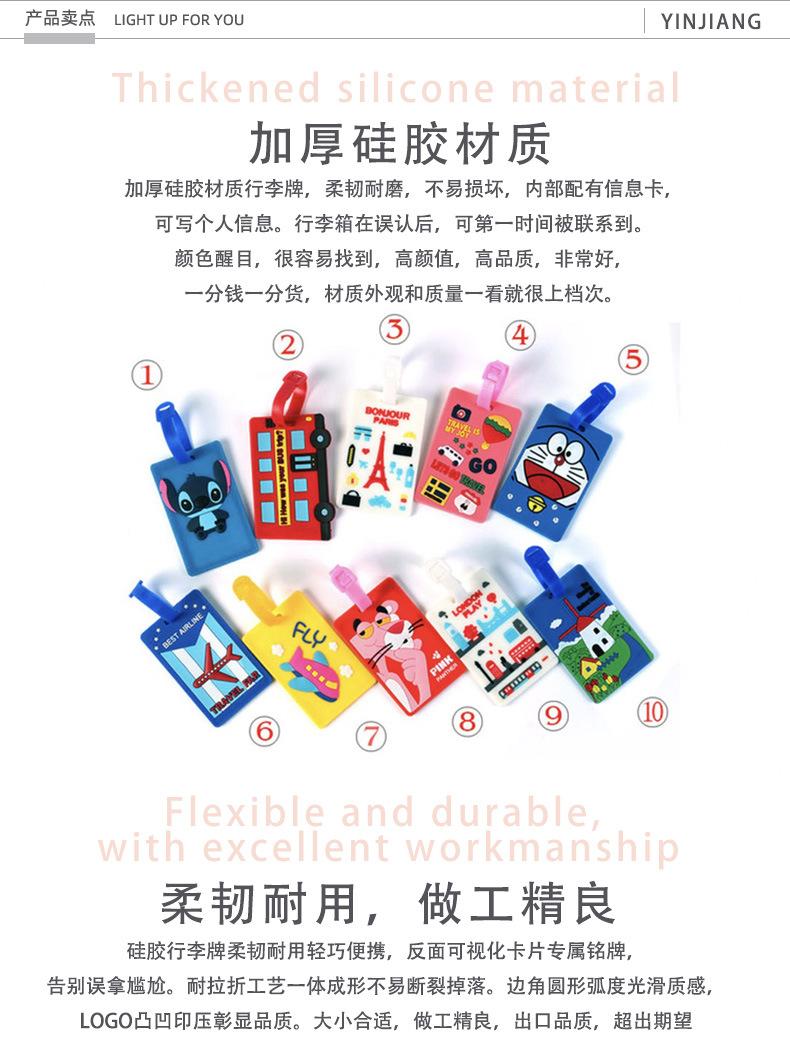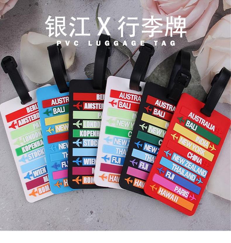 Etiqueta de equipaje de viaje de PVC, etiqueta de equipaje de silicona con dibujos animados, etiqueta con nombre, tarjeta de embarque de equipaje