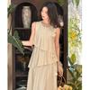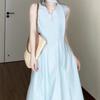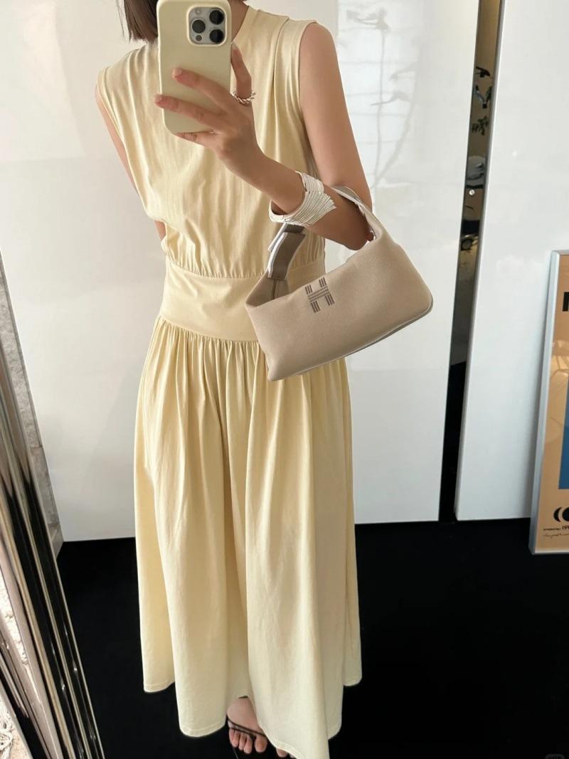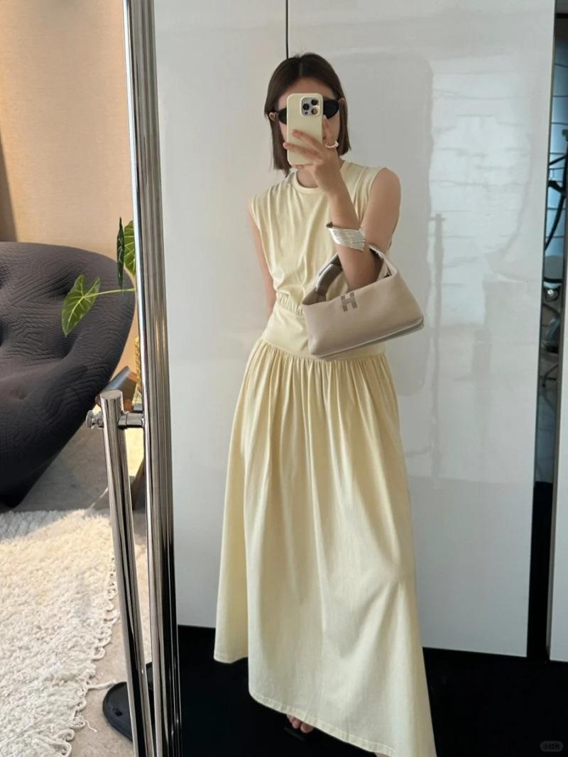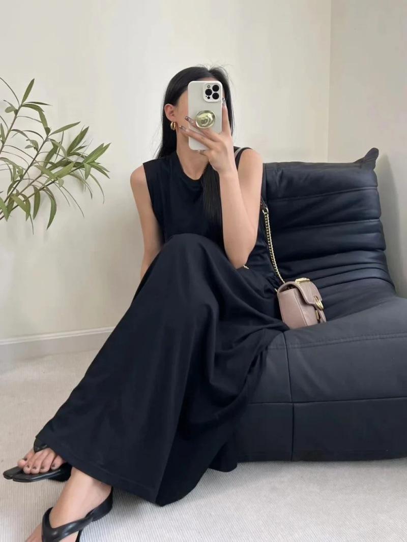 Vestido Chaleco de Algodón Puro Longmei 2025 Principios de Otoño Nuevo Escandinavo Tot Simple Largo Cintura Sin Mangas