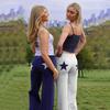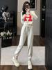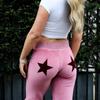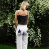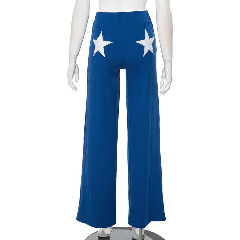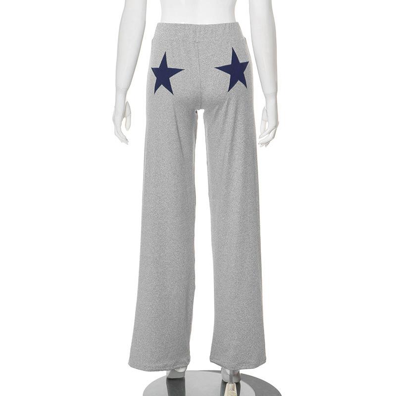 Pantalones casuales rectos con estampado de estrellas y bordado deportivo de alta elasticidad con contraste de color para mujer, estilo transfronterizo europeo y americano, verano 2025