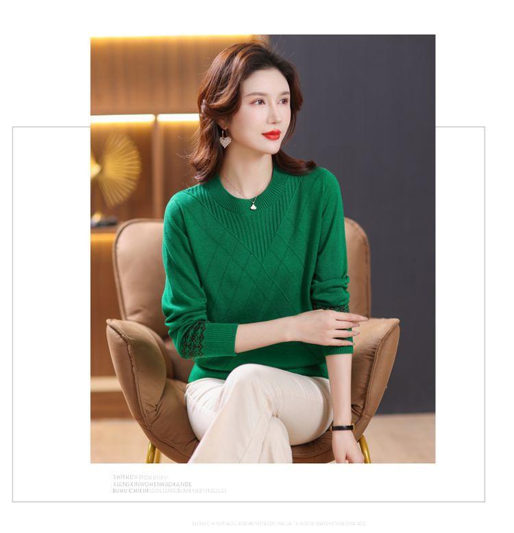 Camisa de punto para mujer, primavera y otoño 2023, nuevo suéter holgado de cuello redondo bajo y calado, de moda, combinable con todo para mujer