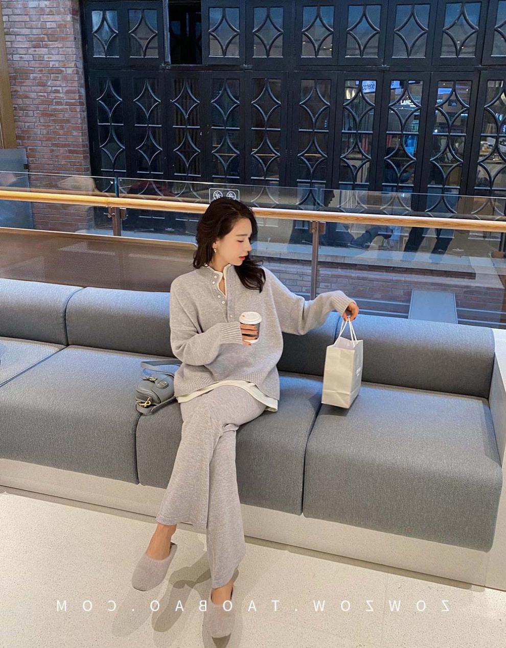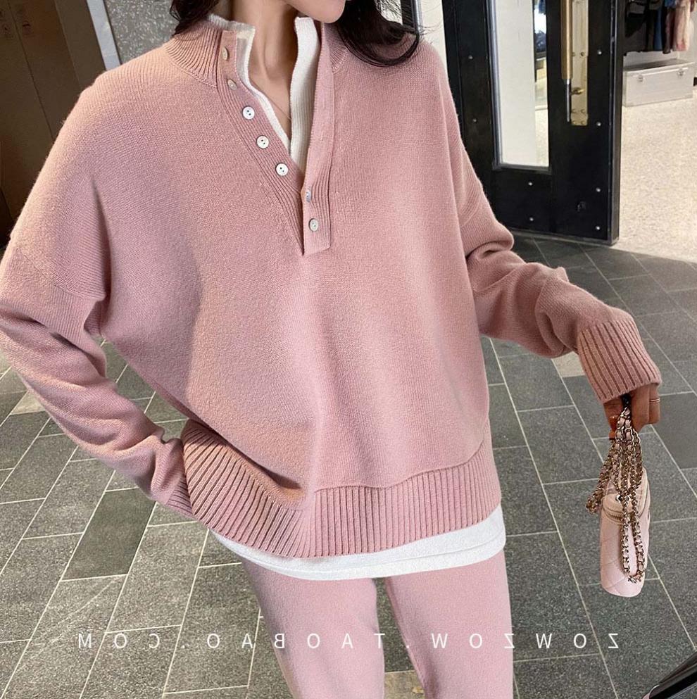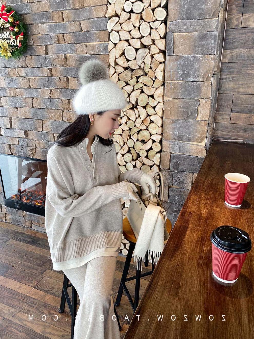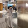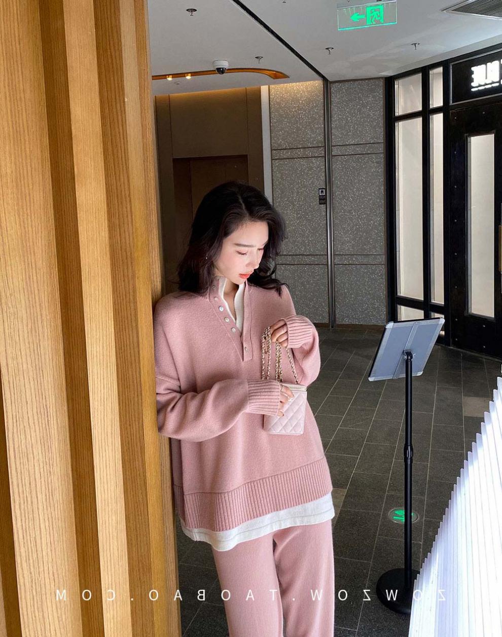 Traje deportivo antiedad de estilo occidental, primavera y otoño 2023, ropa de mujer, suéter de punto de dos piezas falso, pantalones de pierna ancha, traje casual de dos piezas