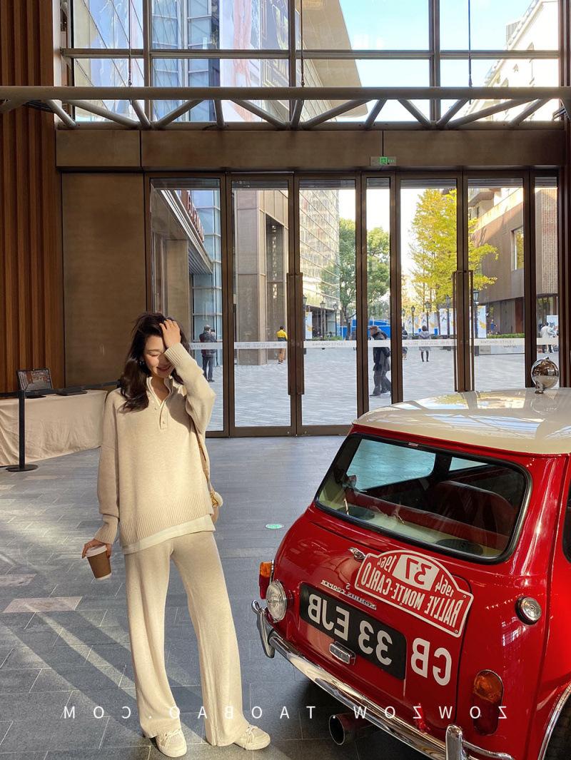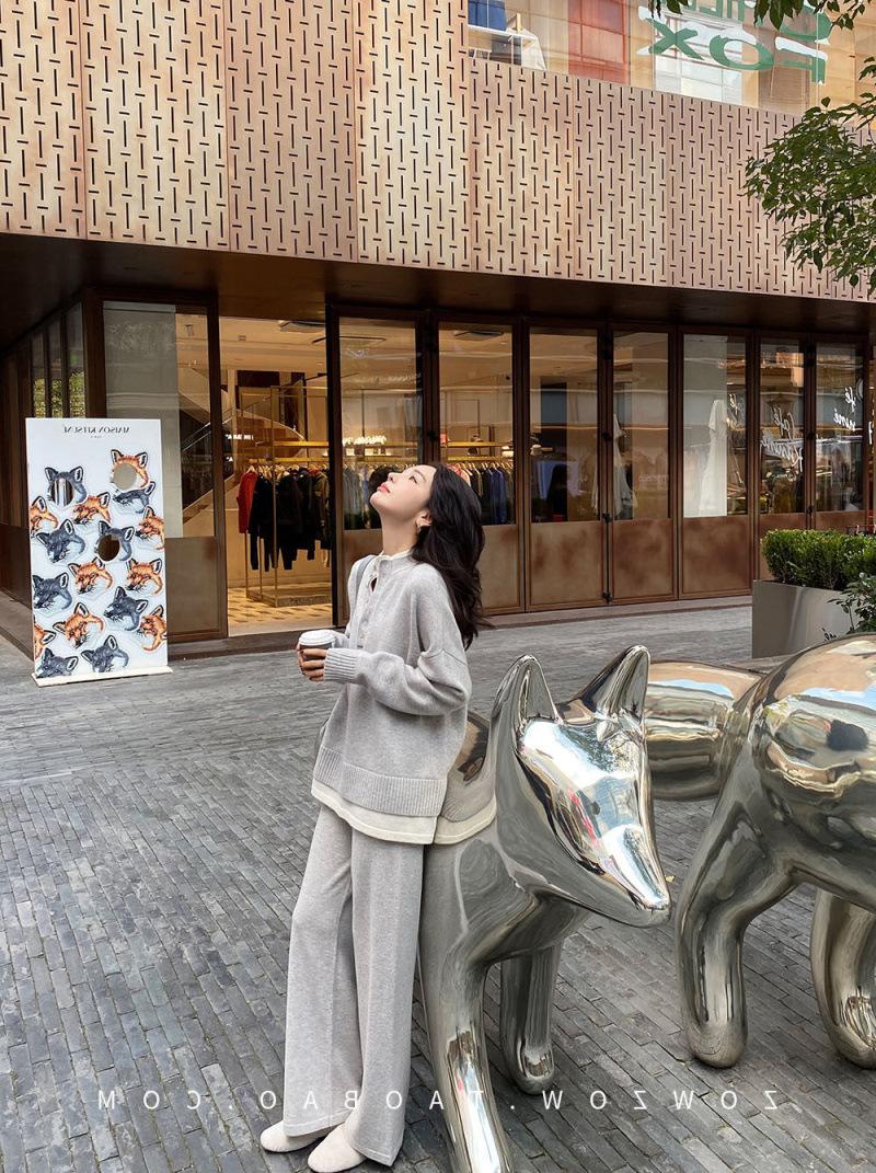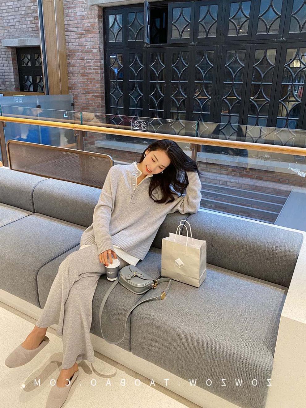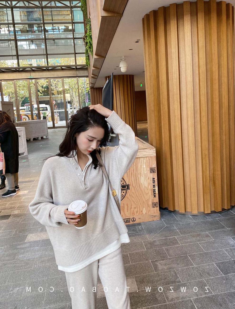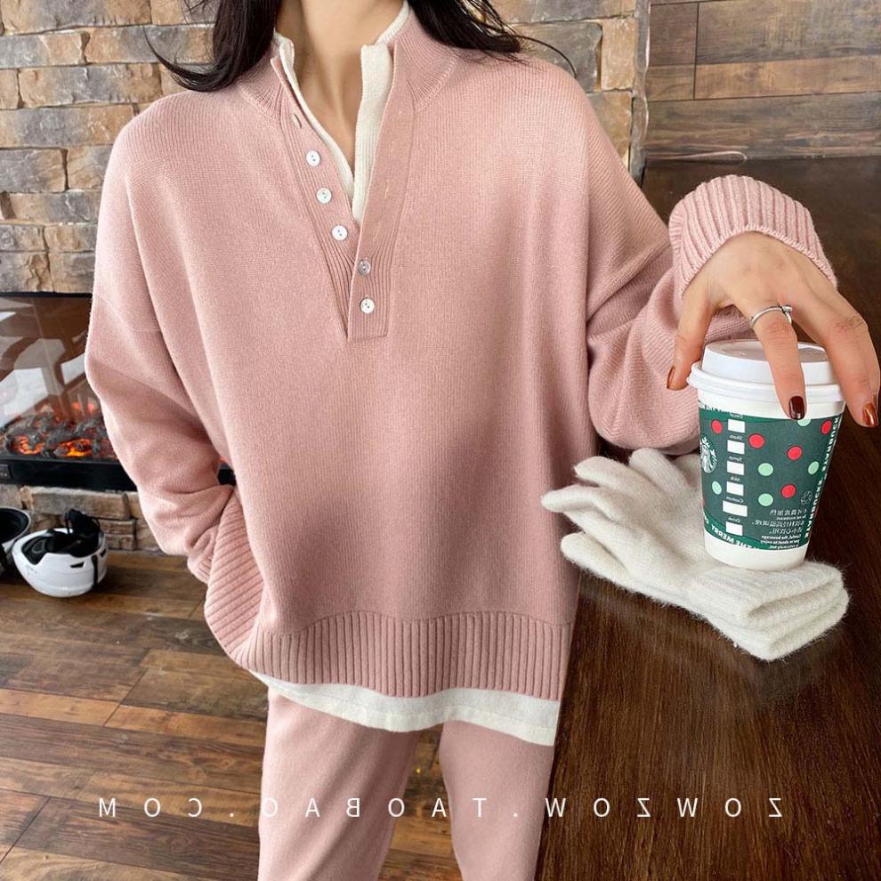 Traje deportivo antiedad de estilo occidental, primavera y otoño 2023, ropa de mujer, suéter de punto de dos piezas falso, pantalones de pierna ancha, traje casual de dos piezas