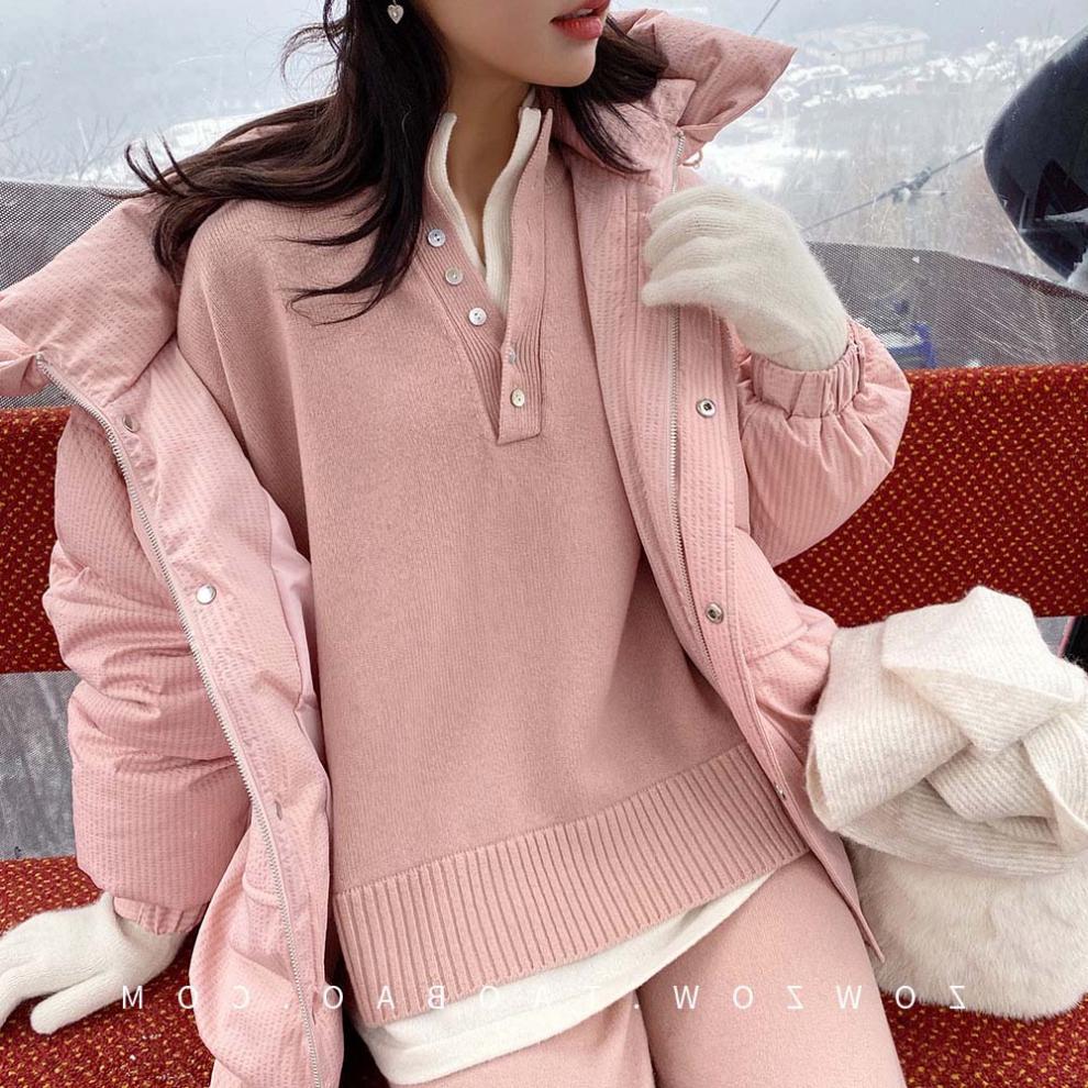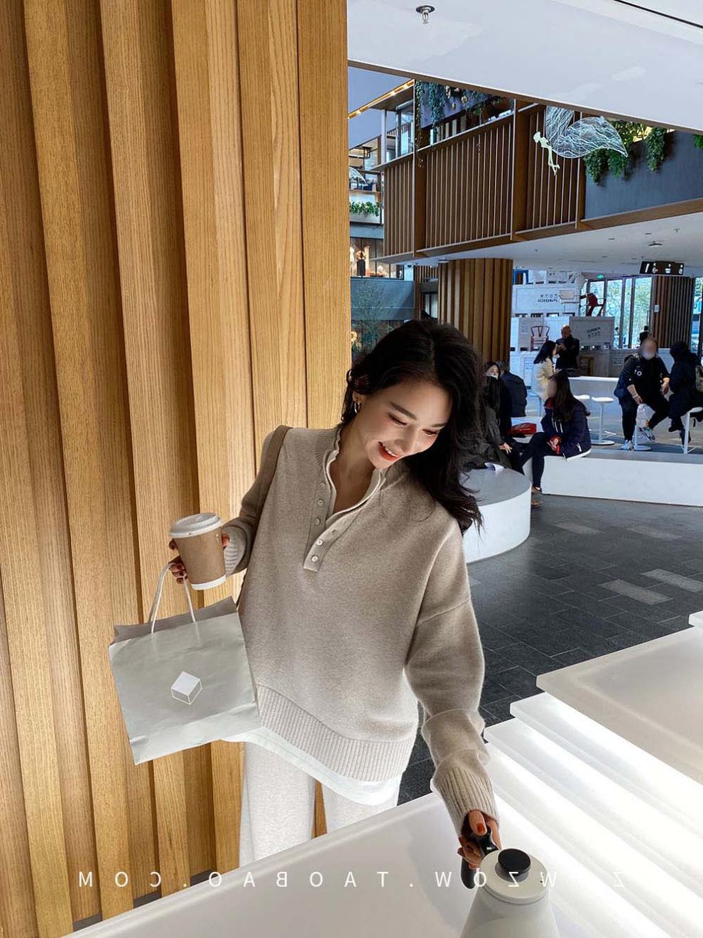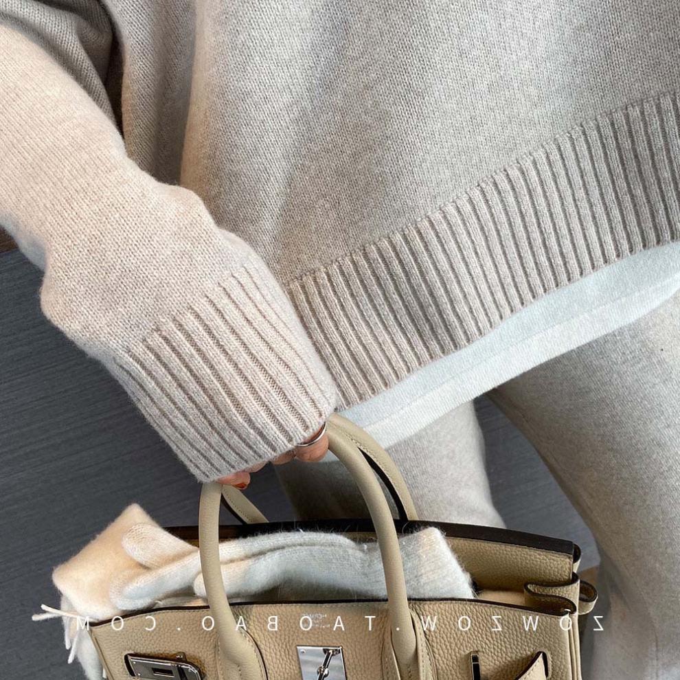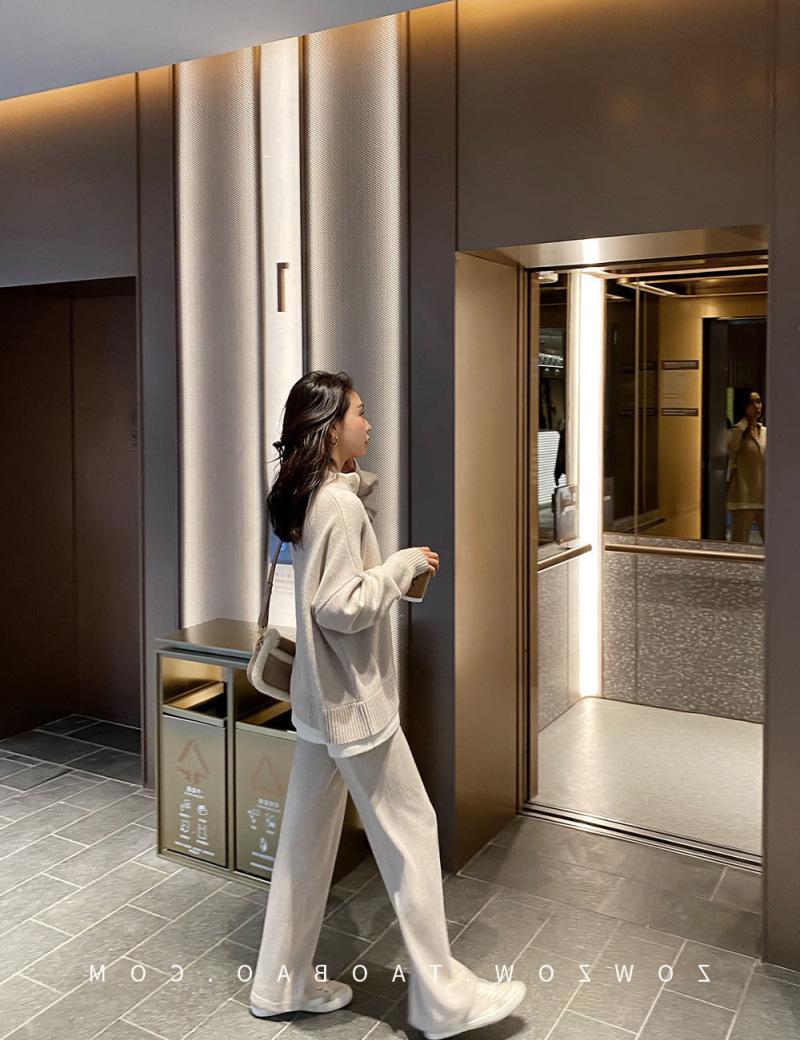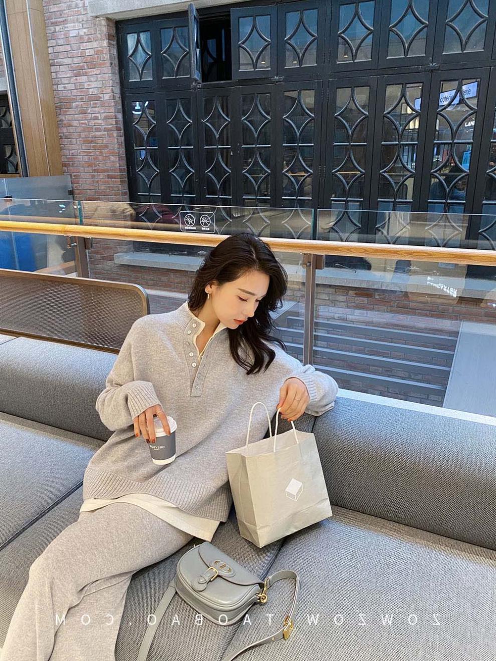 Traje deportivo antiedad de estilo occidental, primavera y otoño 2023, ropa de mujer, suéter de punto de dos piezas falso, pantalones de pierna ancha, traje casual de dos piezas