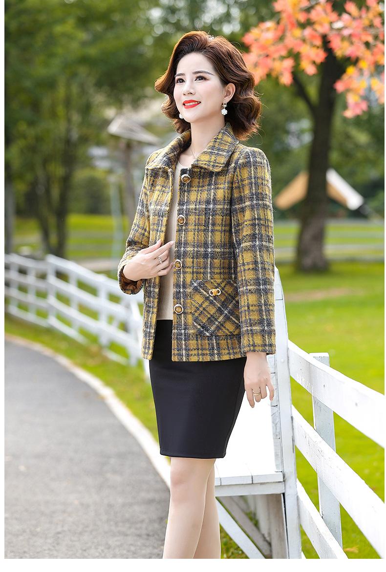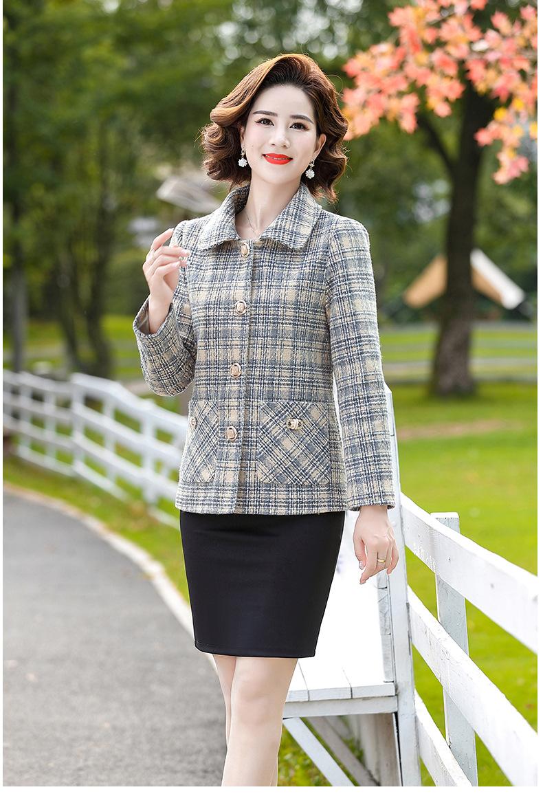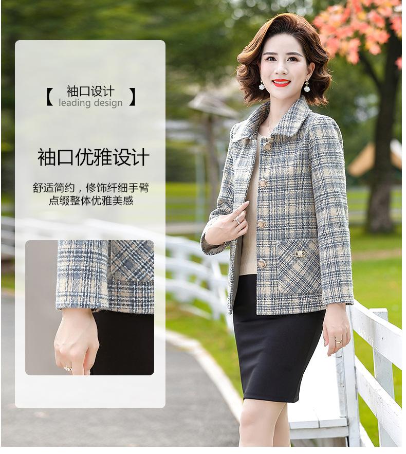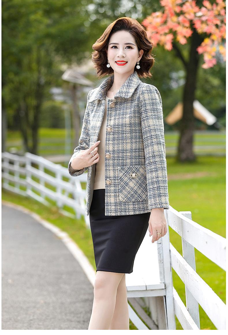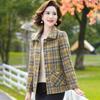 Chaqueta Corta de Otoño e Invierno para Madre Pequeña 2025 Traje a Cuadros Estilo Terciopelo para Mujeres de Mediana Edad y Ancianas