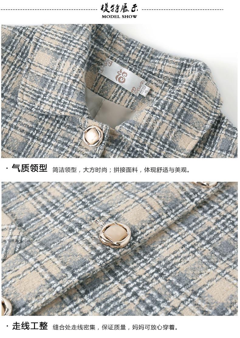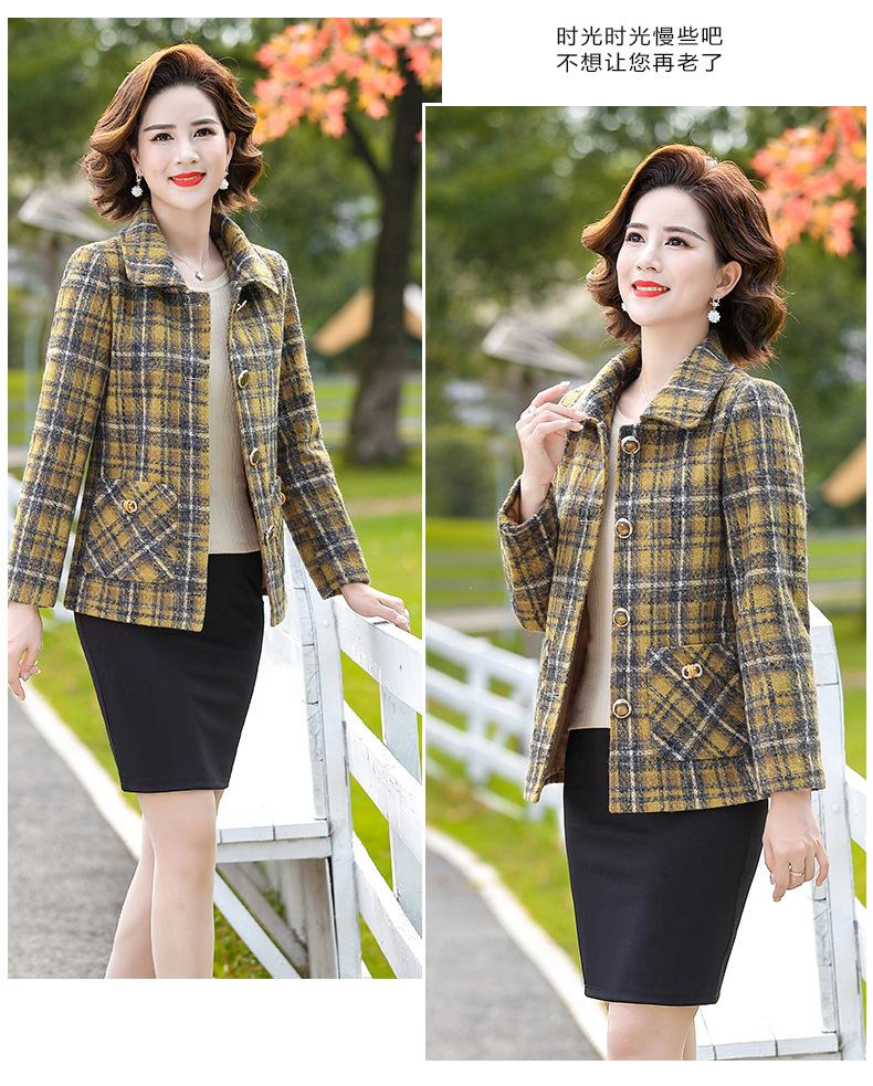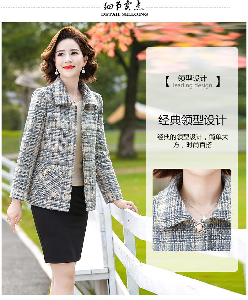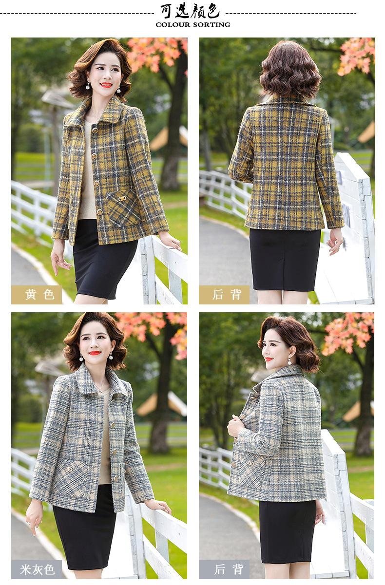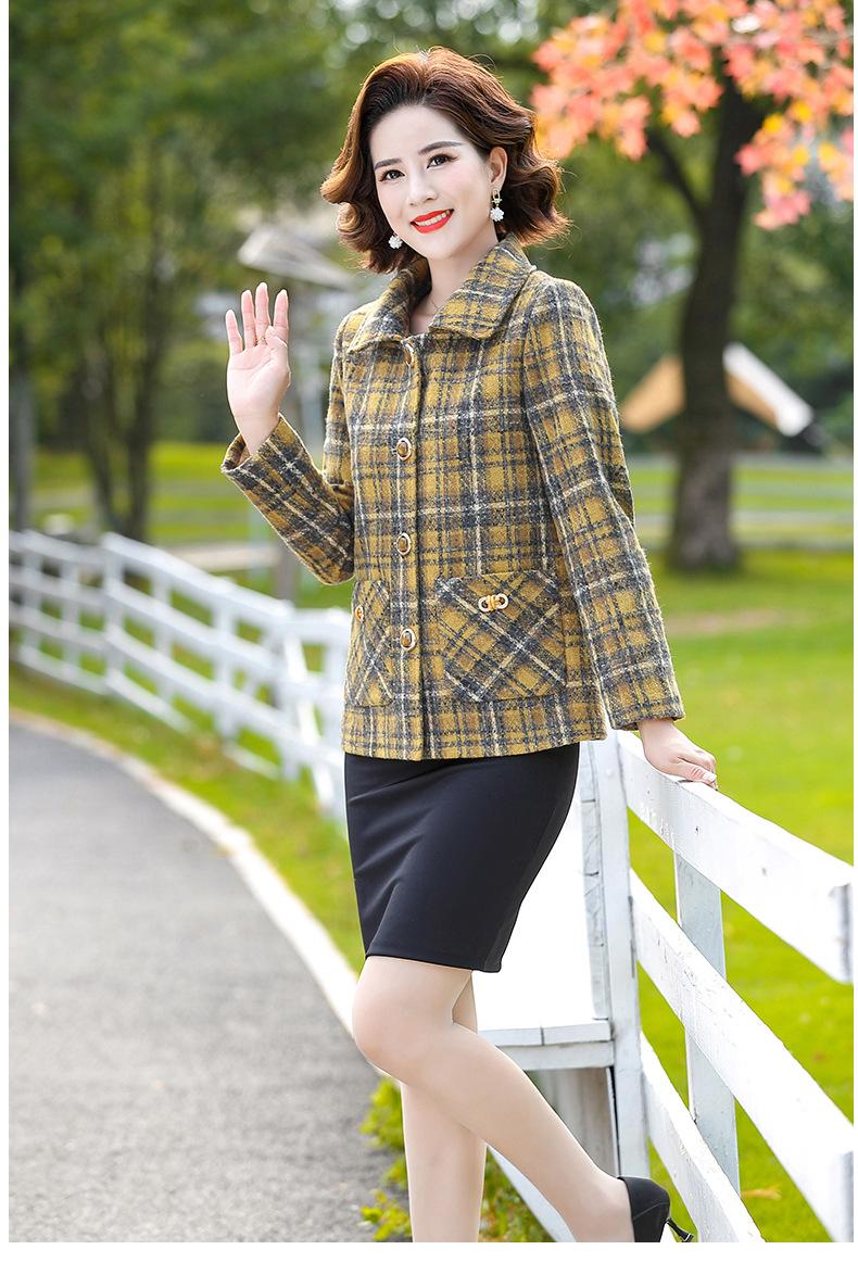 Chaqueta Corta de Otoño e Invierno para Madre Pequeña 2025 Traje a Cuadros Estilo Terciopelo para Mujeres de Mediana Edad y Ancianas