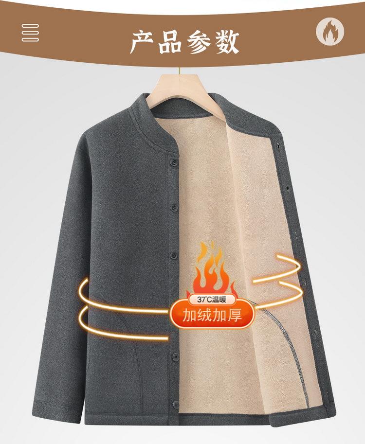 Ropa de abrigo para hombres de mediana edad y mayores, ropa interior gruesa con forro polar, cárdigan de invierno para papá, ropa exterior de lana de cordero para abuelos, otoño e invierno