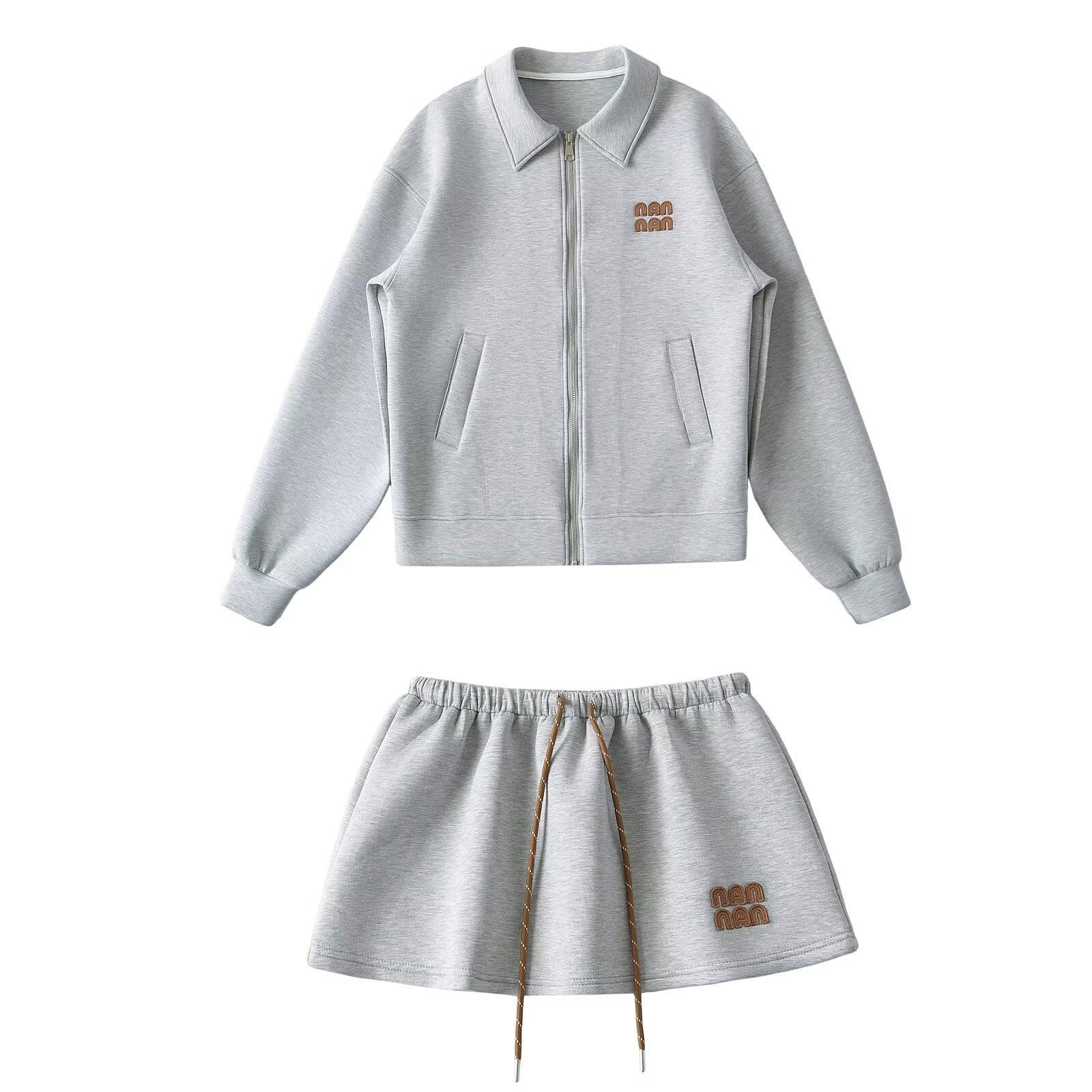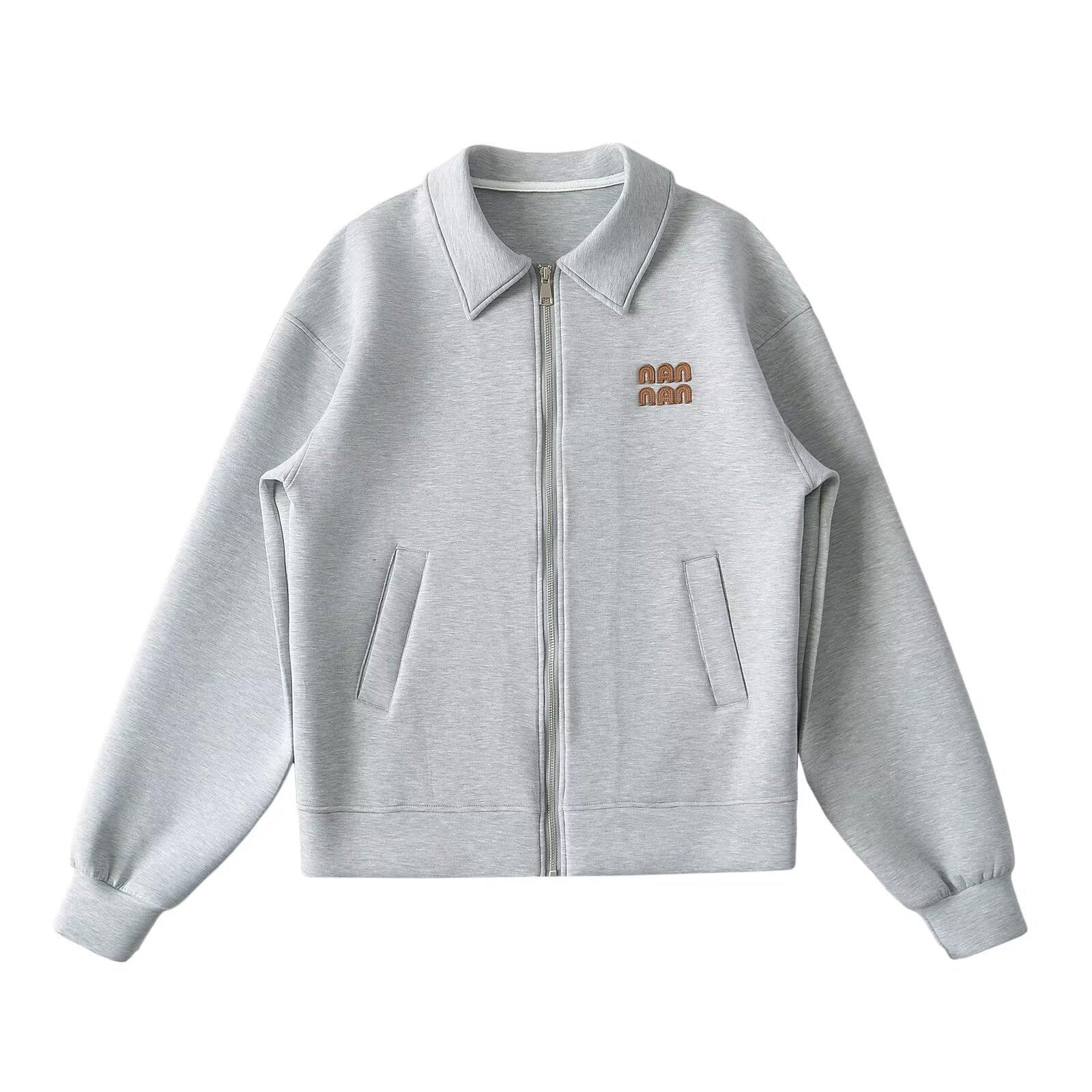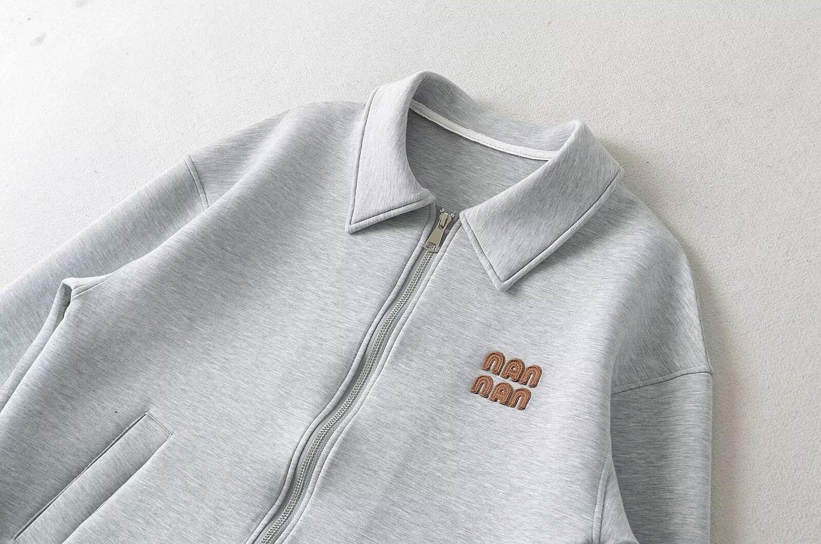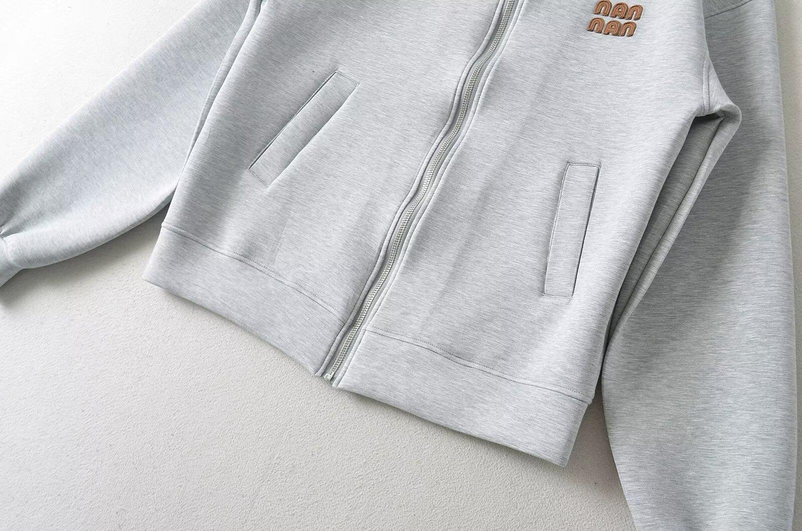 Sudadera Vintage Bordada con Letras Holgada Versátil Adelgazante Chaqueta con Cremallera Abrigo Traje de Falda Bordada con Cordón