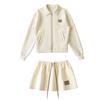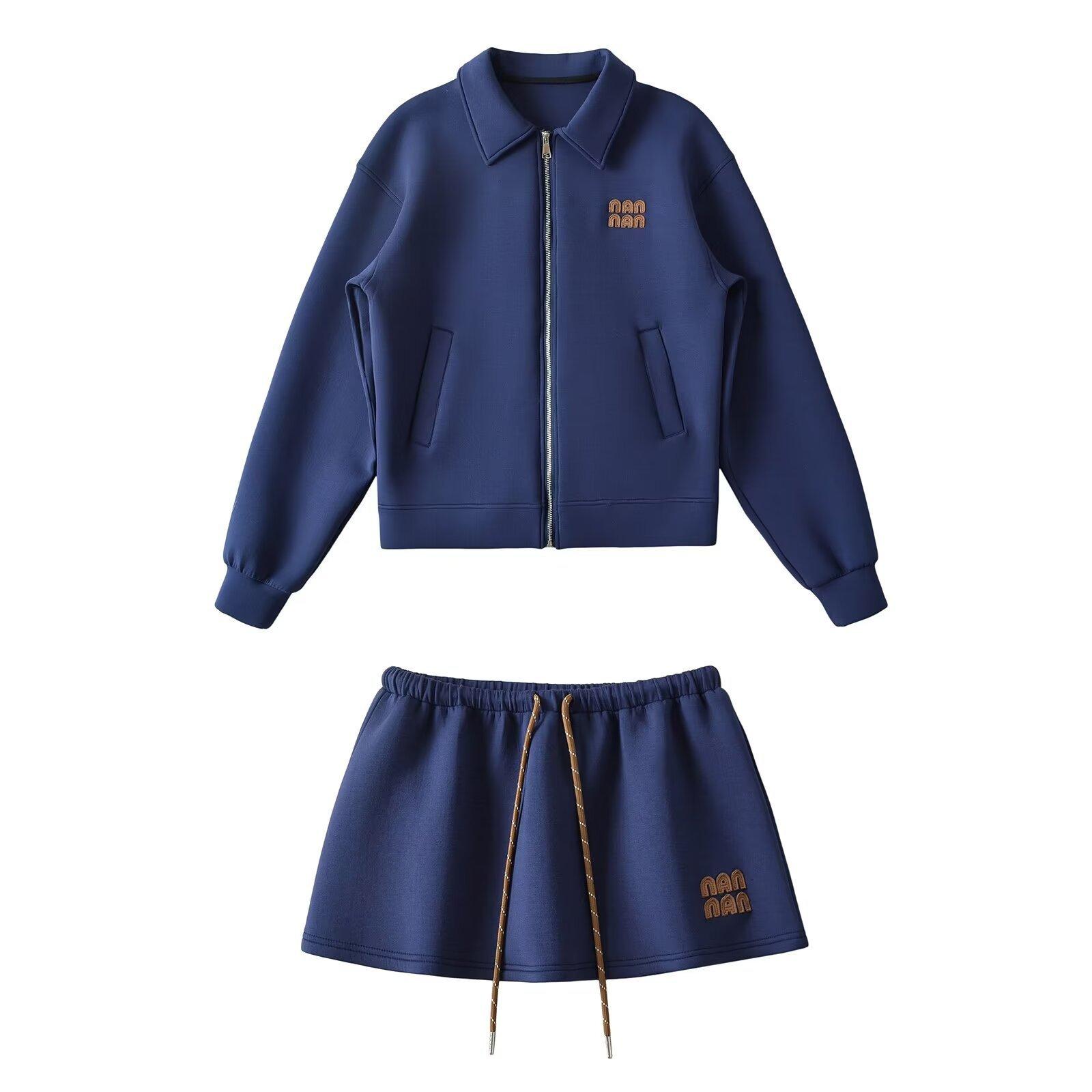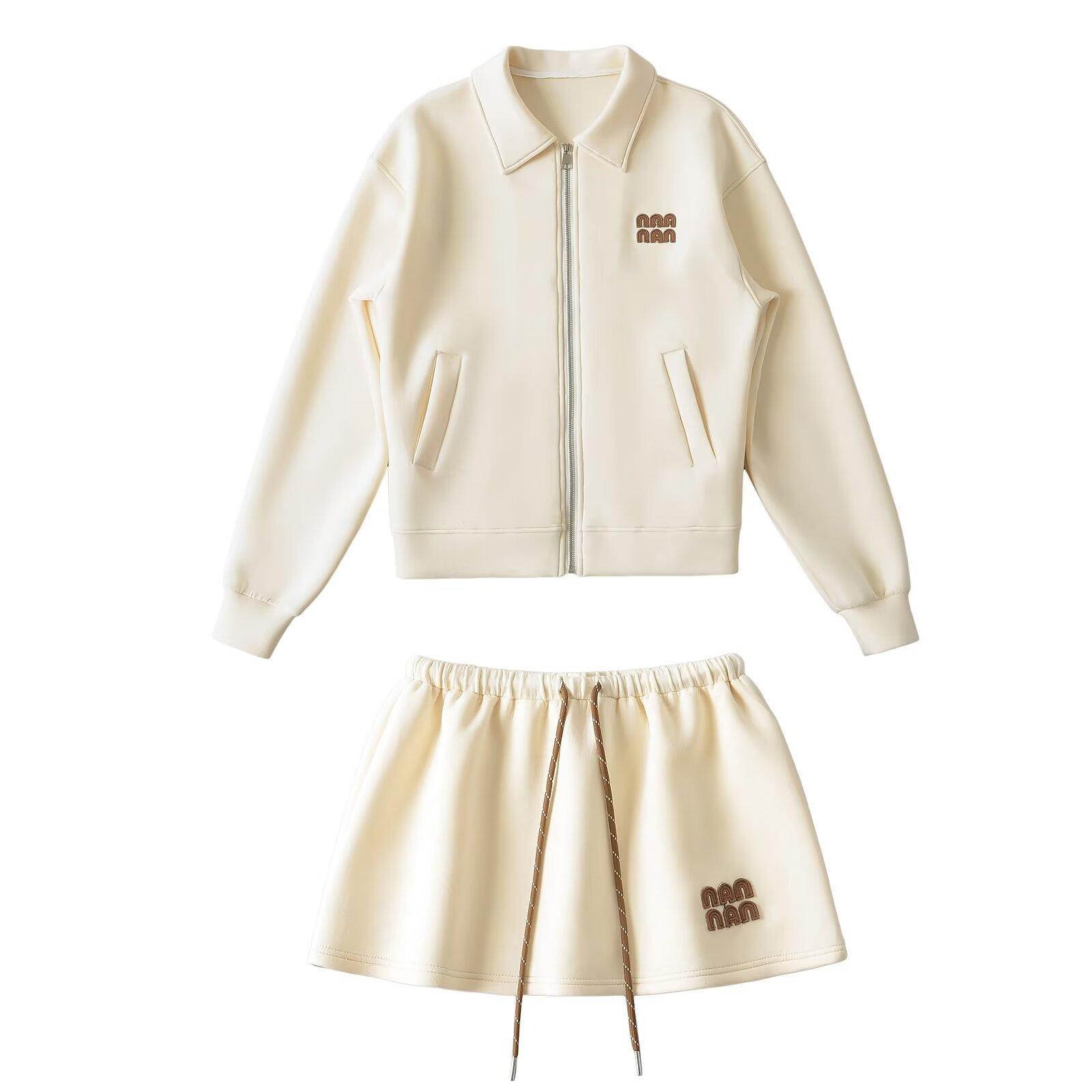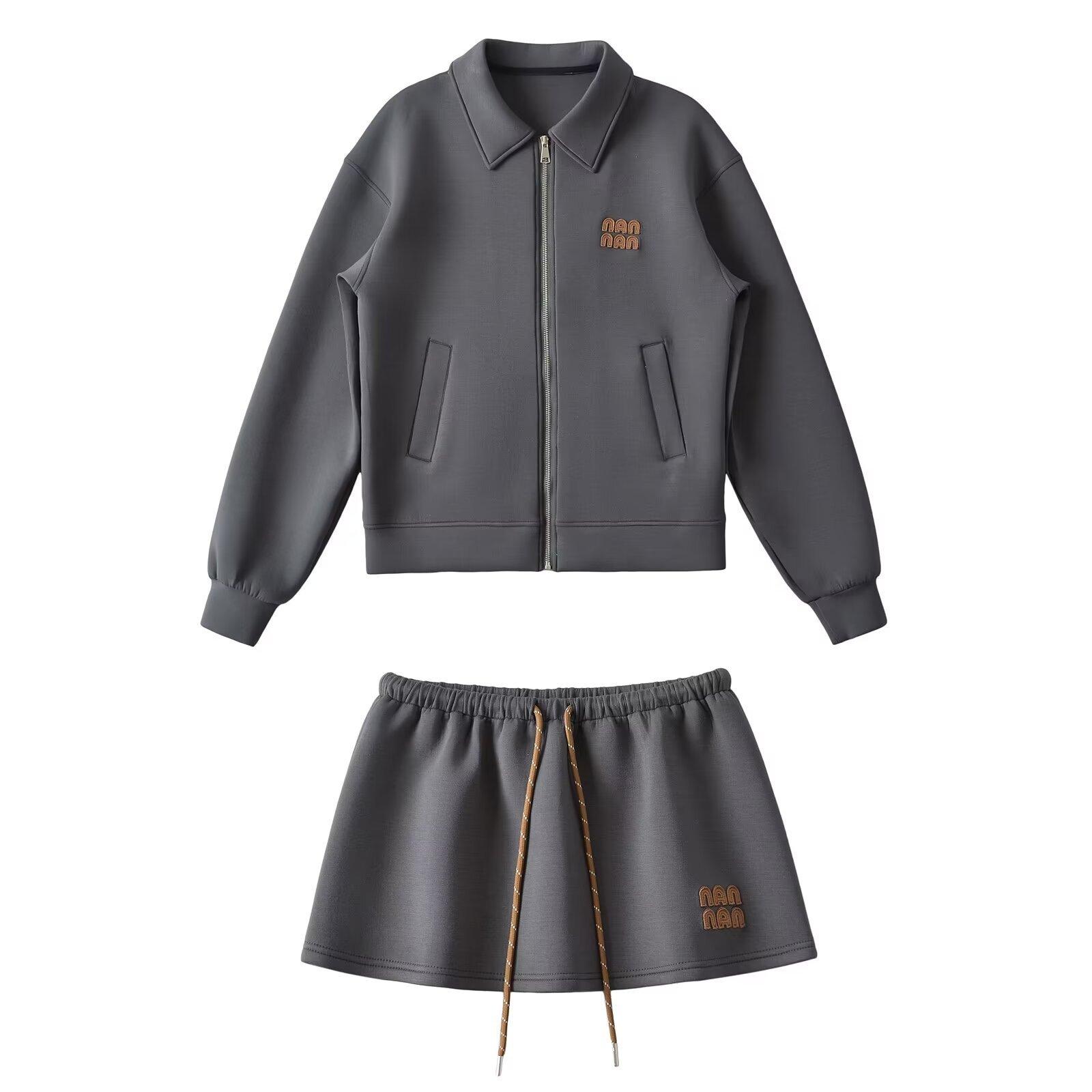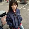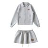 Sudadera Vintage Bordada con Letras Holgada Versátil Adelgazante Chaqueta con Cremallera Abrigo Traje de Falda Bordada con Cordón