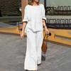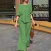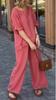 Conjunto de dos piezas de traje de algodón y lino para mujer, estilo europeo y americano, holgado, informal, de color liso, para verano de 2025