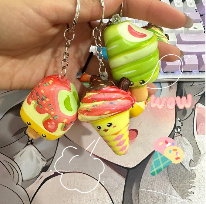 Nuevo colgante pequeño de brunch de helado de verano de rebote lento de PU de dibujos animados, cono de juguete divertido y nostálgico
