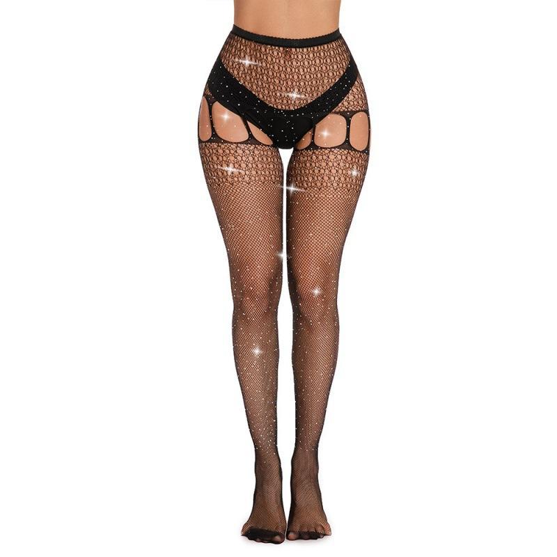 Medias finas de seda negra sexy calcetines de liga calcetines de una pieza con jacquard de rombos huecos pantalones de malla transparente calcetines de red pantimedias