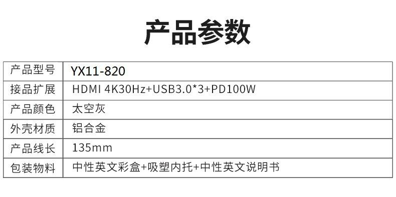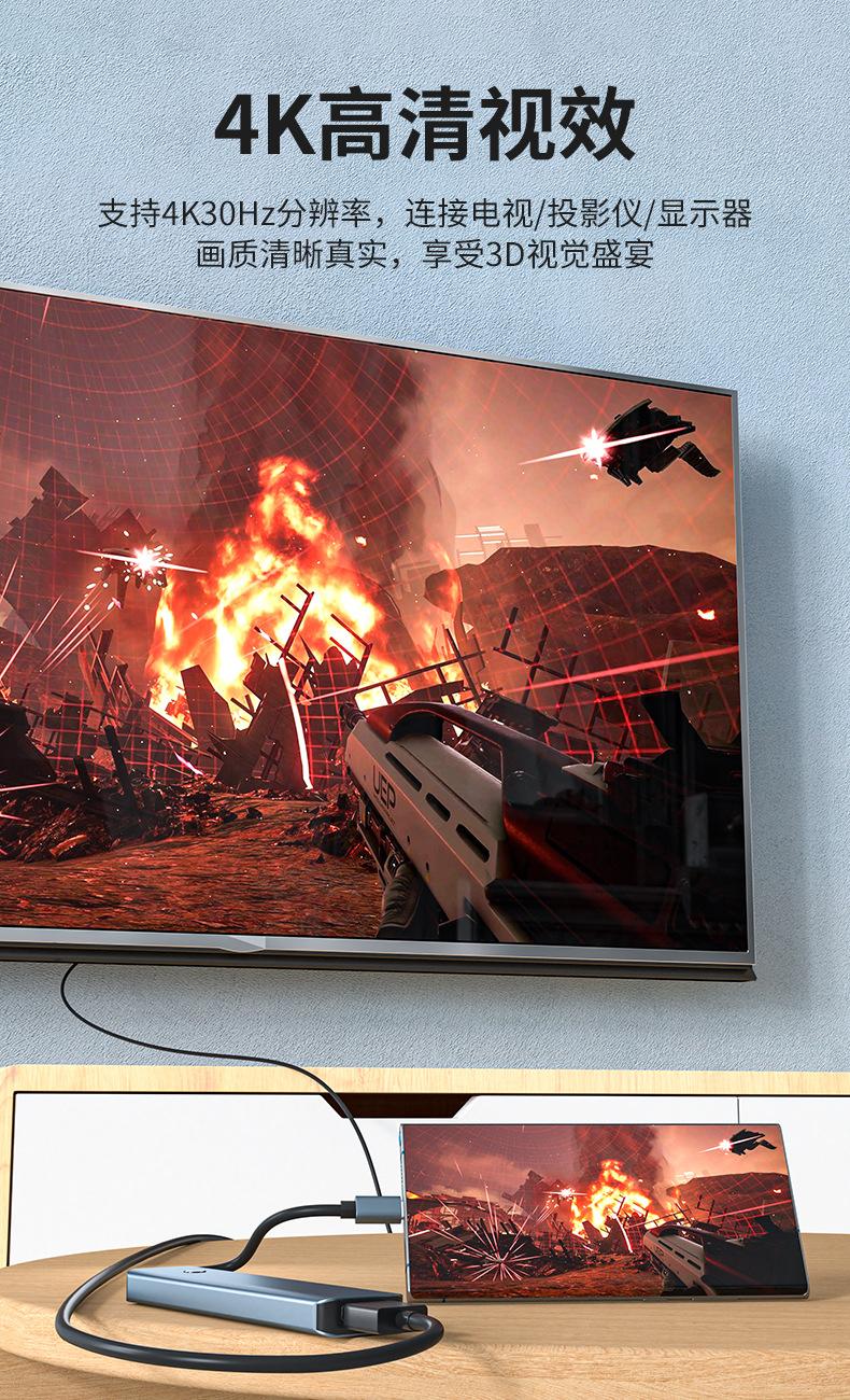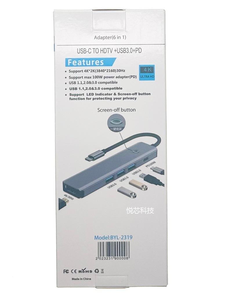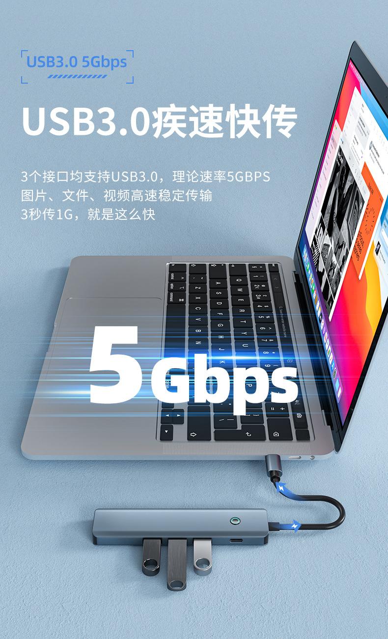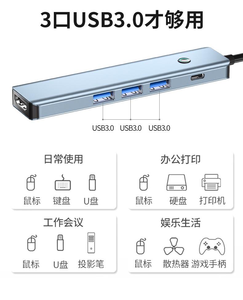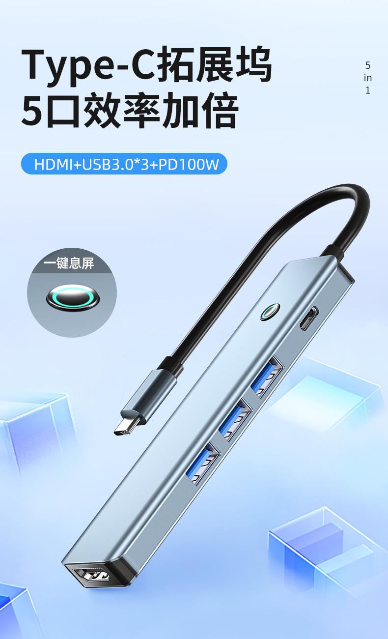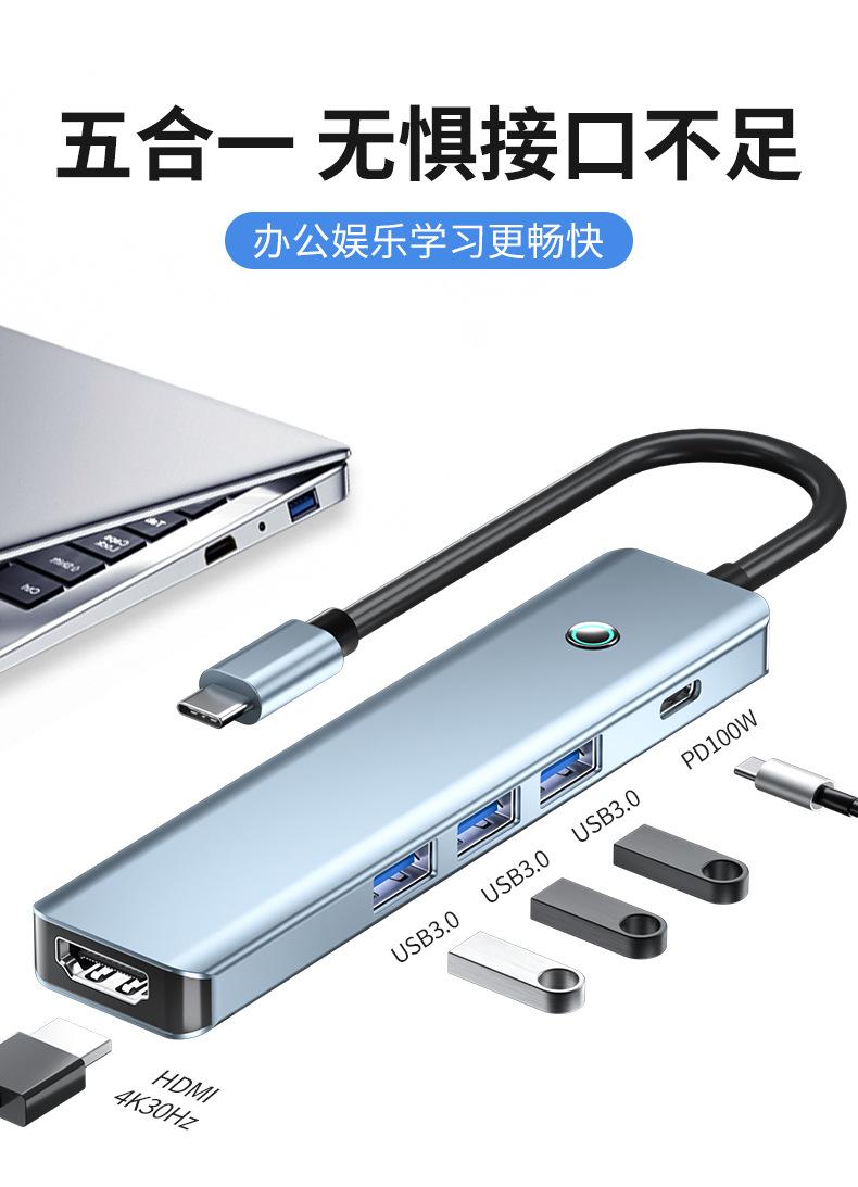 Five-in-one (hdmi 4k30hz+usb3.0*3+pd100w)