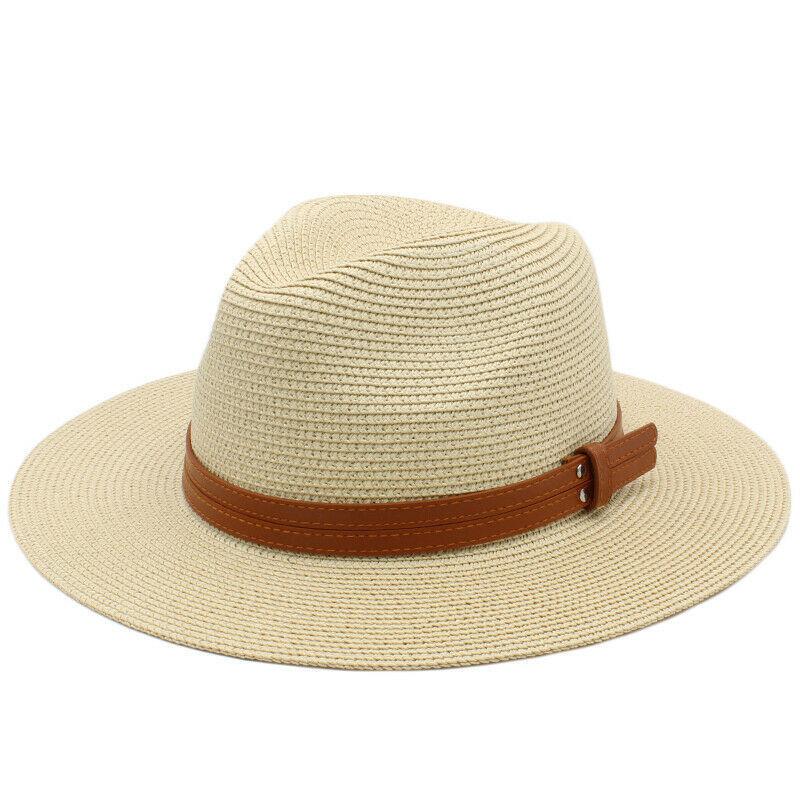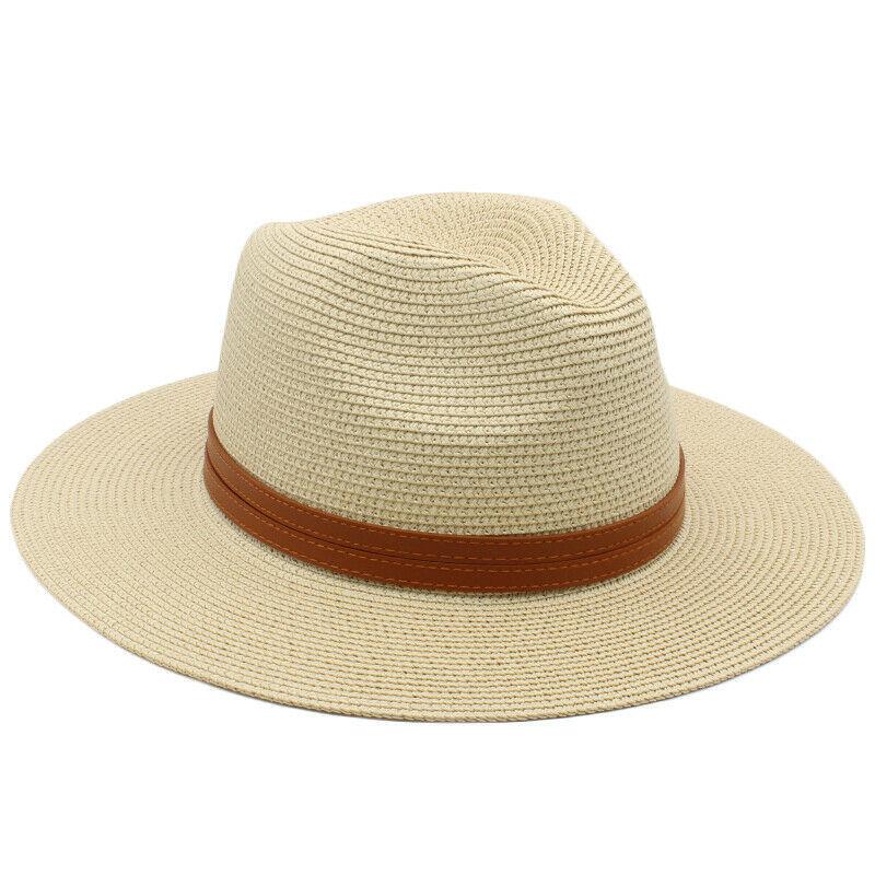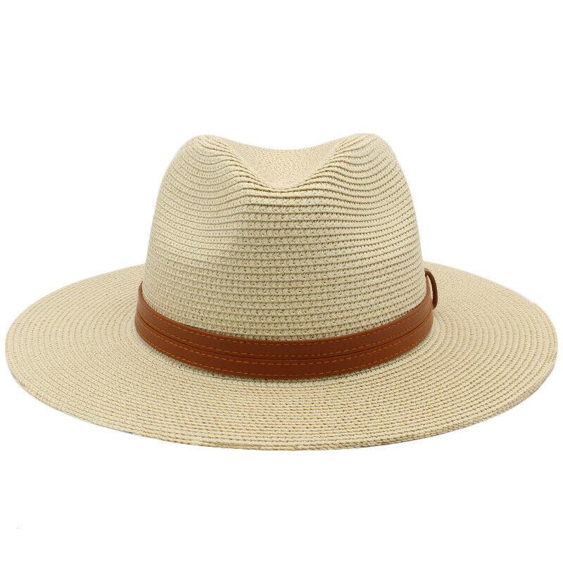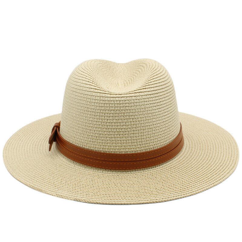 Sombrero de paja con protector solar de verano para hombres y mujeres, sombrilla, sombrero de copa Panamá, sombrero de paja suave de ala ancha, sombrero de playa de viaje