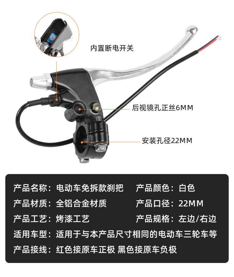 Manija de freno para coche eléctrico, manija de aluminio, manija de freno de tranvía de litio, manija de freno para triciclo, manija de freno para scooter, desmontaje gratuito universal.
