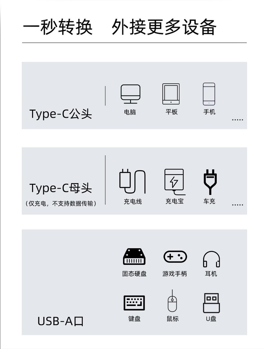 Adaptador Otg Tipo-C a USB3.2 Convertidor Carga PD Transmisión de Datos Uno a Dos Notebook