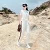 Conjunto deportivo informal antiedad estilo occidental de Fried Street para mujer, pantalones blancos finos nuevos de verano 2024, conjunto de dos piezas