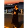 2025 Otoño e Invierno Nuevo Estilo Hepburn Popular de Este Año Abrigo Largo de Lana Negro para Mujer Abrigo de Lana para Persona Pequeña
