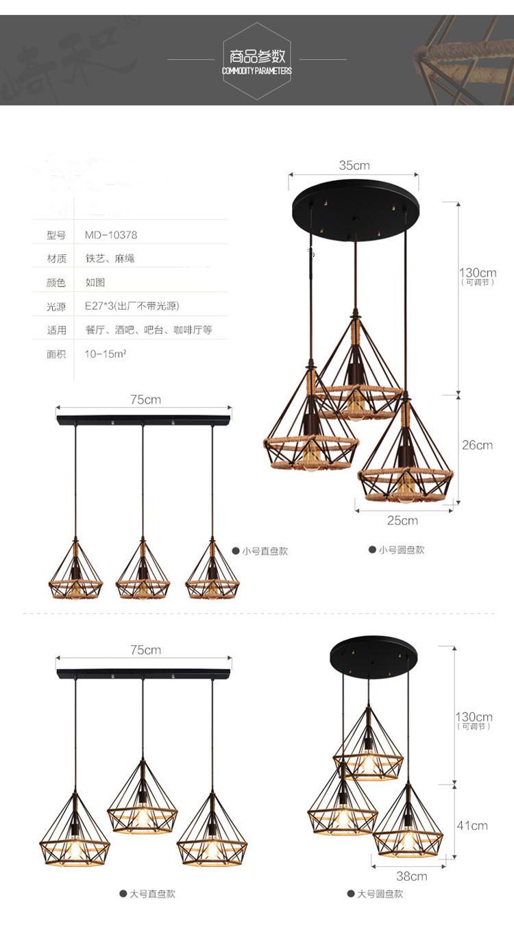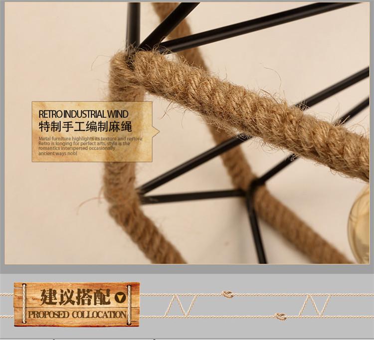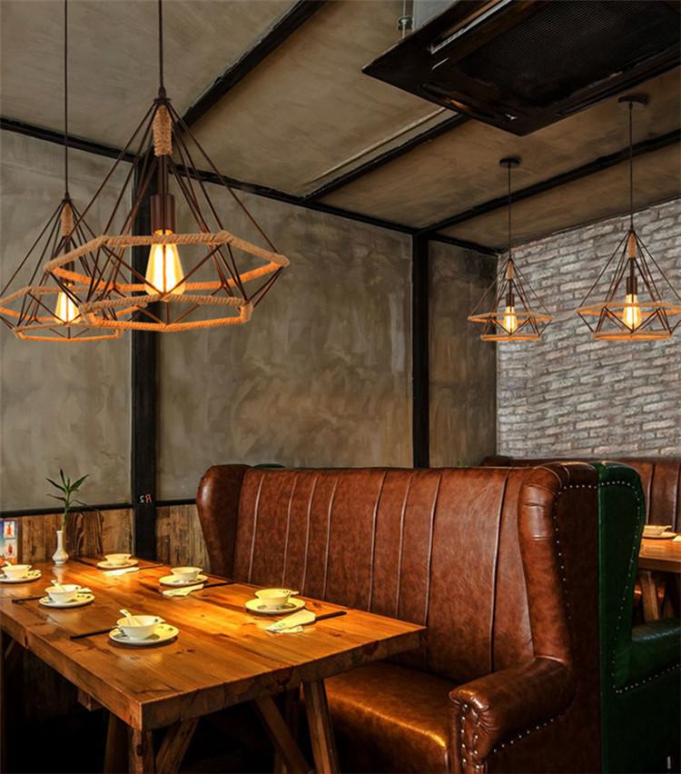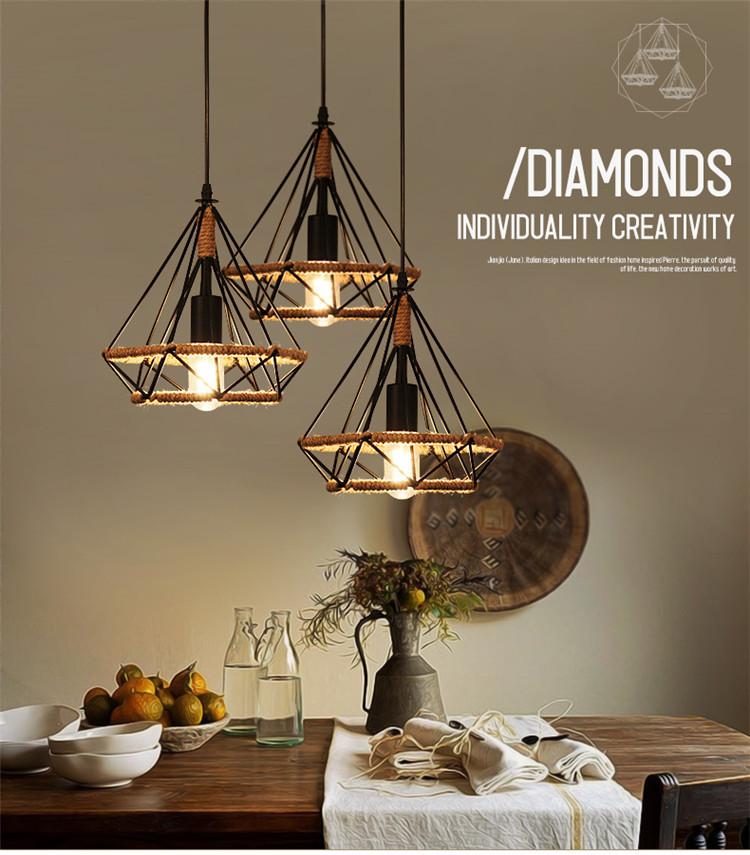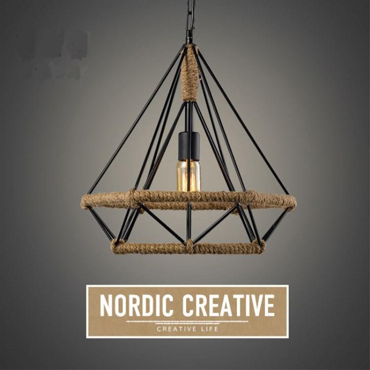 Lámpara de araña de estilo americano LOFT retro de cuerda de cáñamo estilo industrial de hierro con diamantes, lámpara de araña de arte creativo nórdico para bar y restaurante