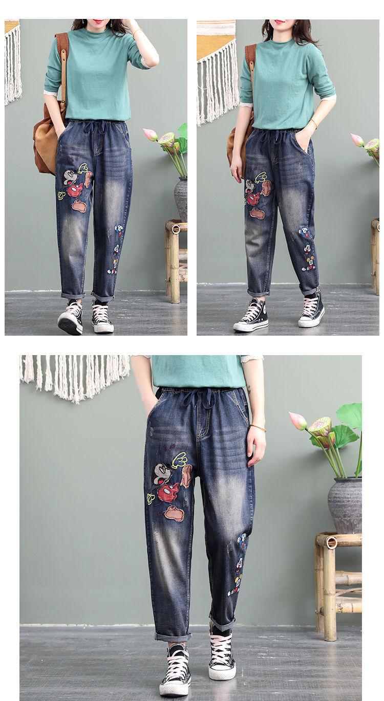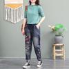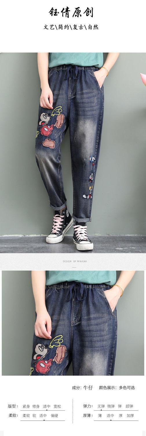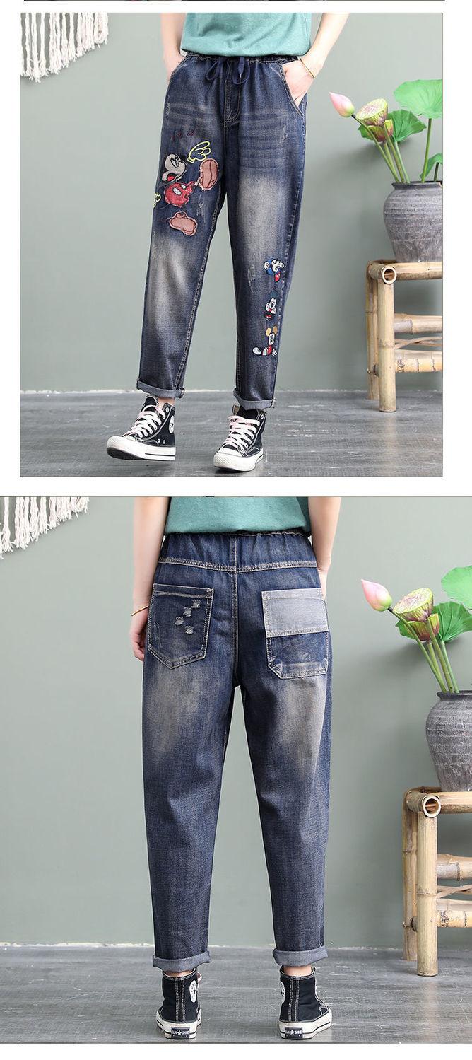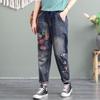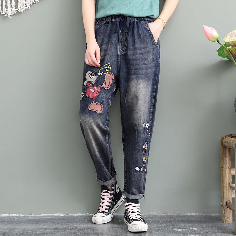 Pantalones vaqueros bordados de cintura alta para mujer, holgados y ajustados, de otoño, tallas grandes, estilo harén, de moda 2020.