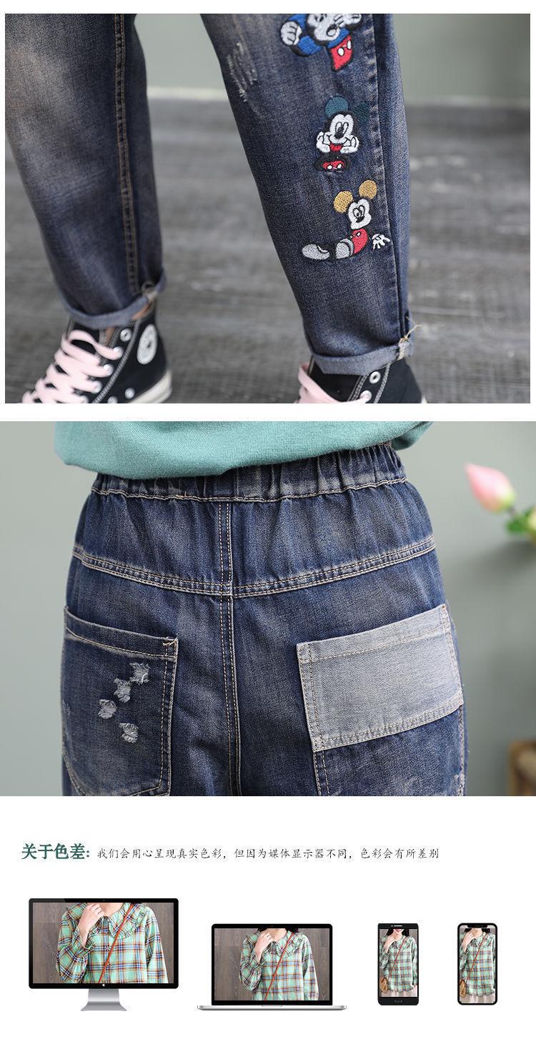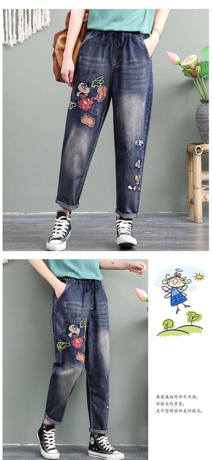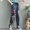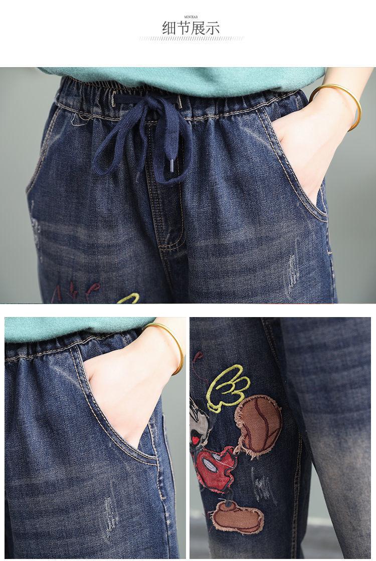 Pantalones vaqueros bordados de cintura alta para mujer, holgados y ajustados, de otoño, tallas grandes, estilo harén, de moda 2020.