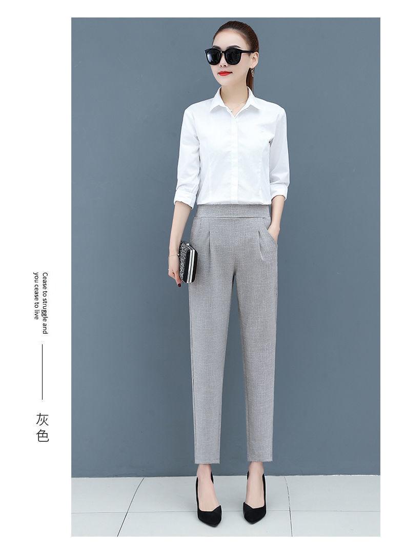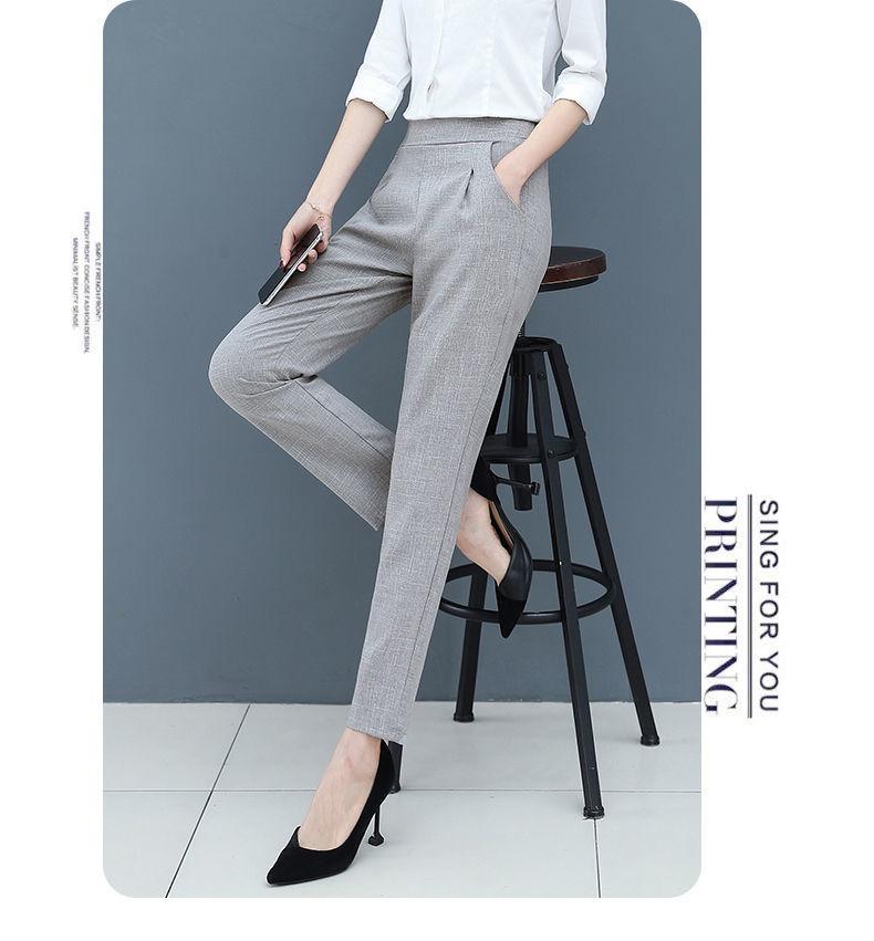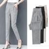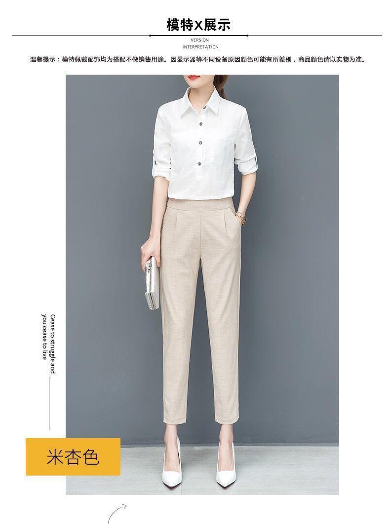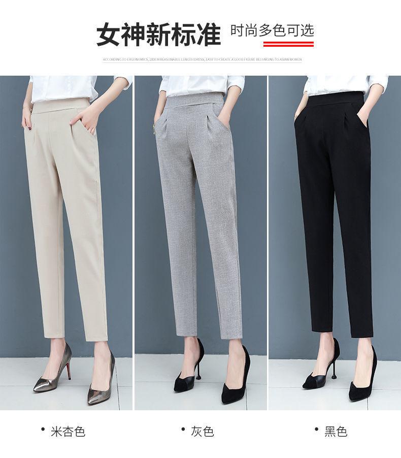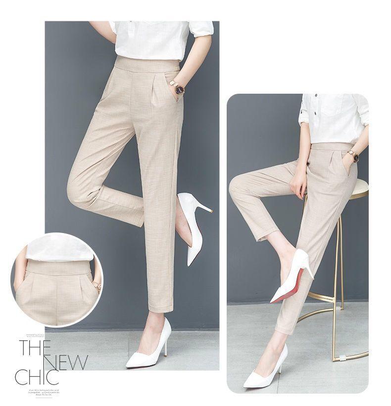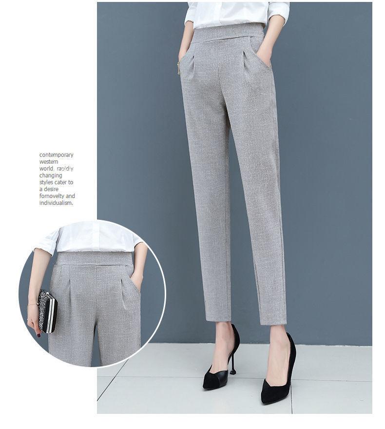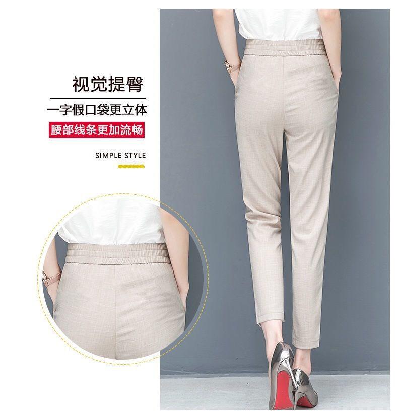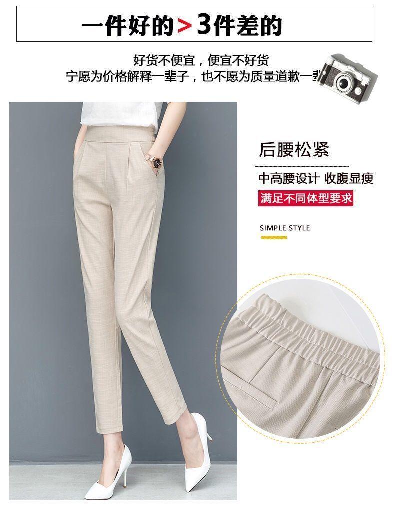 Pantalones Harem de cintura alta para mujer, adelgazantes, primavera y verano 2024, nuevos pantalones de algodón y lino de nueve puntos, de pierna recta, de pierna pequeña, pantalones casuales sueltos para mujer