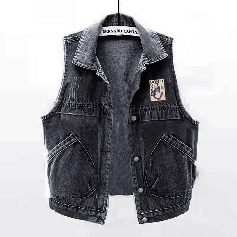 Chaleco vaquero corto para mujer, estilo coreano, primavera y verano, nuevo, sencillo, con bolsillos grandes y solapa, chaleco sin mangas, chaqueta superior holgada versátil.