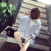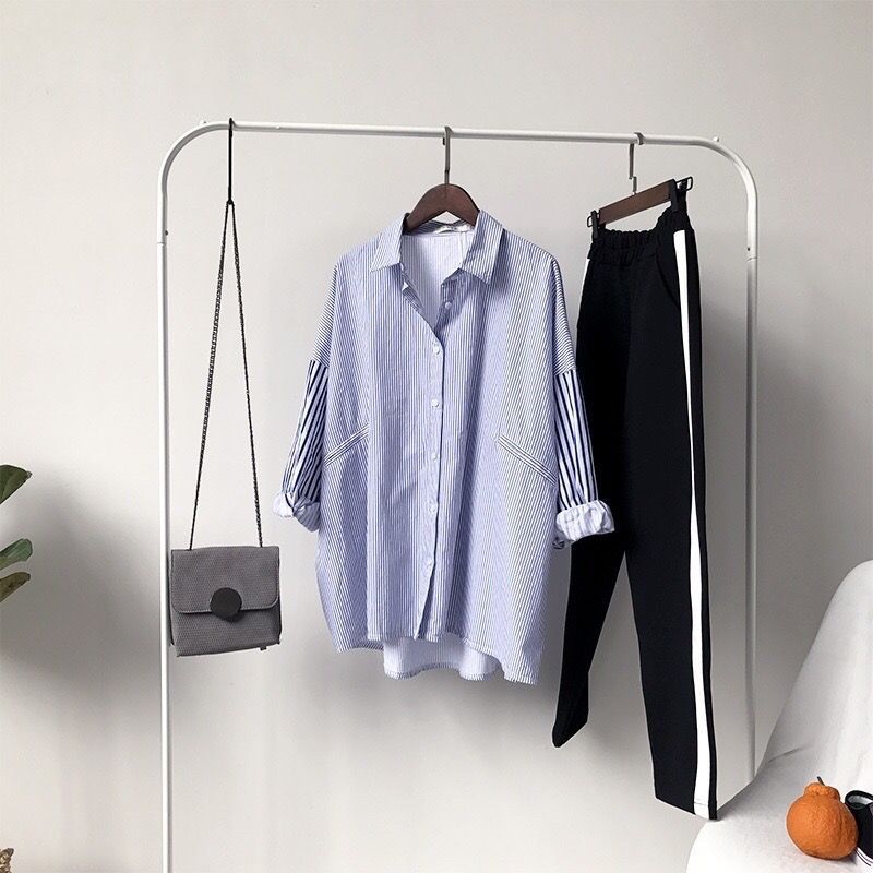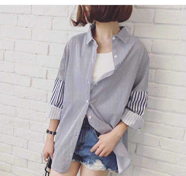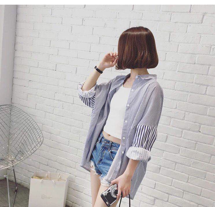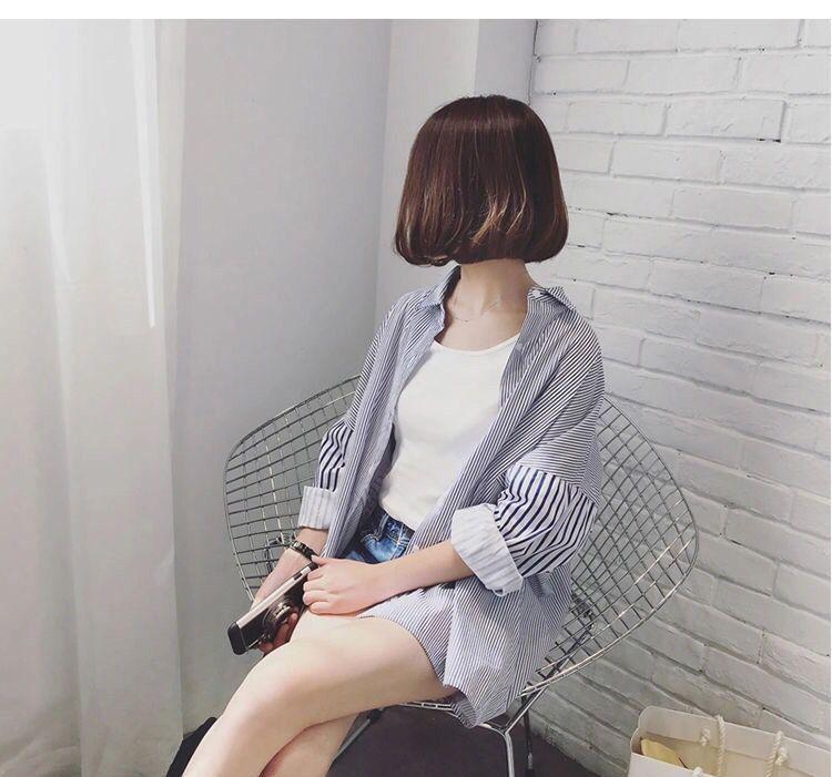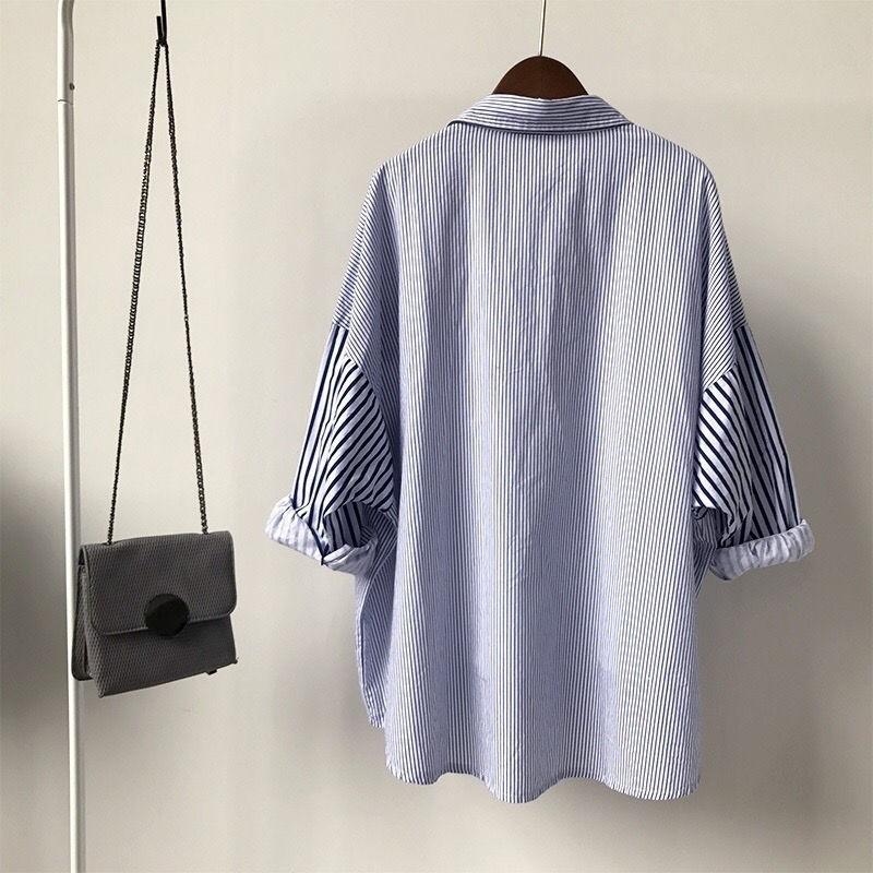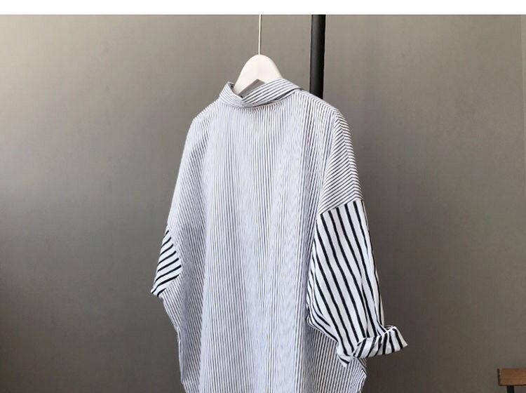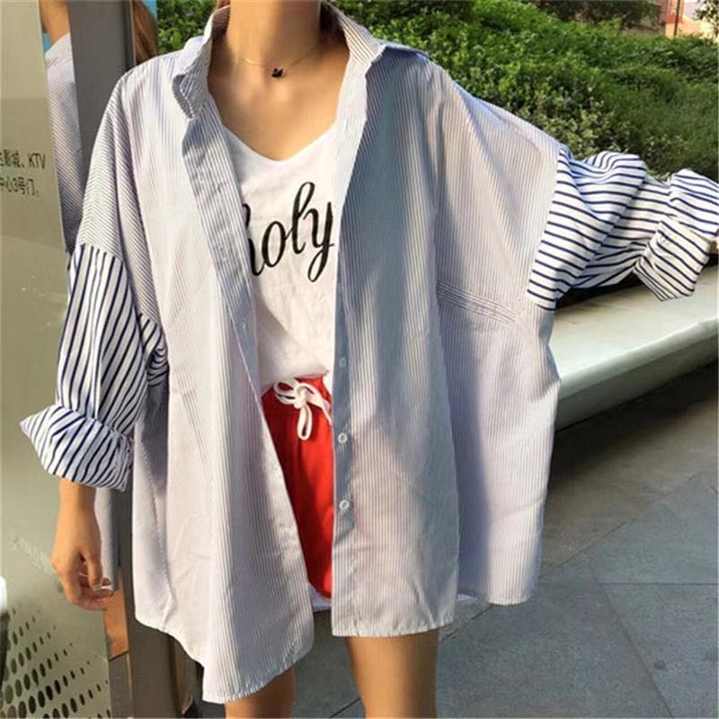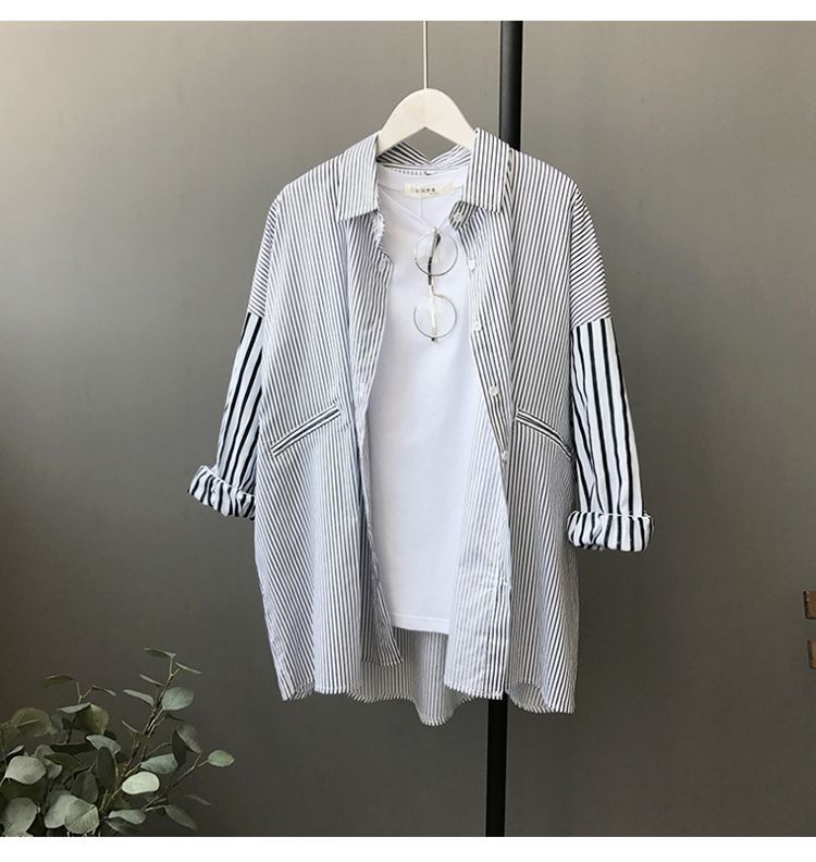 Cárdigan de Largo Medio Estilo Harajuku Estilo Coreano Holgado Manga Murciélago Empalme Rayas Camisa Exterior para Mujer Camisa Versátil para Estudiante