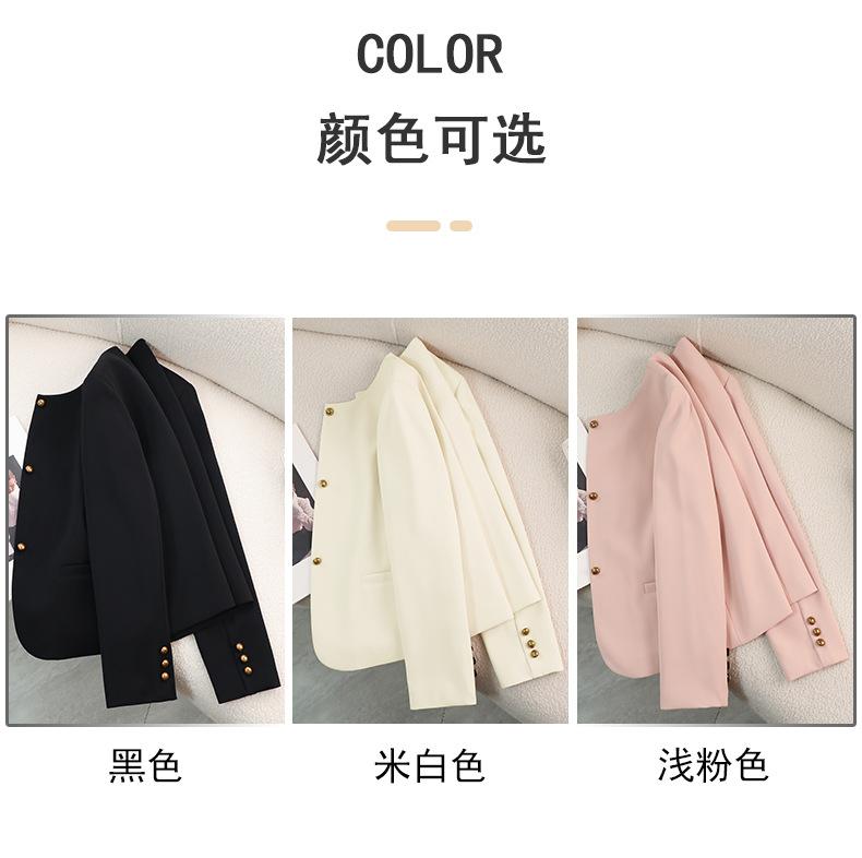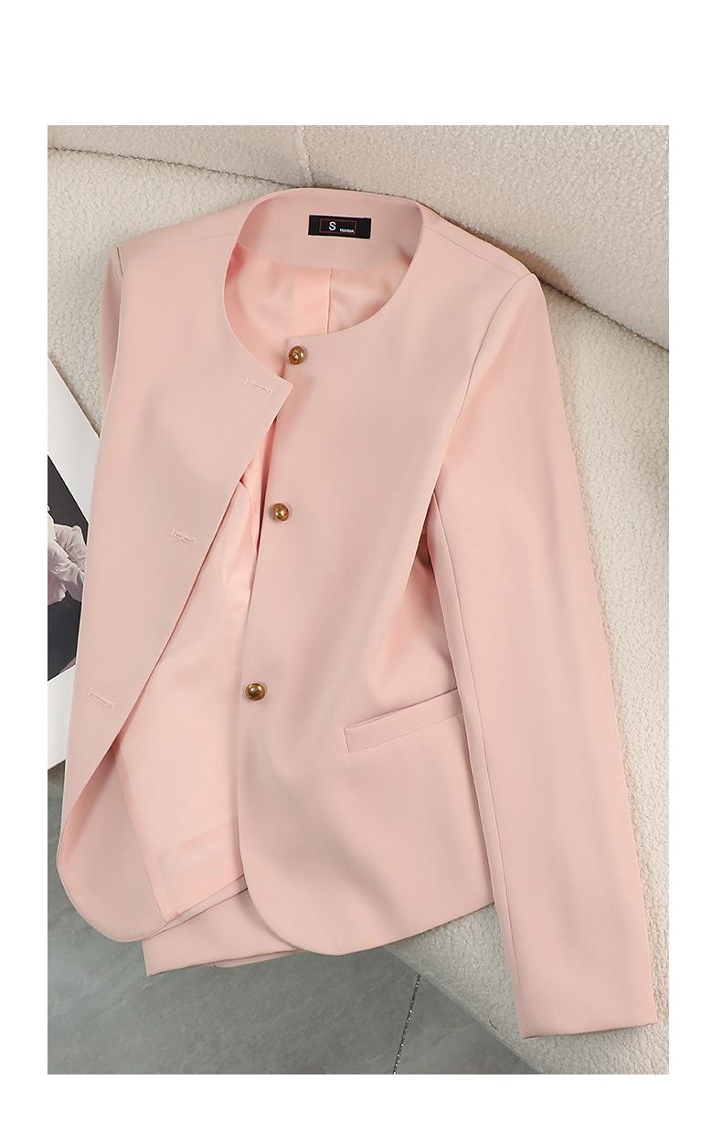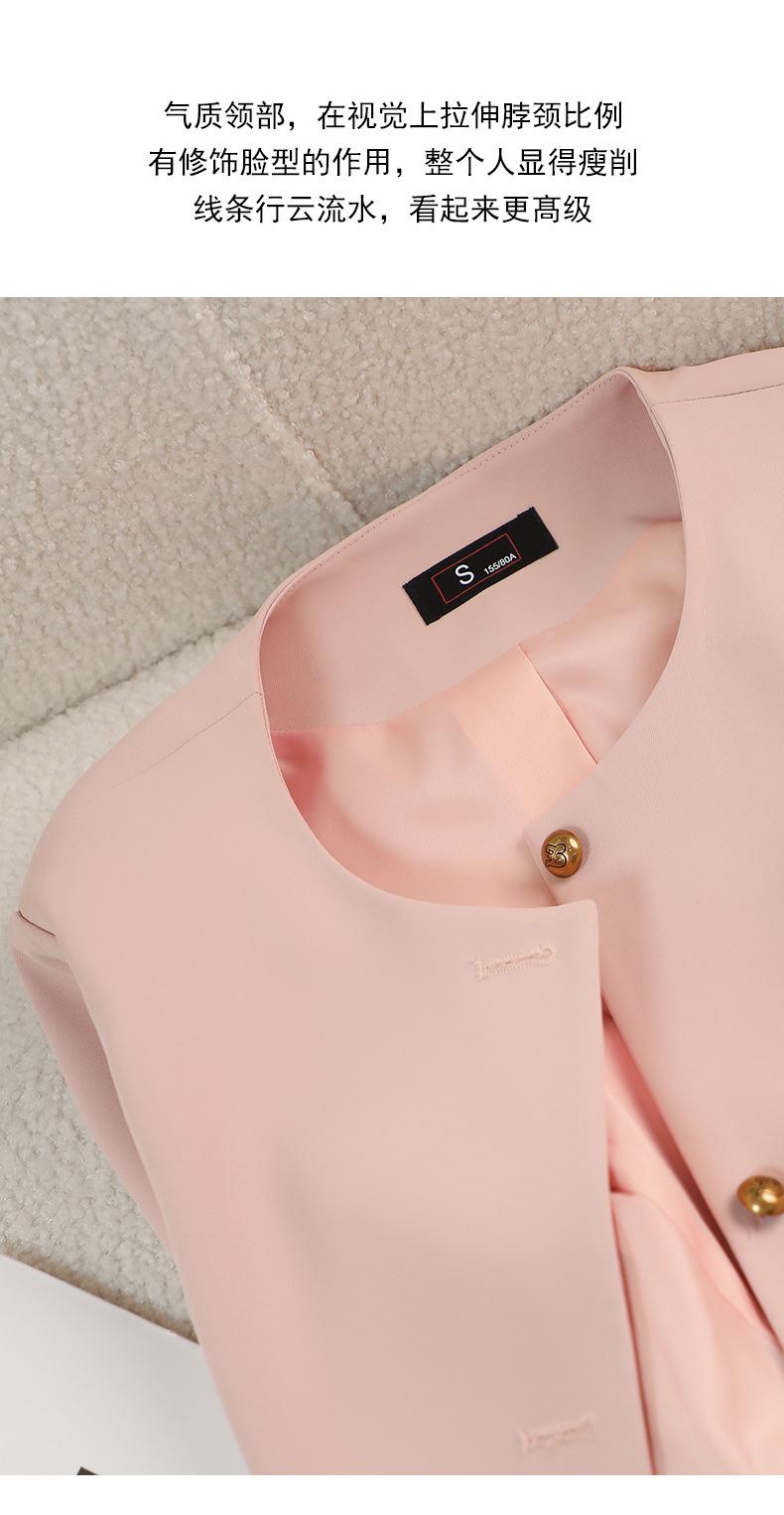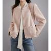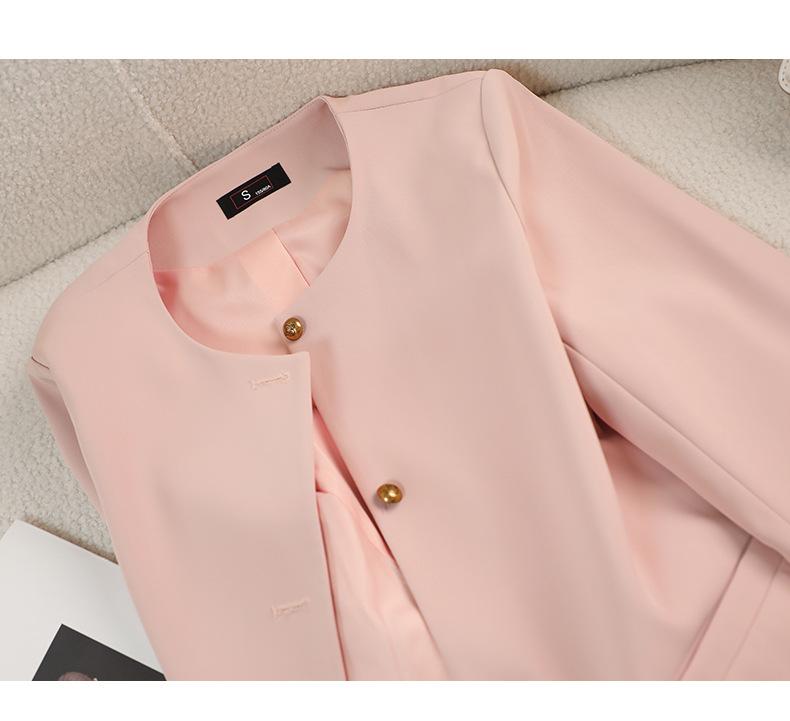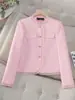 Abrigo de Traje Rosa para Mujer de Alto Sentido 24 Nuevo Primavera Otoño e Invierno Estilo Chanel Top Elegante sin Cuello Traje de Mujer