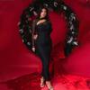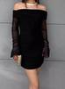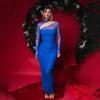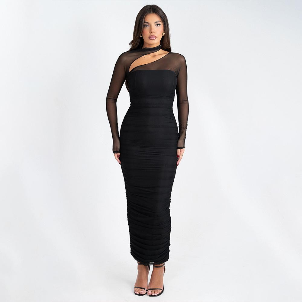Europeo y Americano Transfronterizo Nuevo Estilo Malla Elegante Sexy Sin Tirantes Manga Larga Ajustado Vestido Largo vestido Ajustado Adelgazante