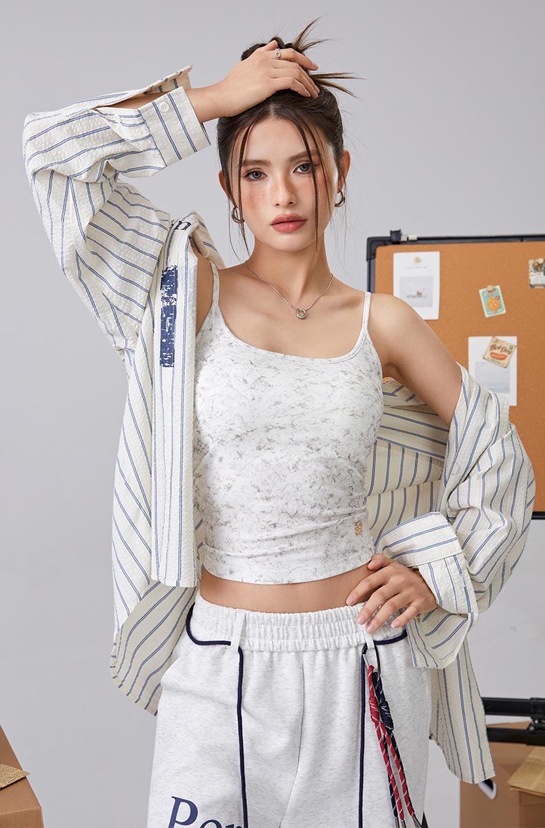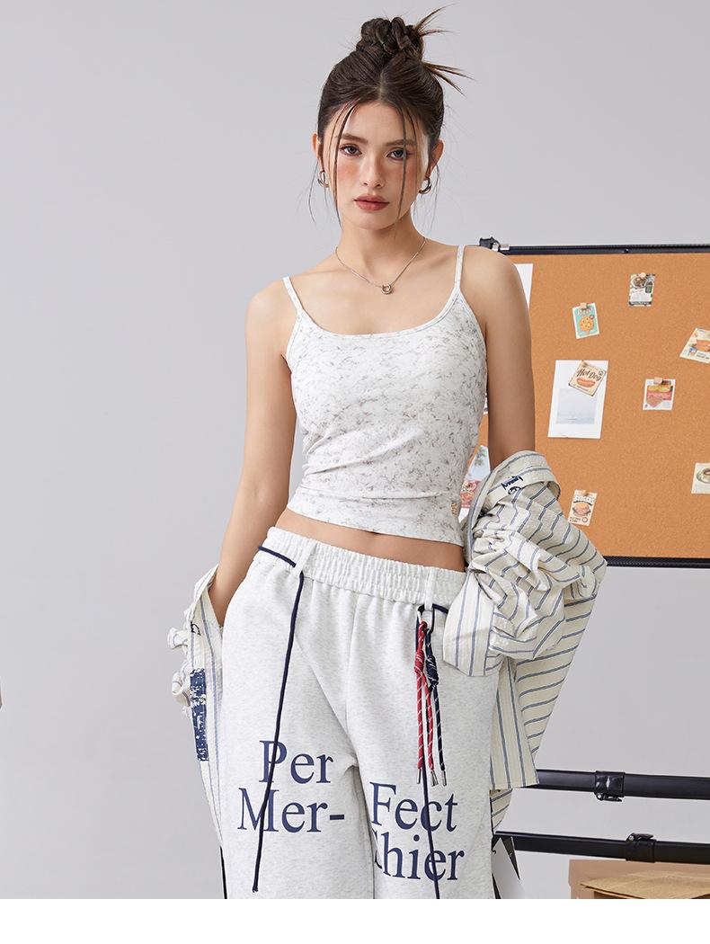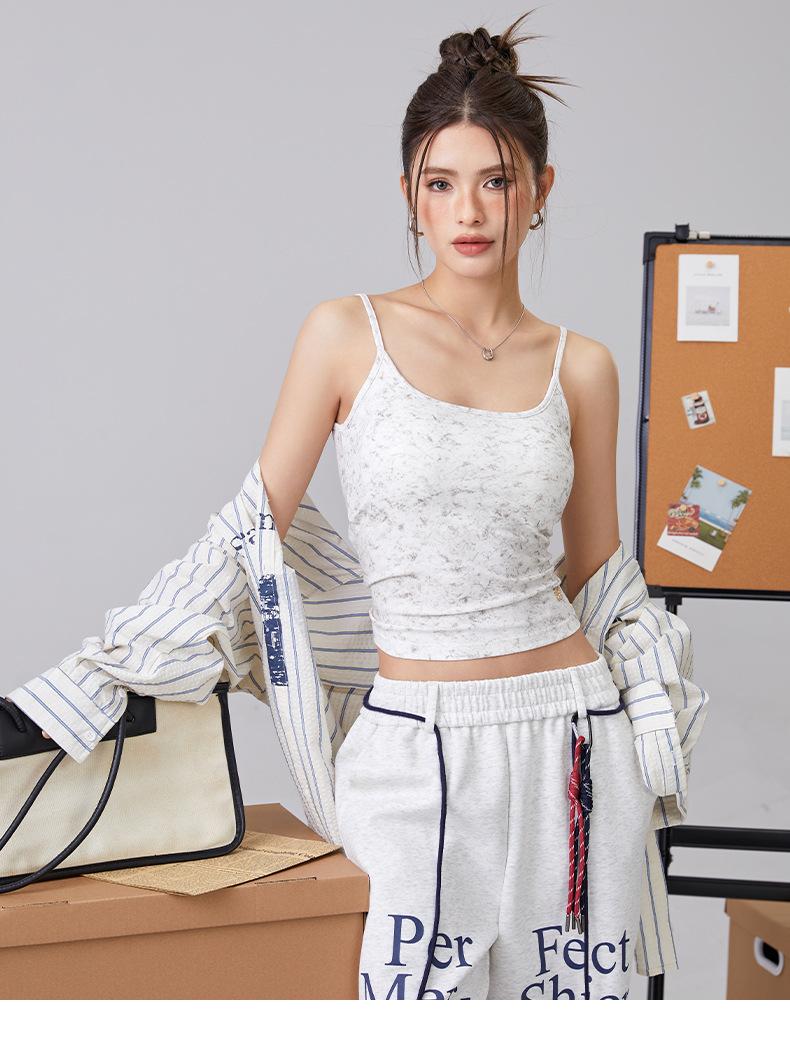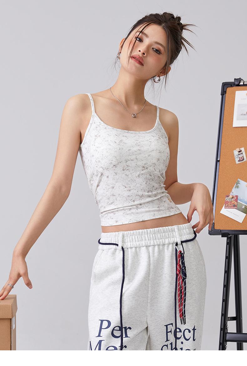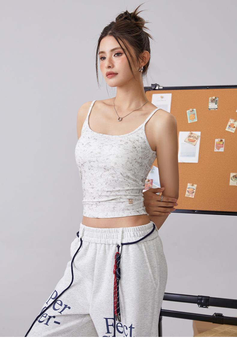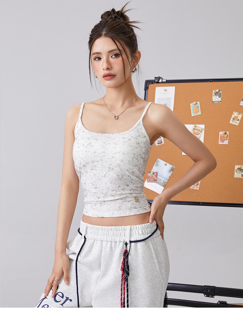 Europeo y Americano Puro Deseo Sling Corto Chica Caliente Nuevo Top Tie-Dye Sexy Ajustado Adelgazante Chaleco Deportivo para Mujer