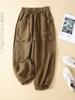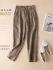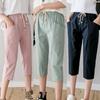Pantalones bombachos de verano de algodón y lino para mujer, pantalones bombachos de nueve puntos, de color puro, con empalme de encaje, versátiles, casuales de algodón puro.