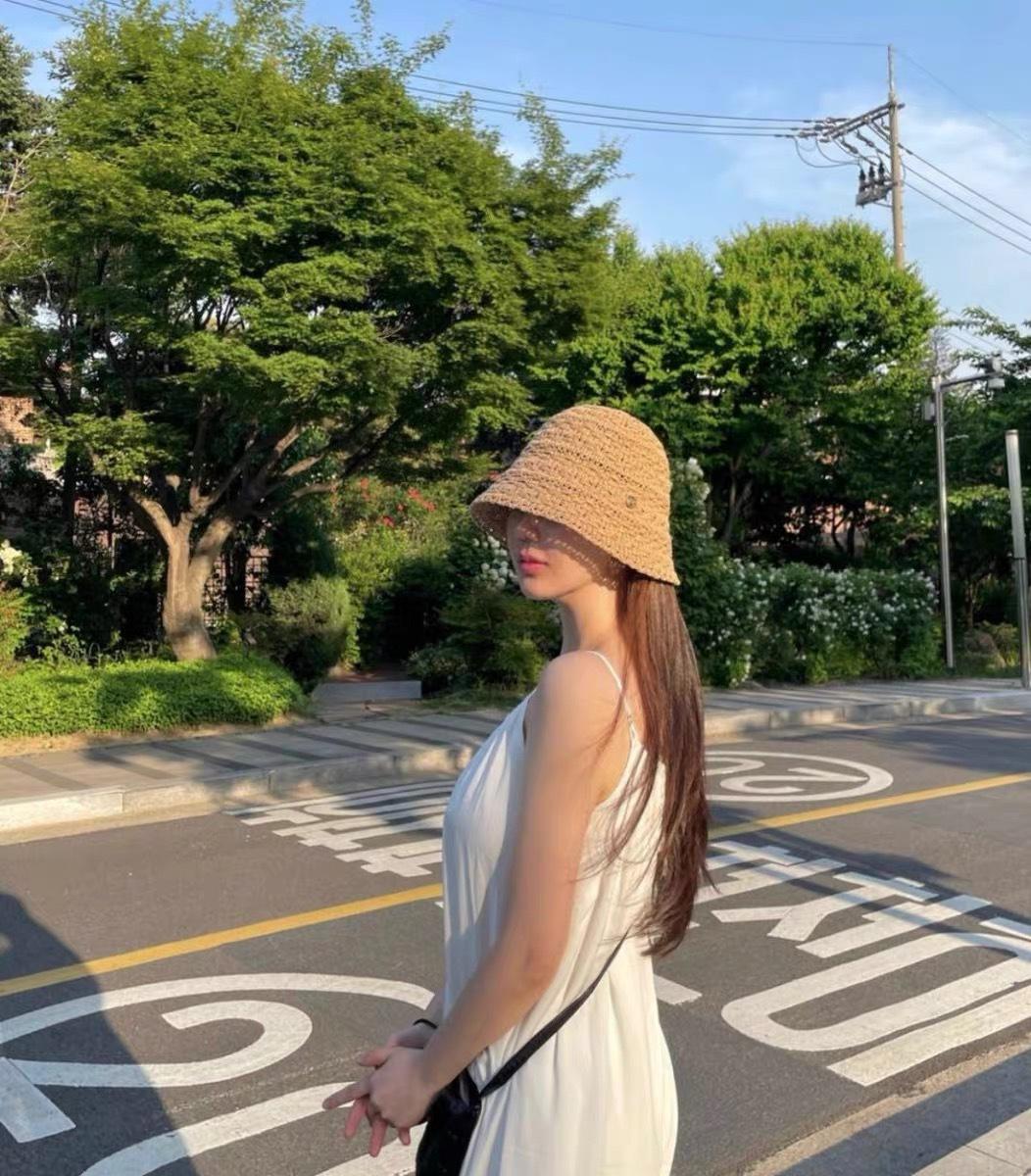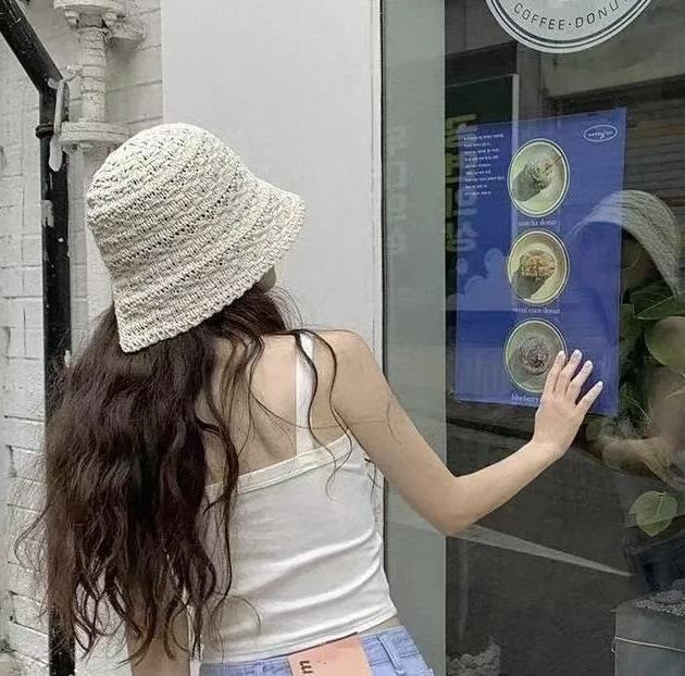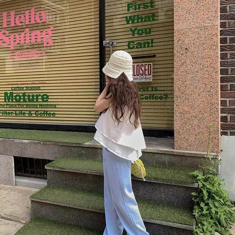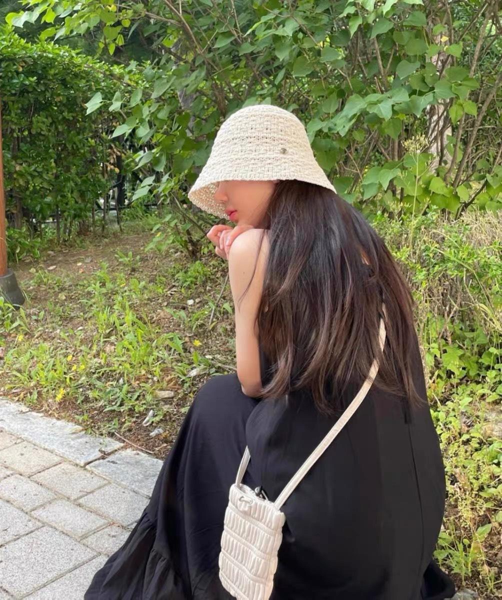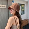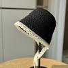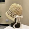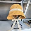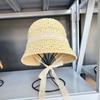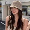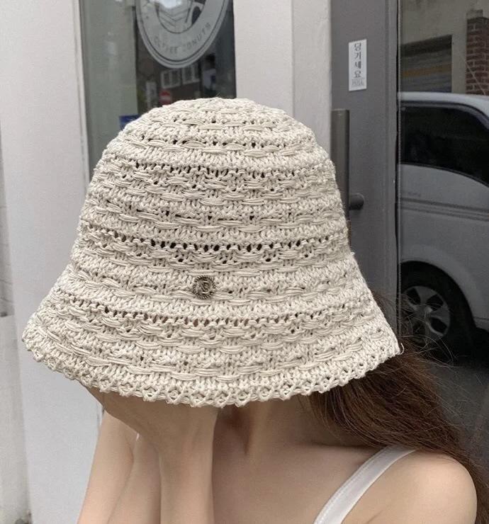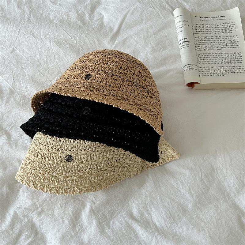Moda de Verano Playa Protección Solar Sombrero Cubo con Abertura Trasera para Mujer Estilo Coreano Hueco Sombrero Cubo Pescador Sombrero Cubo Paja para Exterior Fino