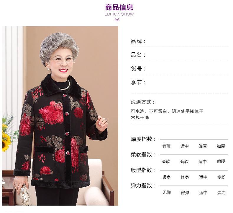 Ropa de invierno acolchada de algodón para personas mayores Chaqueta acolchada de algodón de la abuela para la esposa de 70 años y 80 años chaqueta acolchada de terciopelo para la madre anciana
