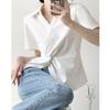 Camisa de estilo francés para mujer, diseño Sense Niche, estilo ligero y maduro, blusa holgada de manga corta de verano 2025.