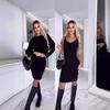2024 Amazon Temperamento Europeo y Americano Traje de Moda Transfronterizo Top de Manga Larga de Punto para Mujer Otoño Nuevo Falda con Tirantes