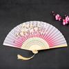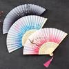 Abanico de seda estilo chino para mujer, abanico plegable antiguo portátil de estilo japonés, abanico de seda pequeño y plegable artesanal.