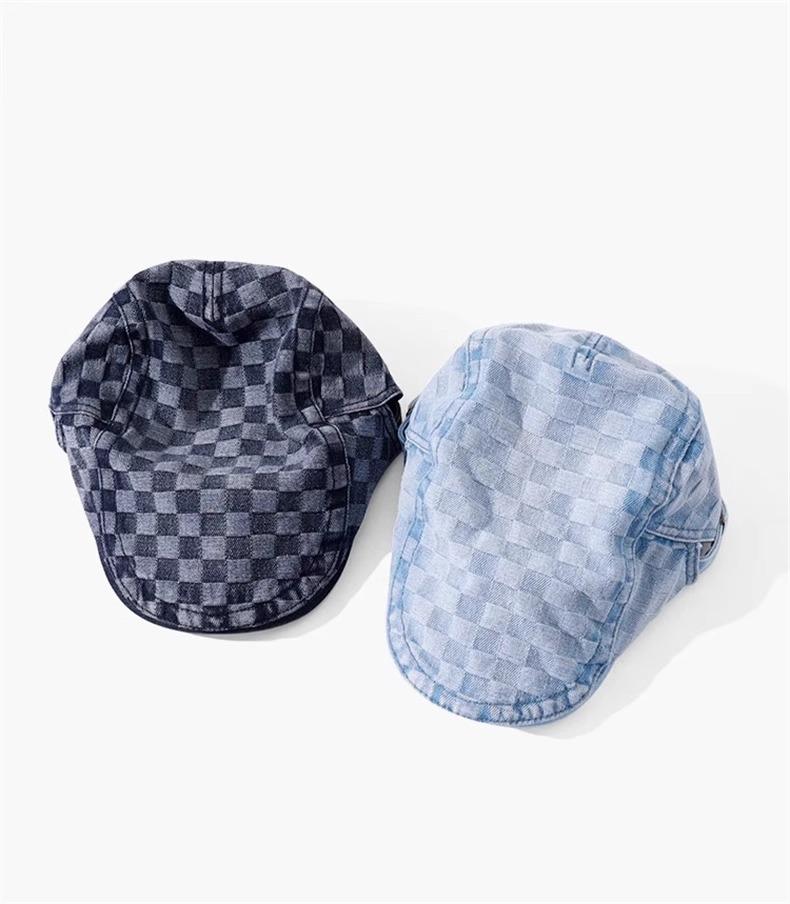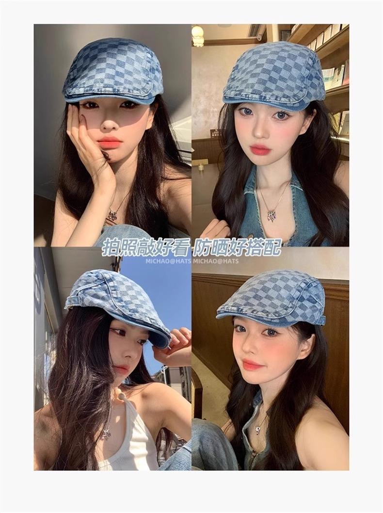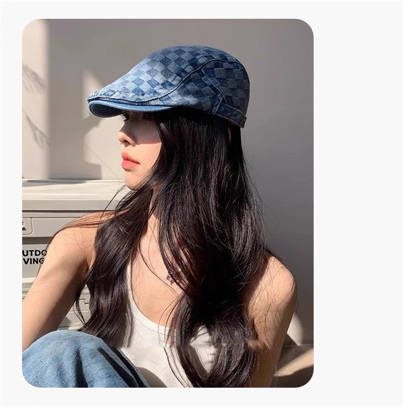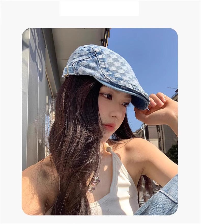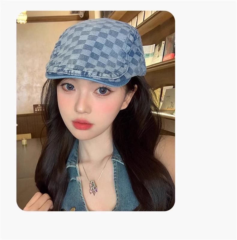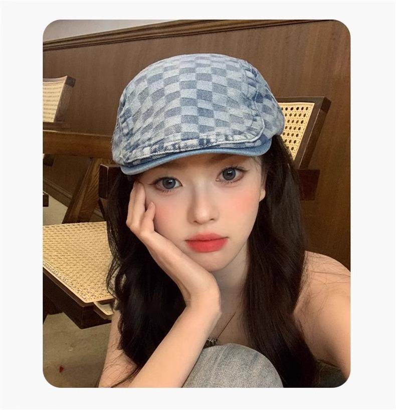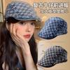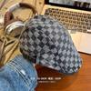 Otoño e Invierno Nuevo Estilo Cuadros Gorra Hacia Adelante Moda Todo Combinable Muestra el Rostro Sombrero Pequeño para Mujer Cabeza Grande Boina Japonesa Gorra de Repartidor
