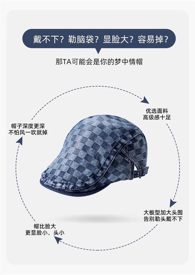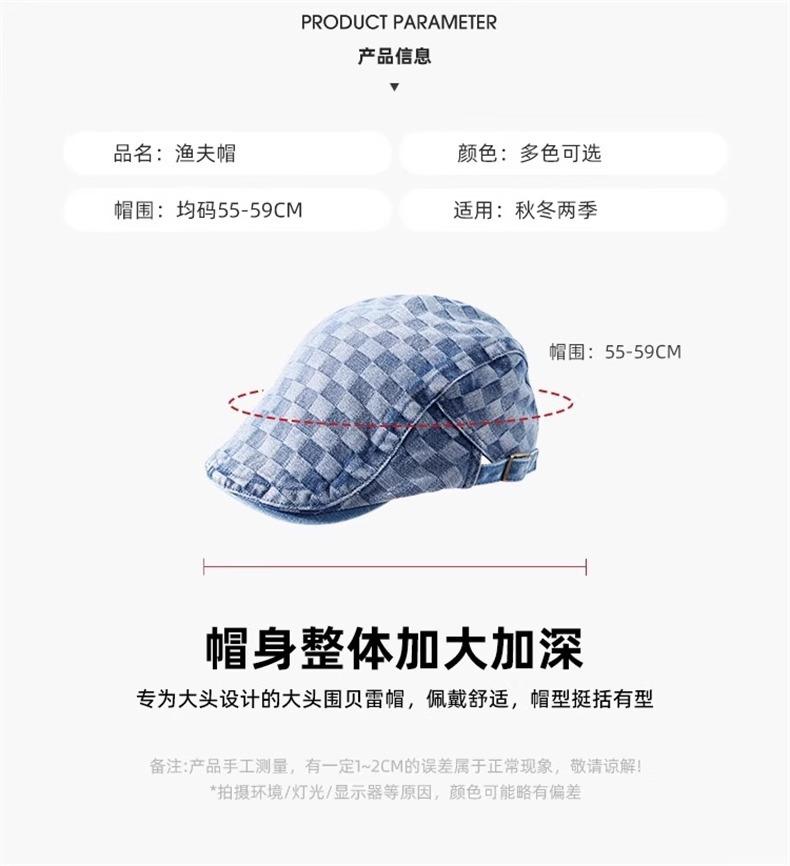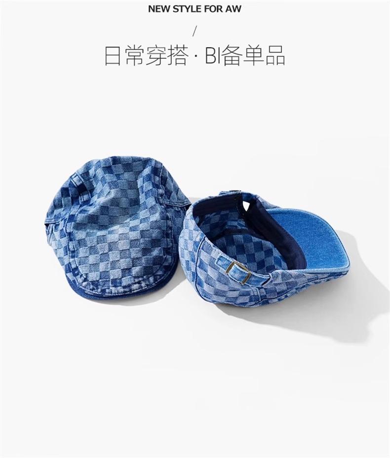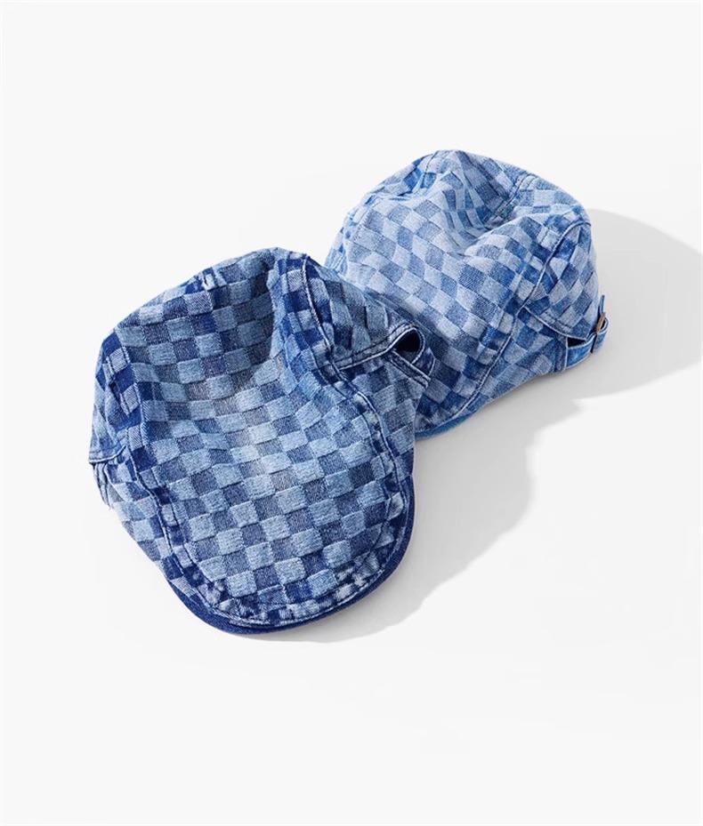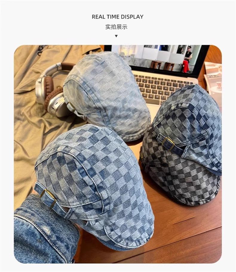Otoño e Invierno Nuevo Estilo Cuadros Gorra Hacia Adelante Moda Todo Combinable Muestra el Rostro Sombrero Pequeño para Mujer Cabeza Grande Boina Japonesa Gorra de Repartidor