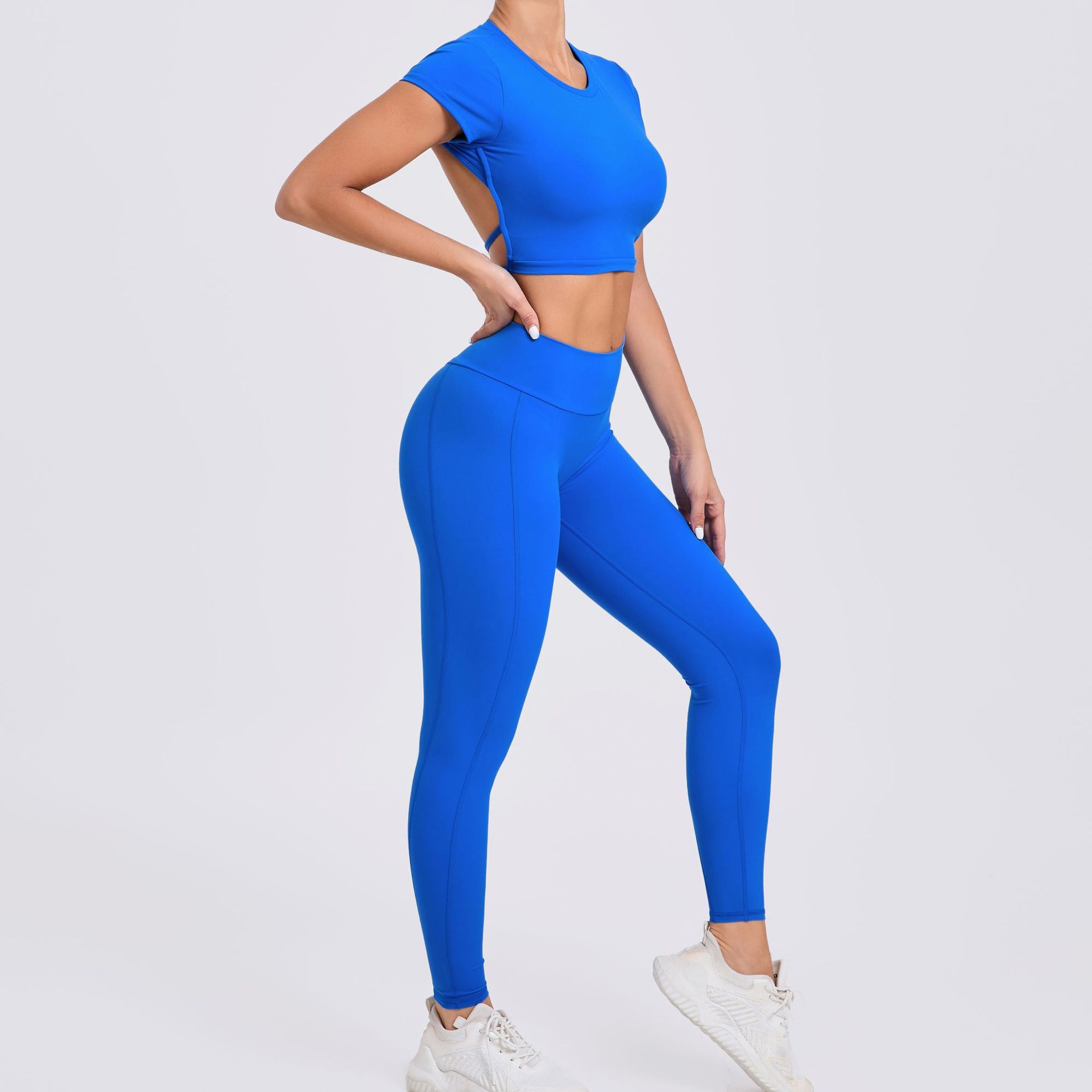 Traje de yoga y pilates con espalda cruzada, de venta caliente transfronteriza, para correr y fitness, en Europa y América.