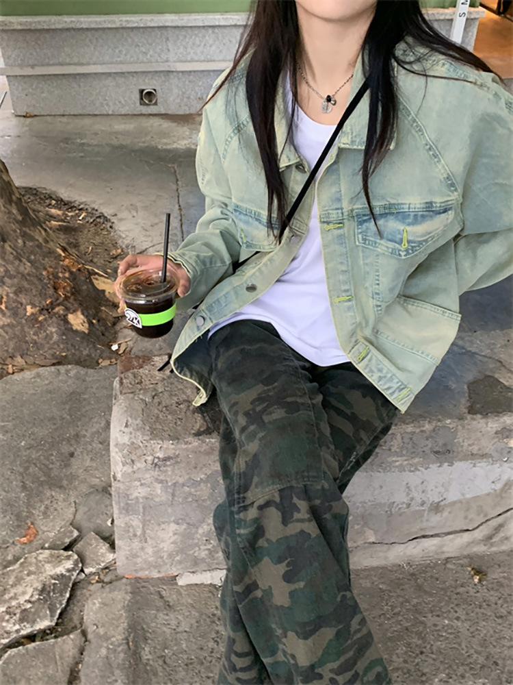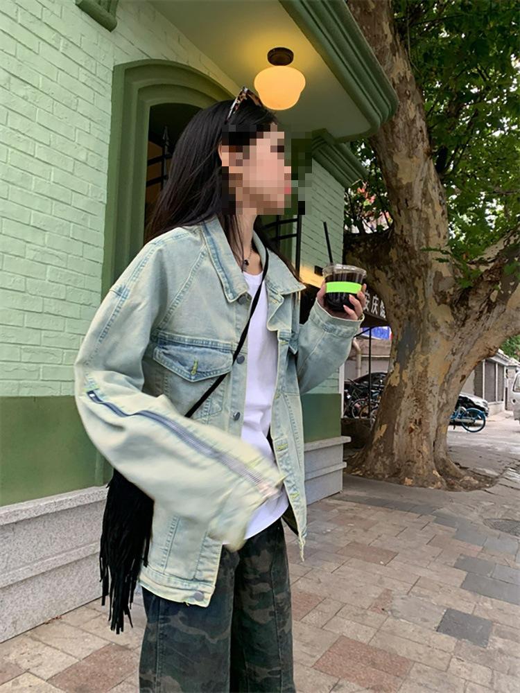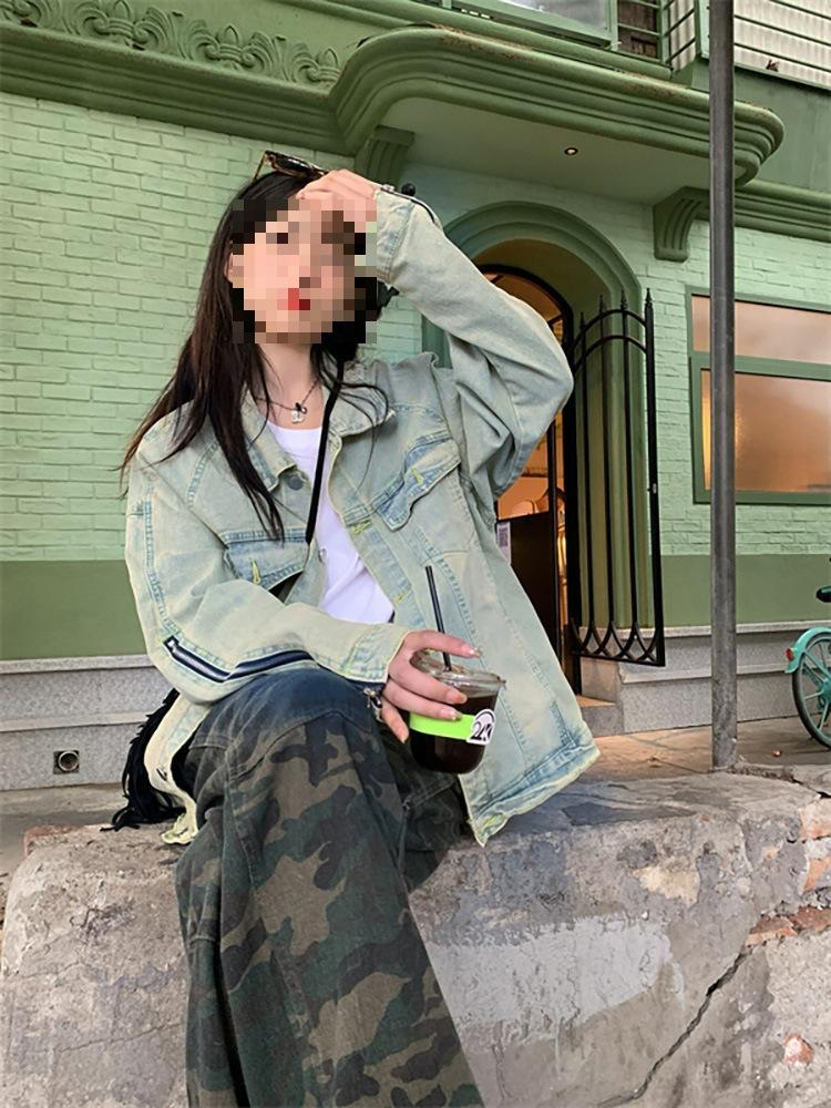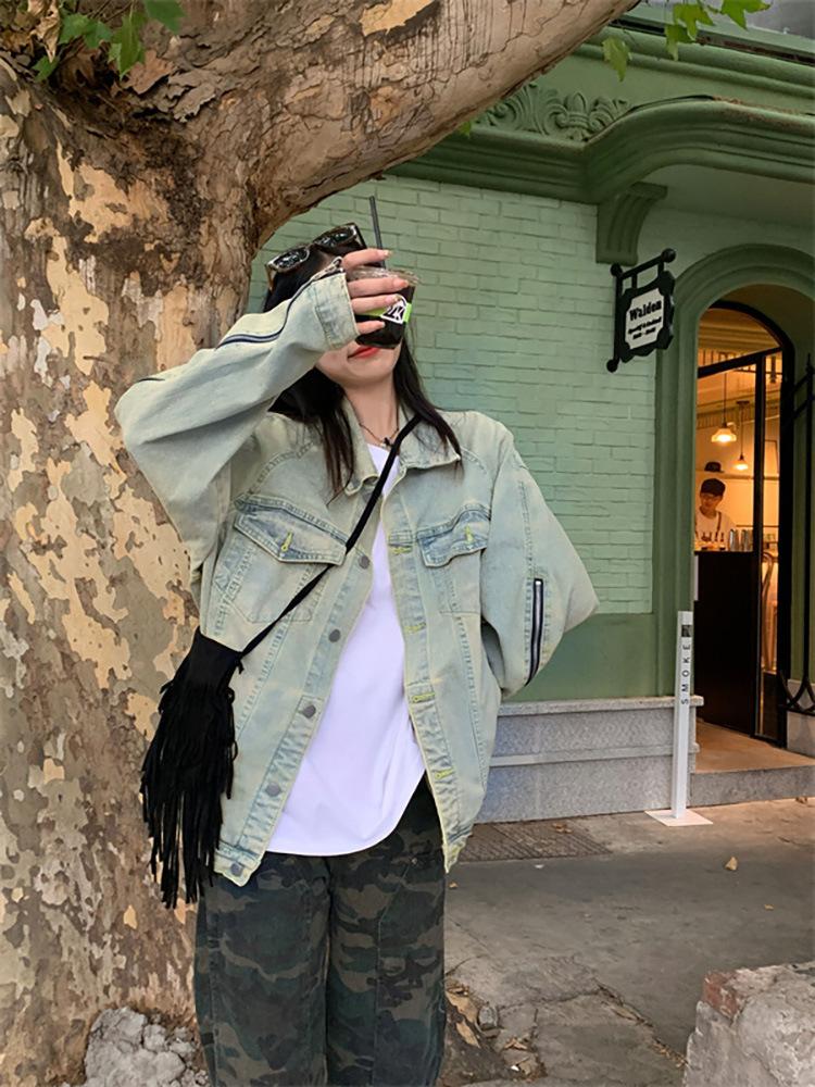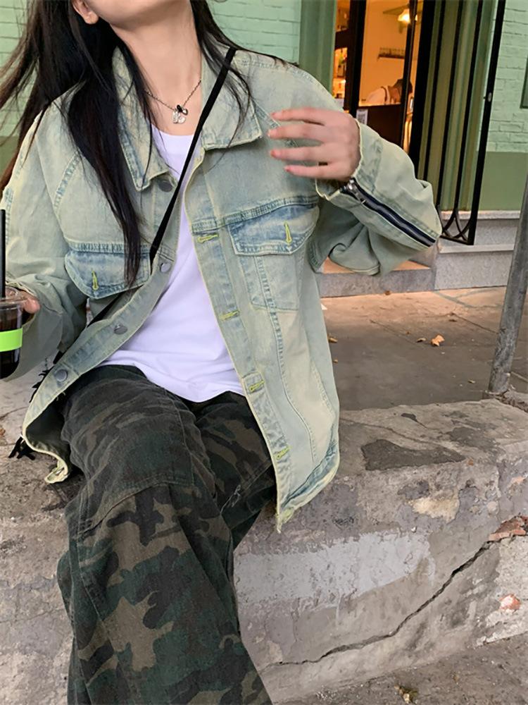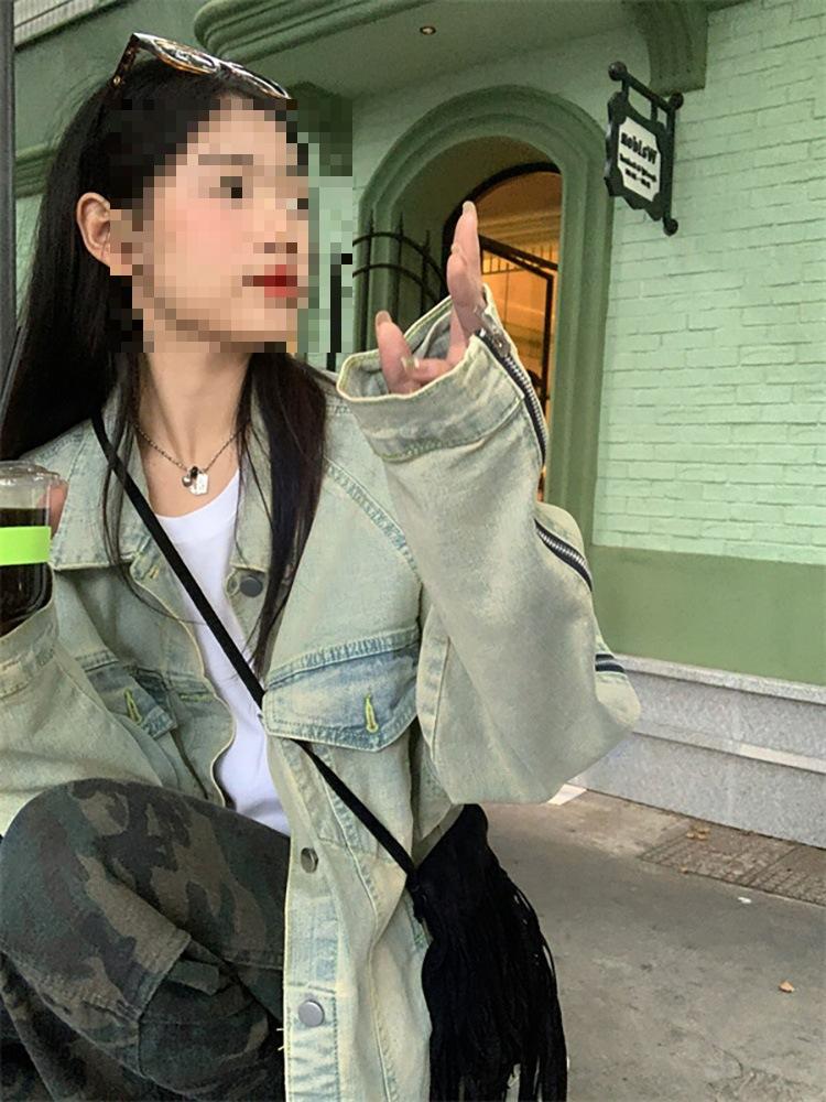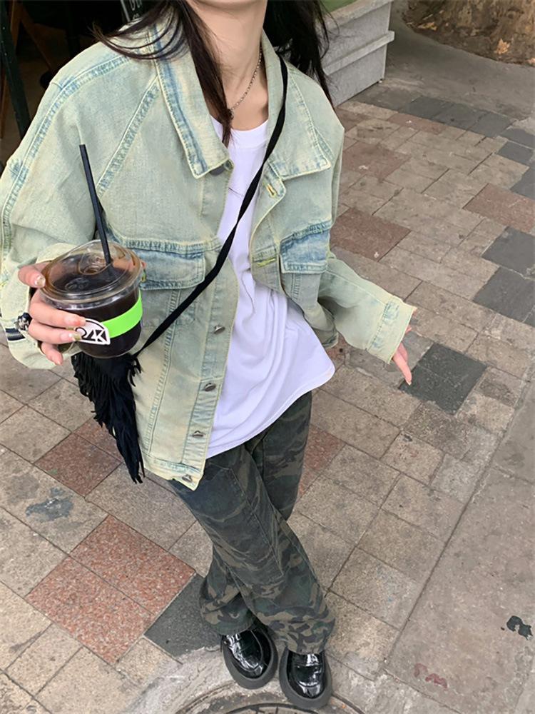 Chamarra de mezclilla amarilla vieja lavada vintage Primavera Nueva Nicho Europeo y Americano High Street Chamarra Holgada para Mujer