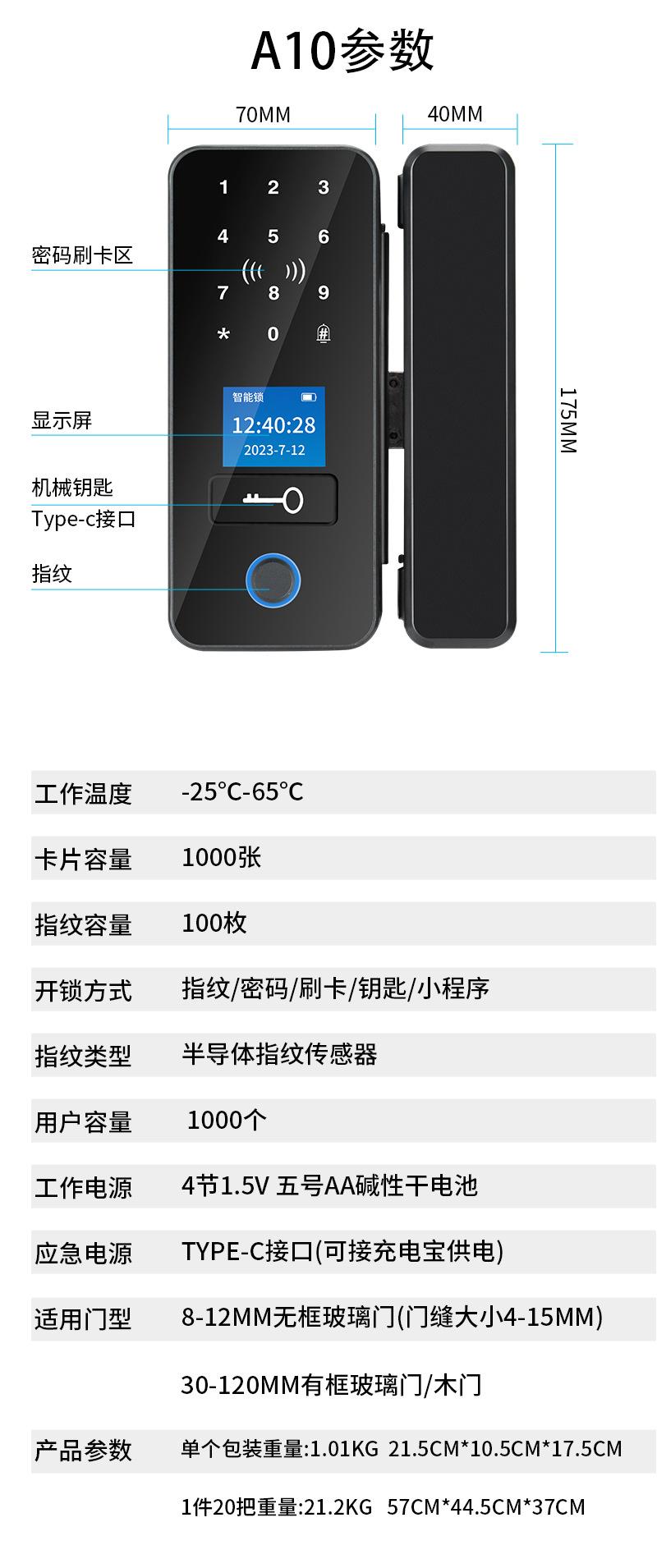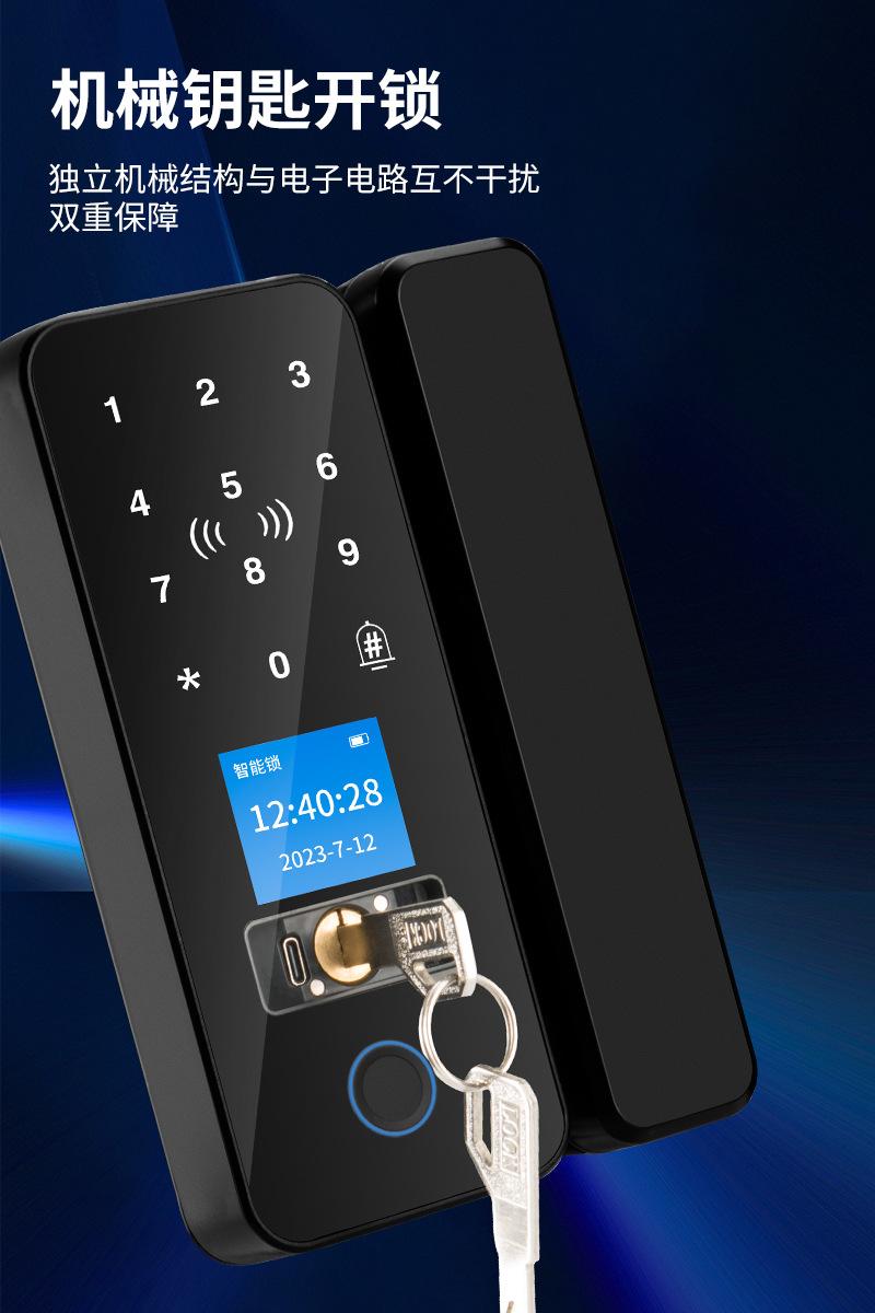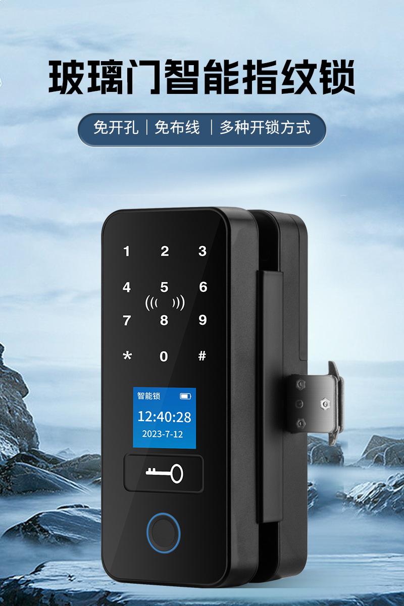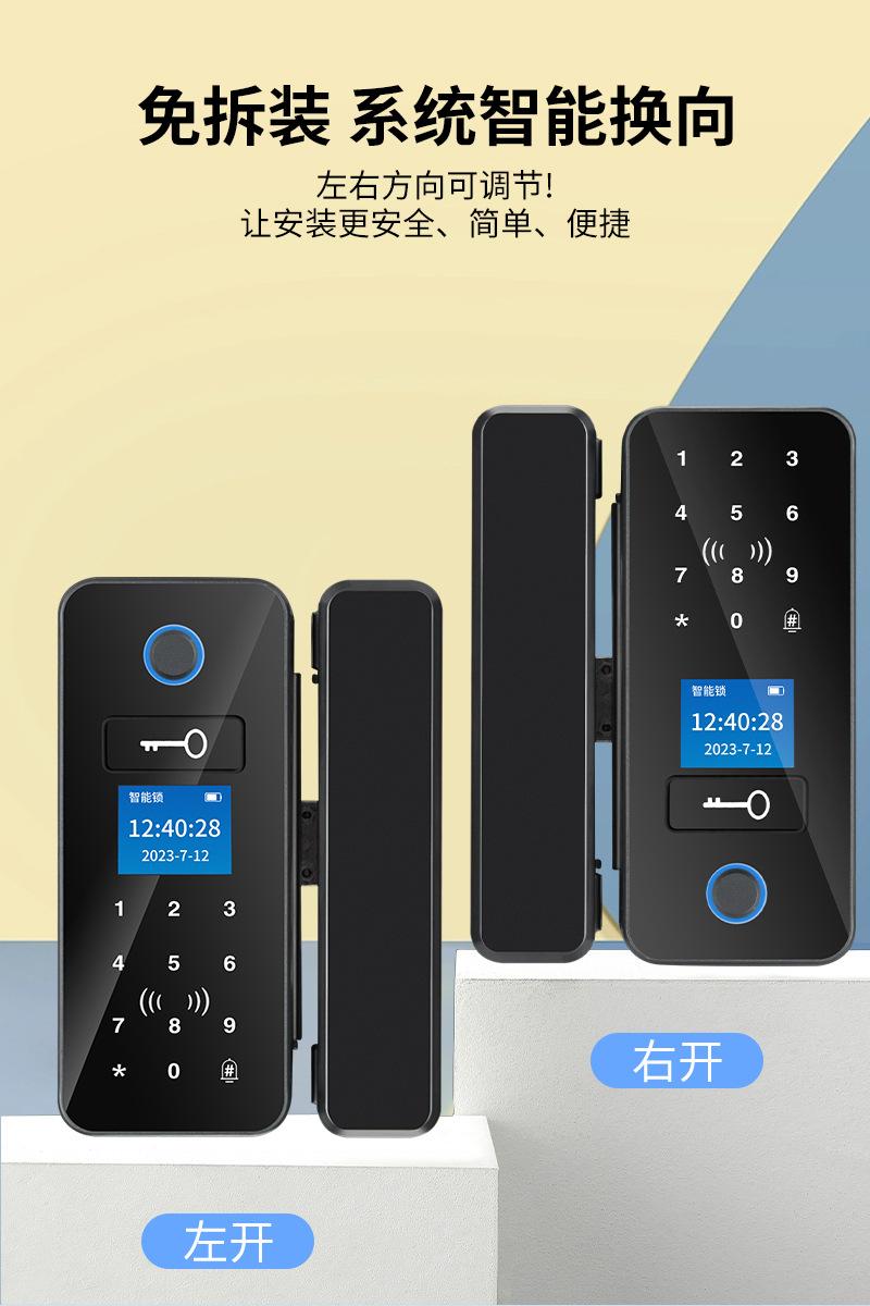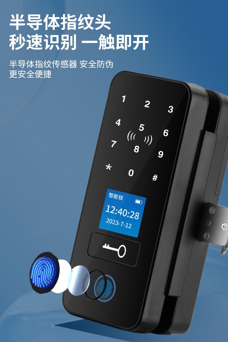 Cerradura de puerta de vidrio con Bluetooth, cerradura de huella dactilar, puerta doble, puerta individual, sin marco, sin agujeros, para oficina, con contraseña, venta al por mayor transfronteriza