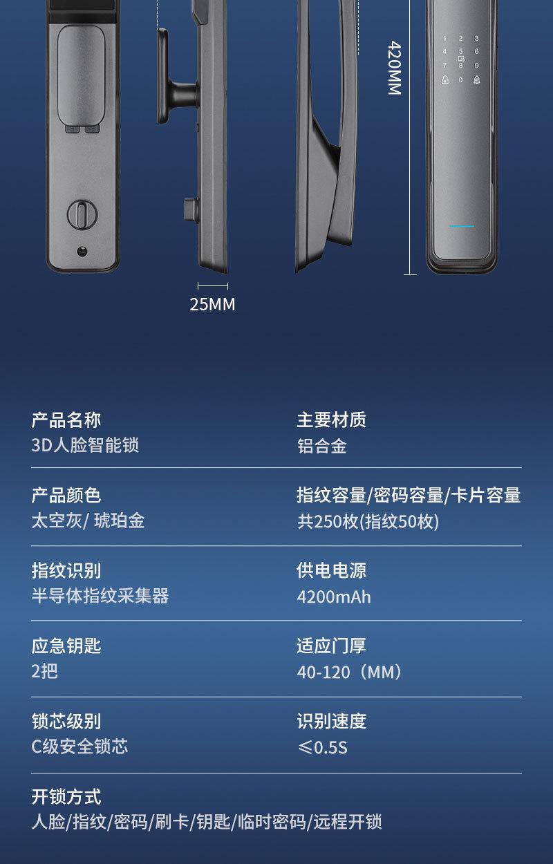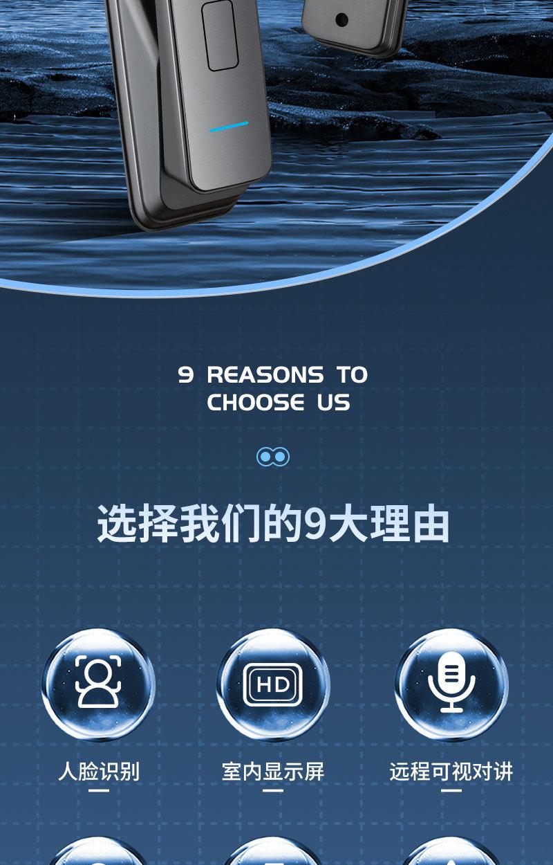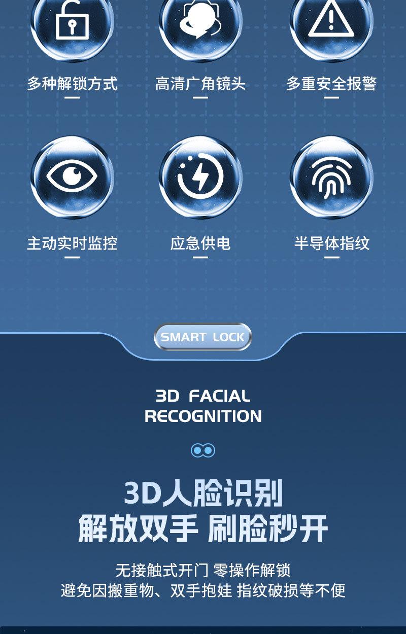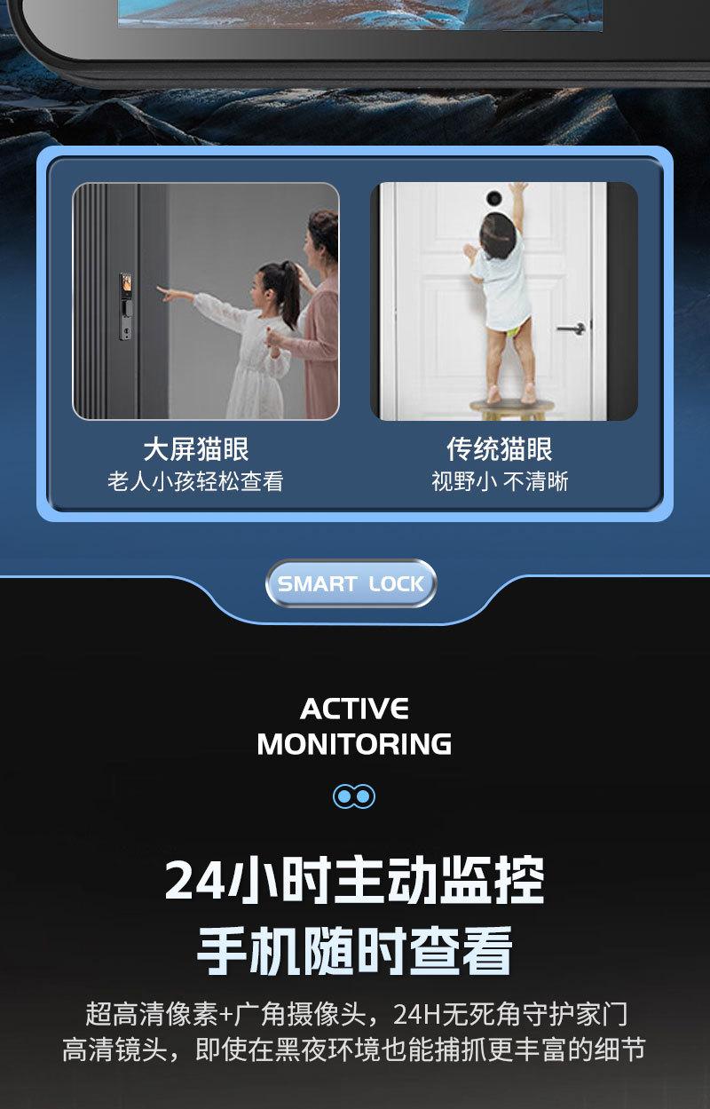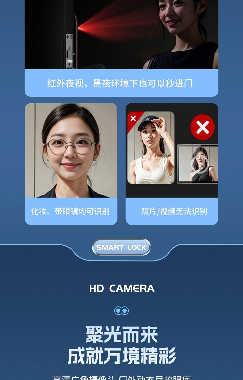 Fingerprint, Water proof, Password, With key, Visible cat eye, Face recognition, No need to open holes, Remote unlocking
