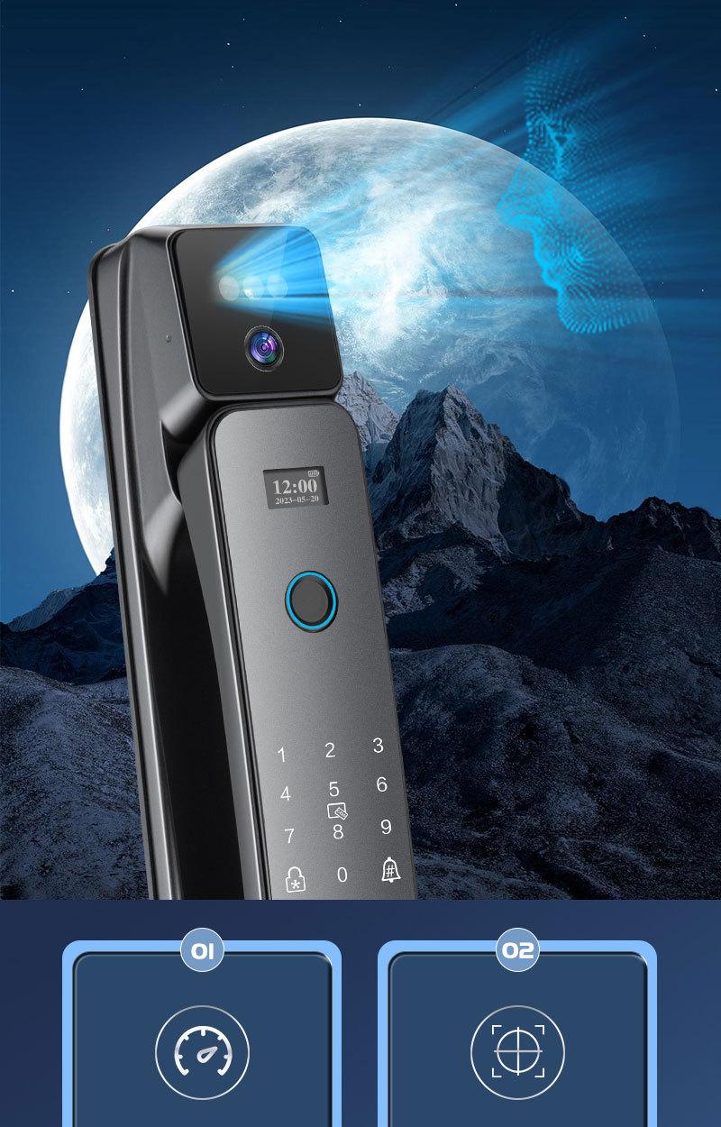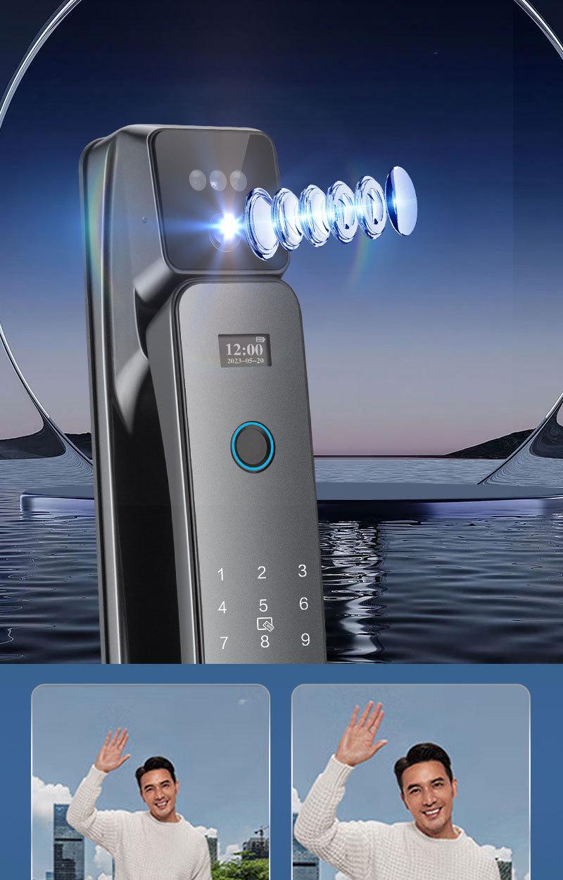 Cerradura de huella dactilar con reconocimiento facial 3D, cerradura inteligente de seguridad para el hogar, cerradura con contraseña, videovigilancia en tiempo real, cerradura inteligente de fábrica