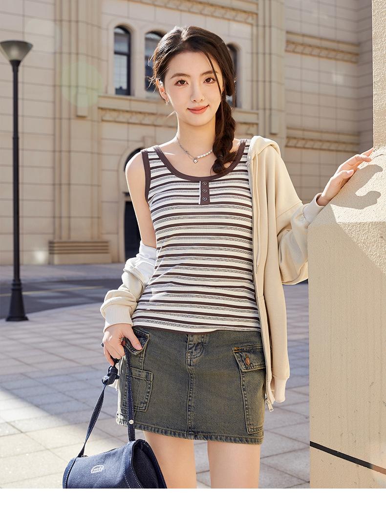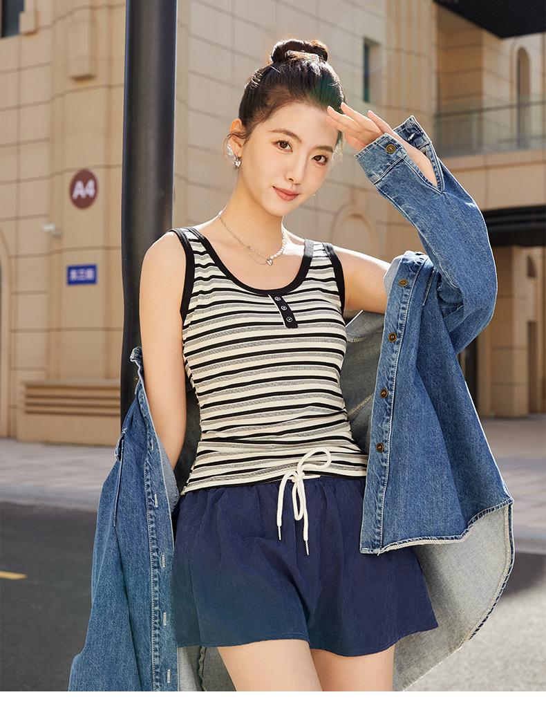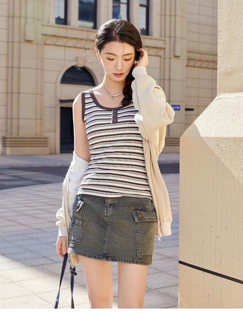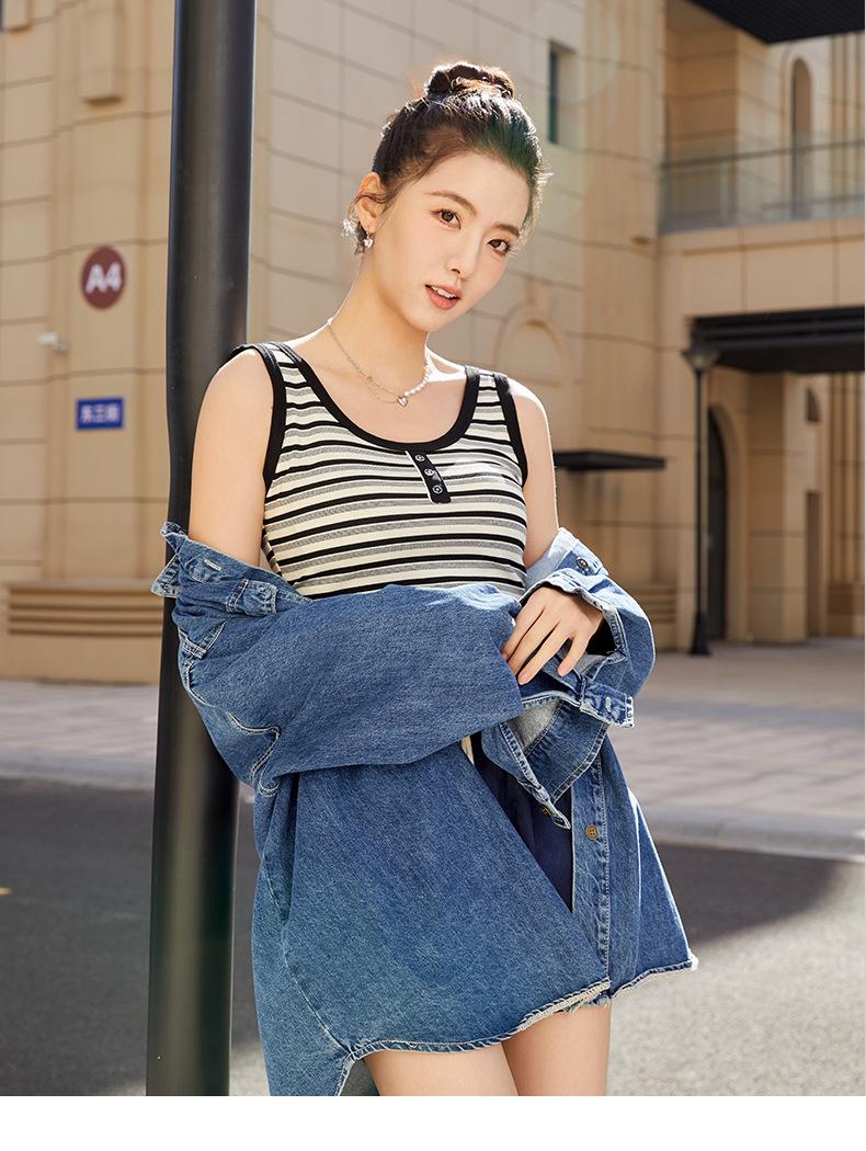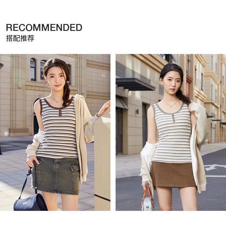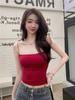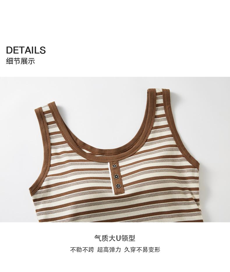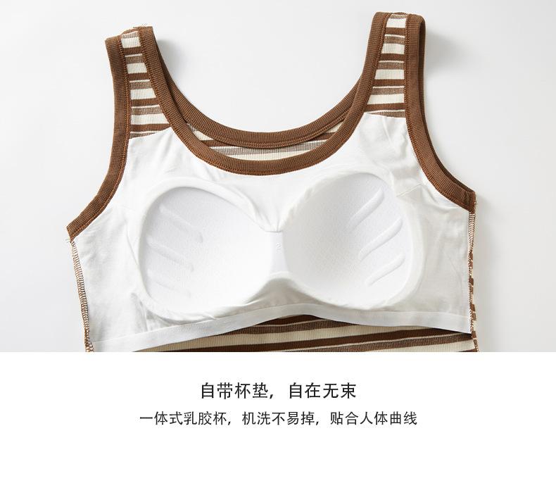 Camisola de Rayas Francesa Ropa Exterior para Mujer con Almohadilla en el Pecho Ajustada Ajustada Base Interior Chic Dulce Picante Top sin Mangas