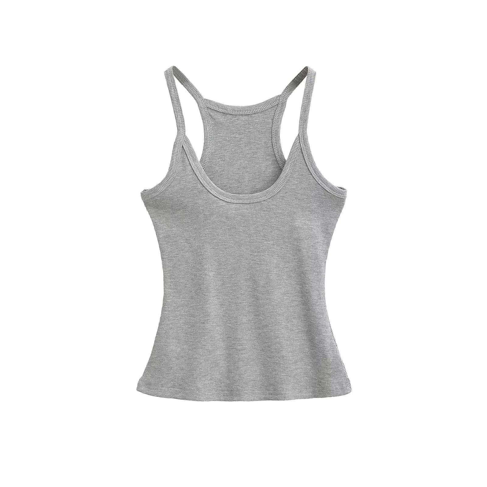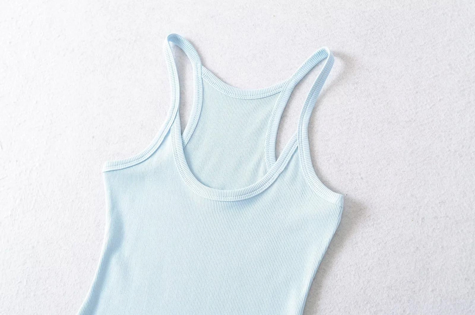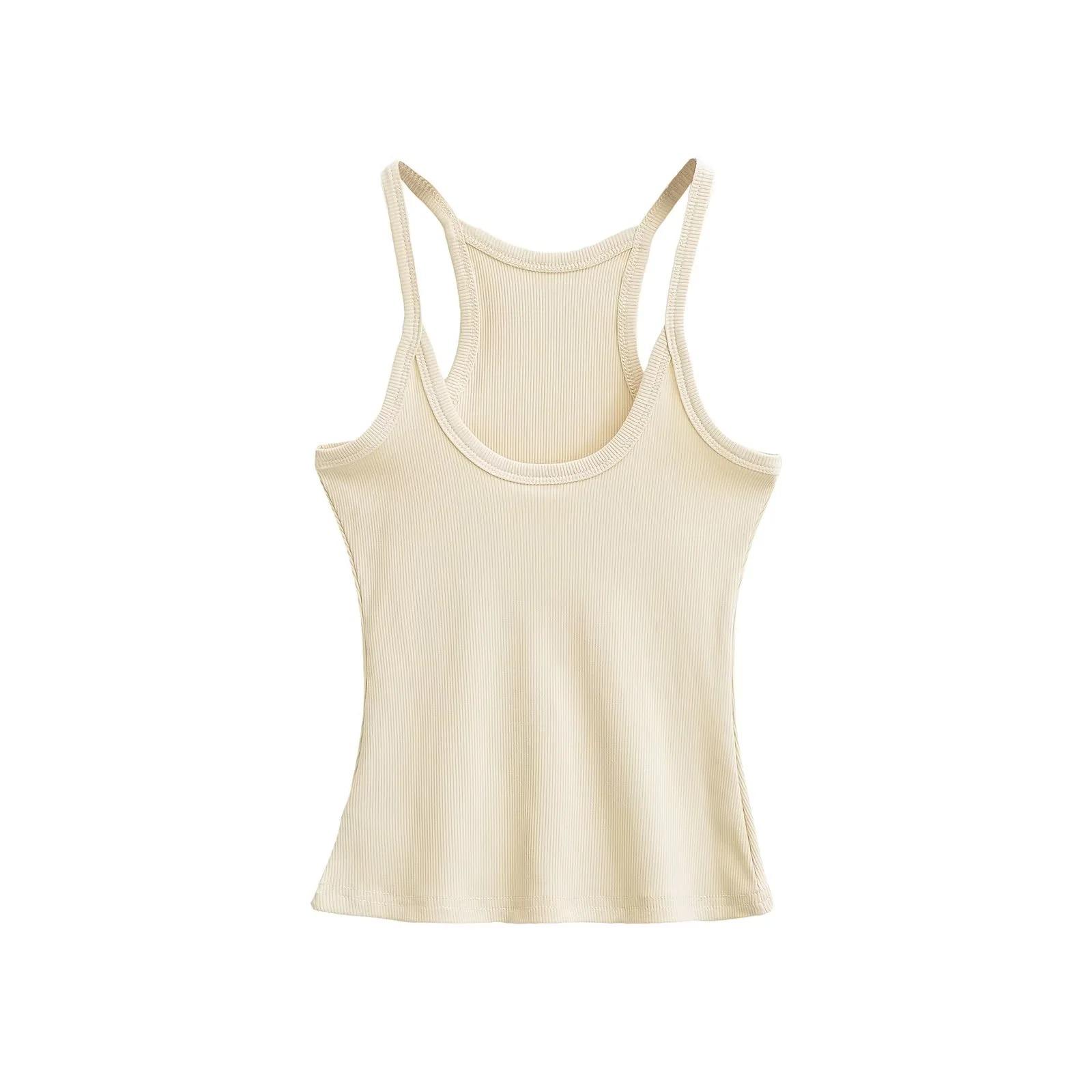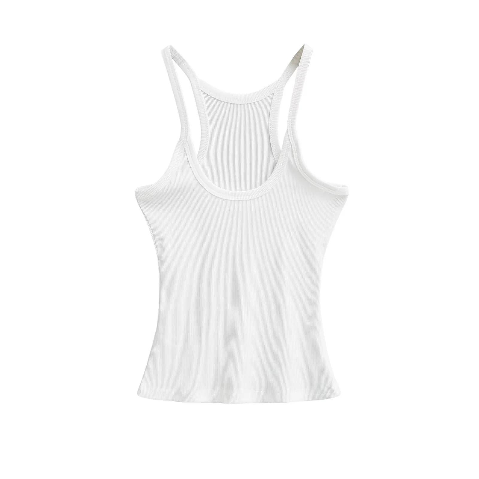 Camisola sexy con cuello en U y forma de I para mujer, de verano, ajustada, corta, sin mangas